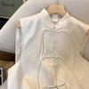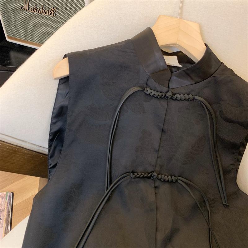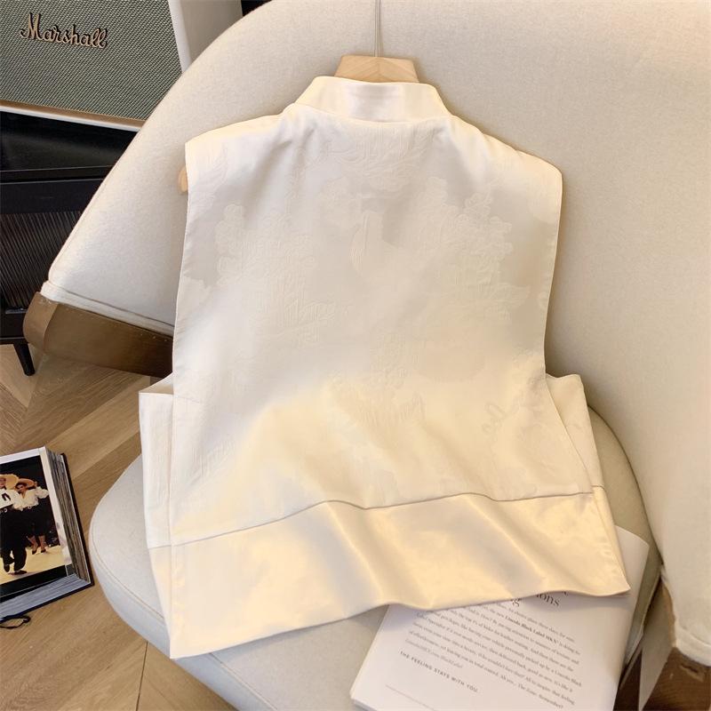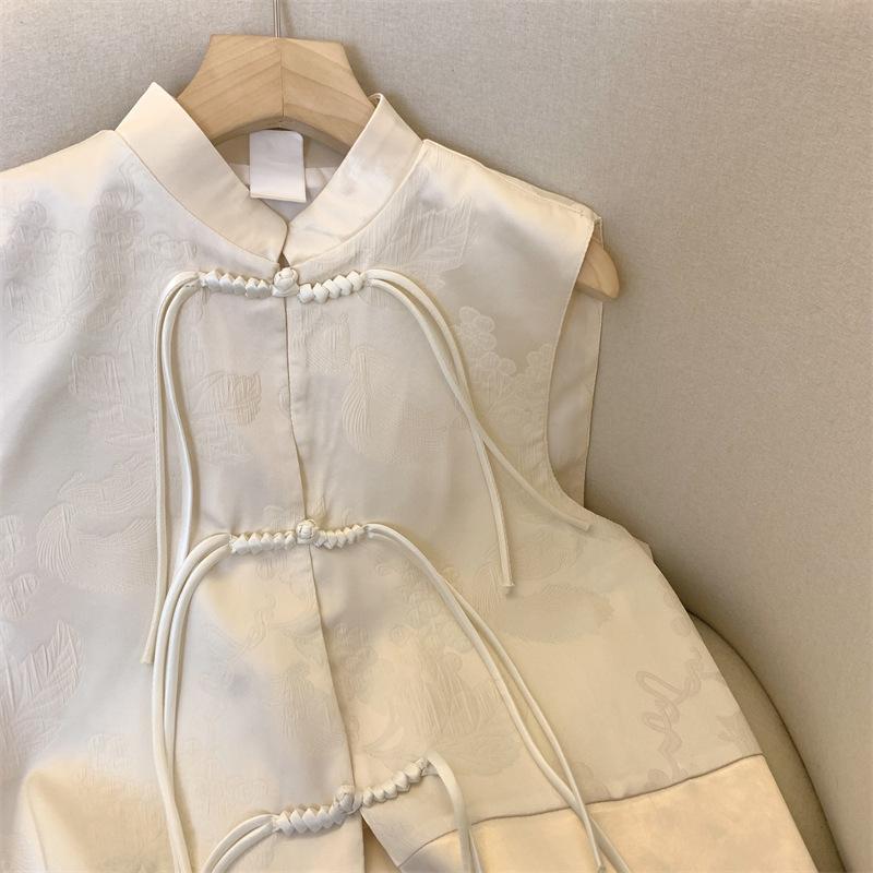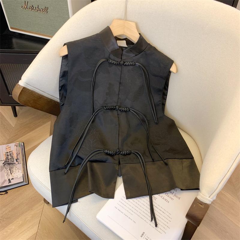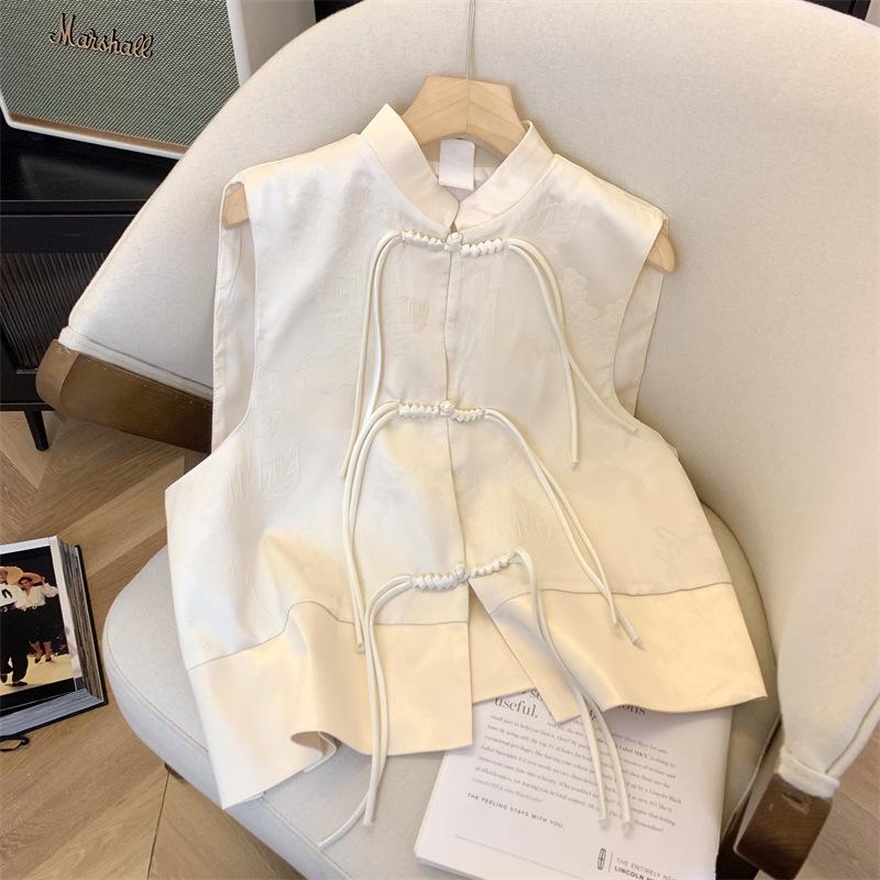 Foto real~Cuello alto, chaleco abotonado con cuello abierto, estilo chino, slim, talla grande, diseño nicho, chaleco, prenda exterior de tendencia nacional