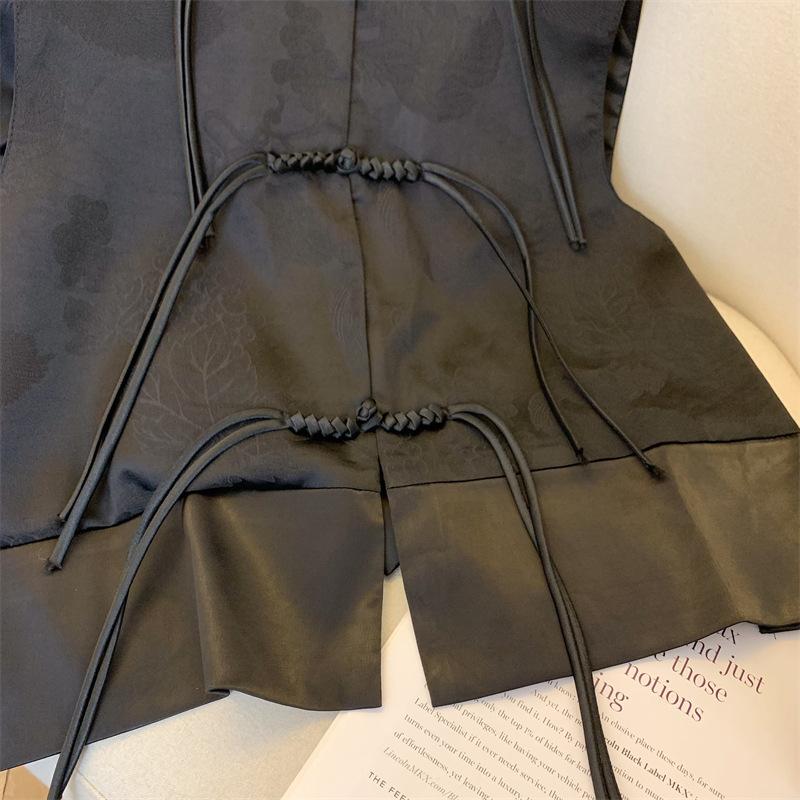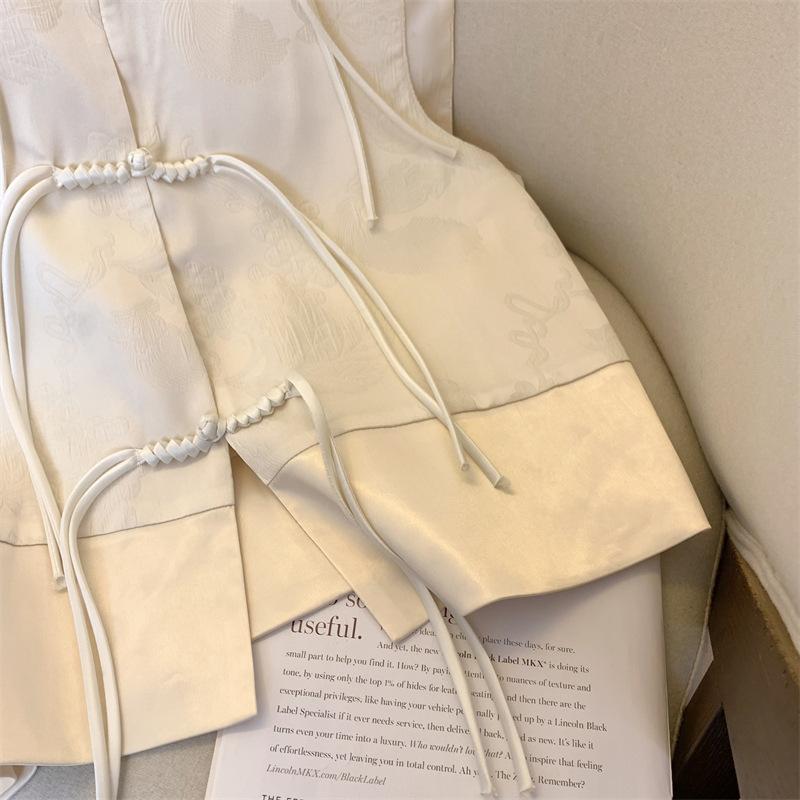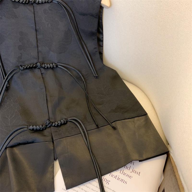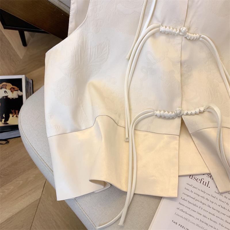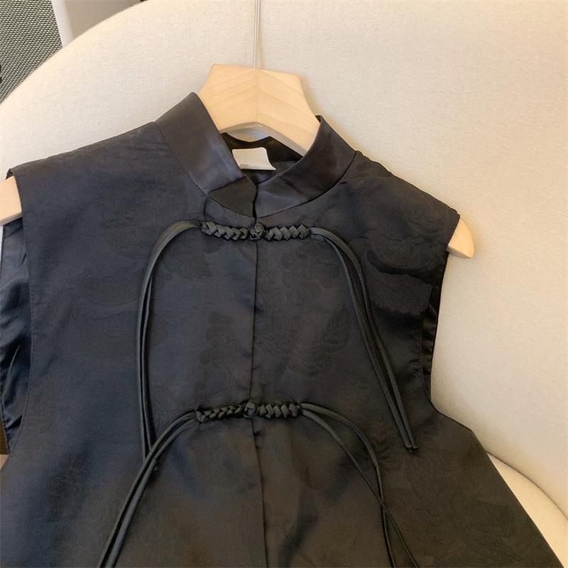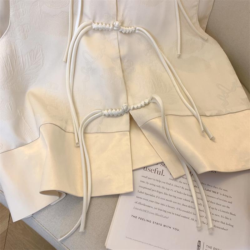 Foto real~Cuello alto, chaleco abotonado con cuello abierto, estilo chino, slim, talla grande, diseño nicho, chaleco, prenda exterior de tendencia nacional