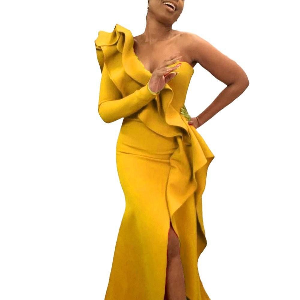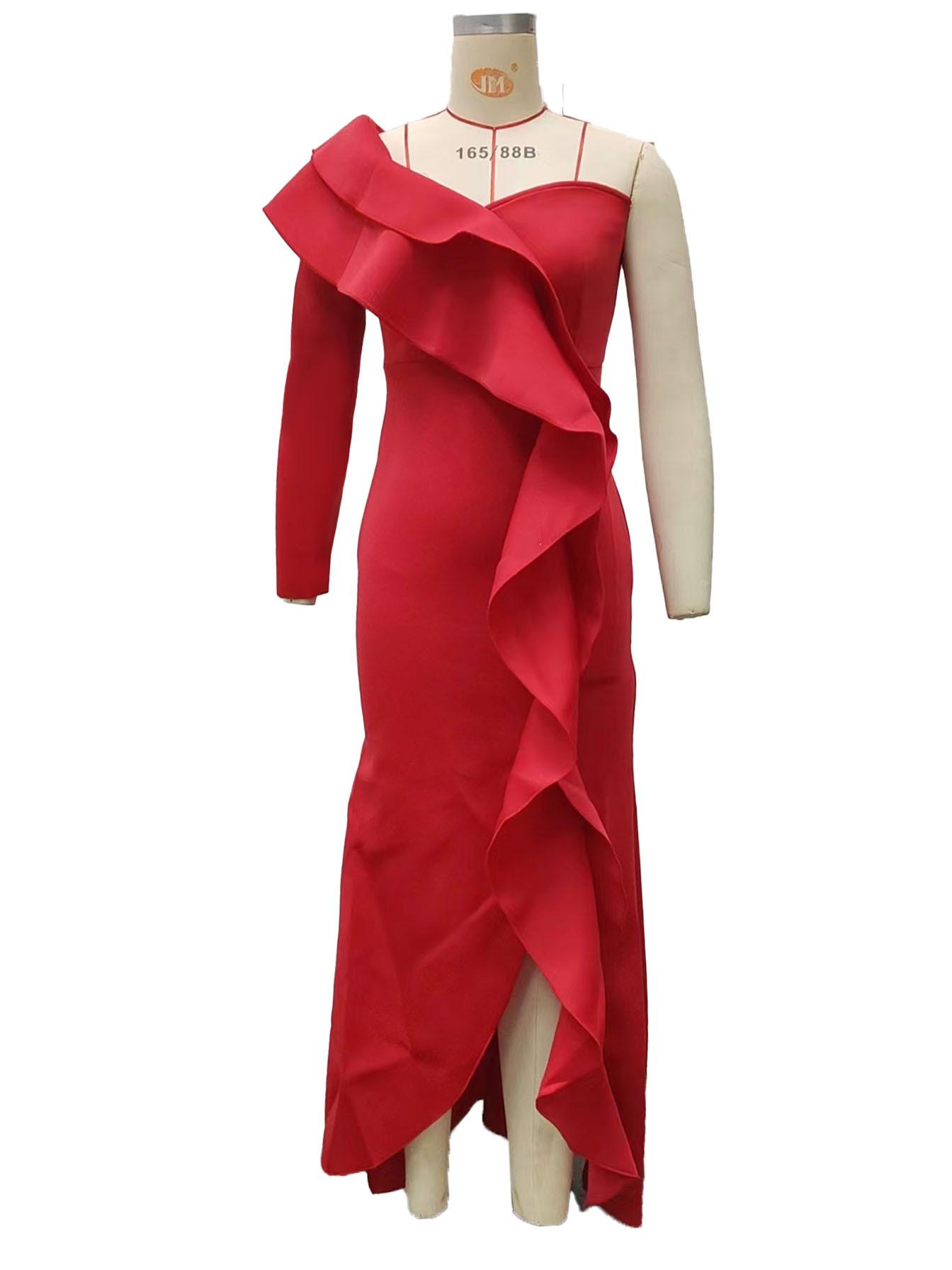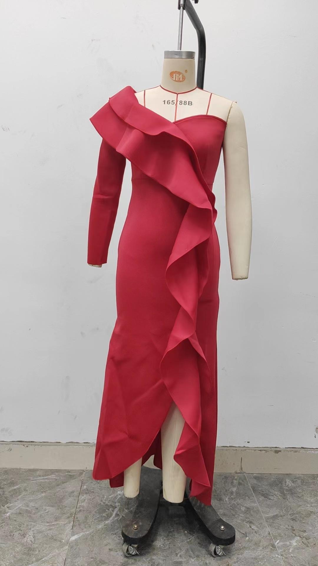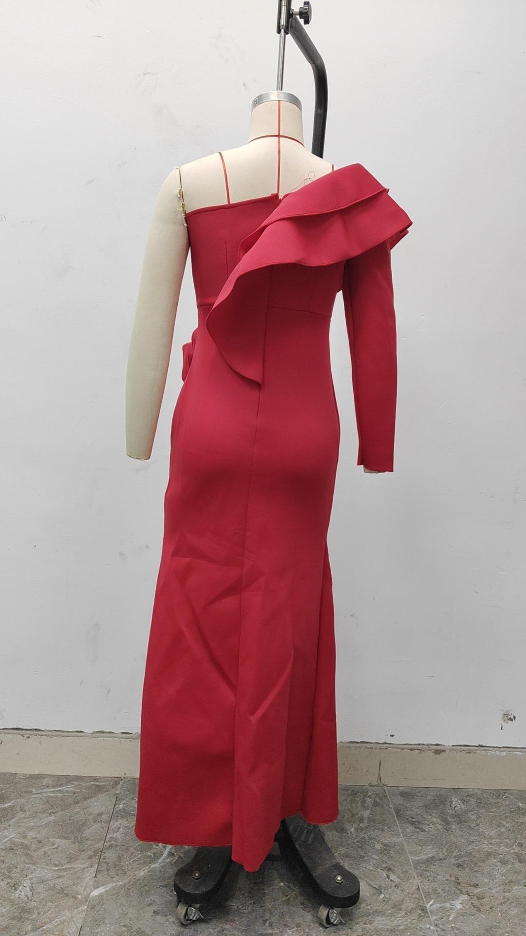 2025 Primavera y Verano Nuevo Ropa Europea y Americana Sexy Vestido de un Hombro Vestido Ajustado Sexy Asimétrico Falda Larga