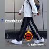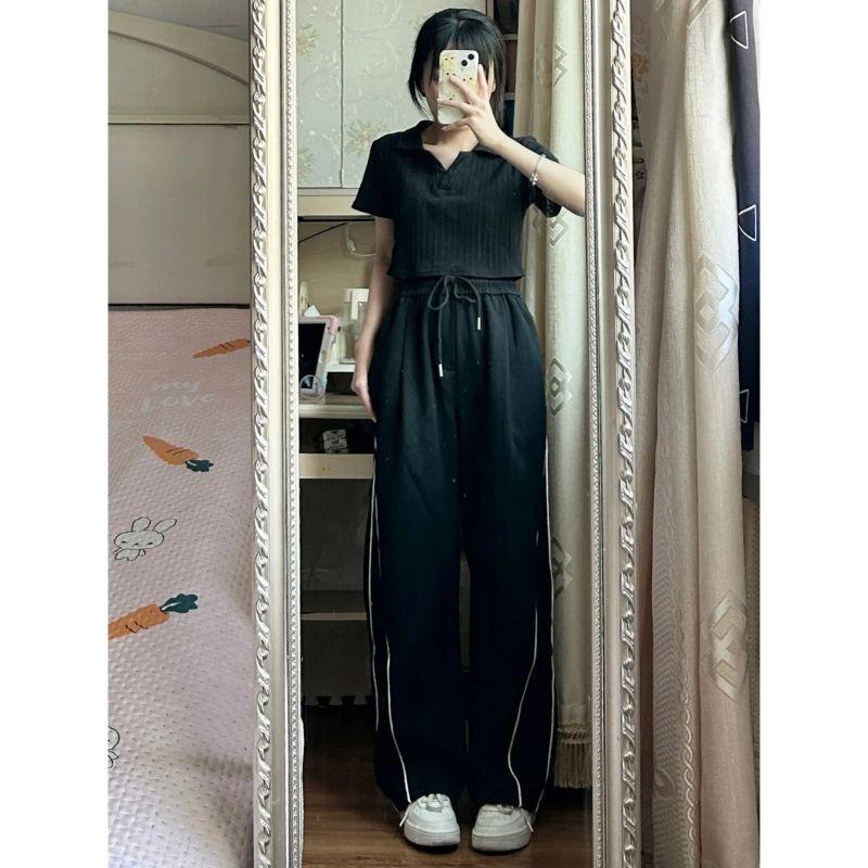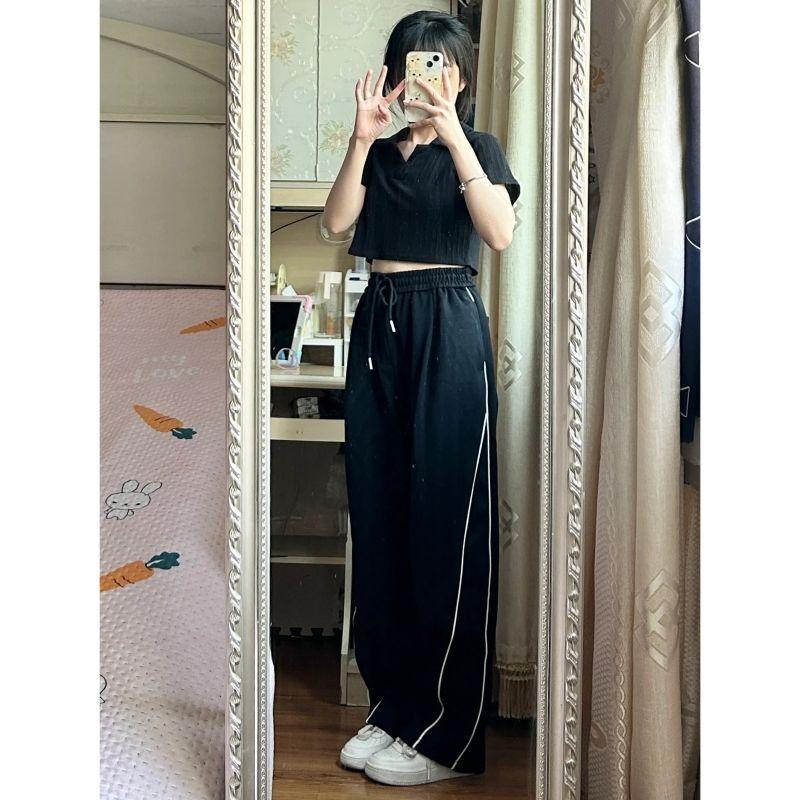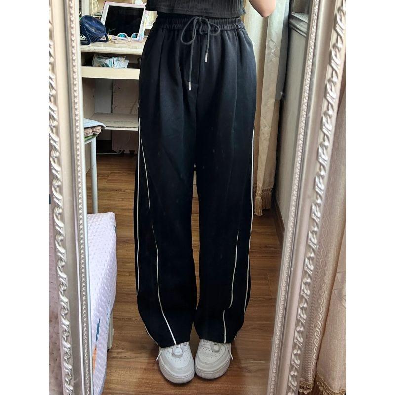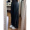 Pantalones casuales de calle alta americana para mujer otoño e invierno sueltos adelgazantes pantalones de trapeador nicho con costuras a rayas pantalones rectos de pierna ancha