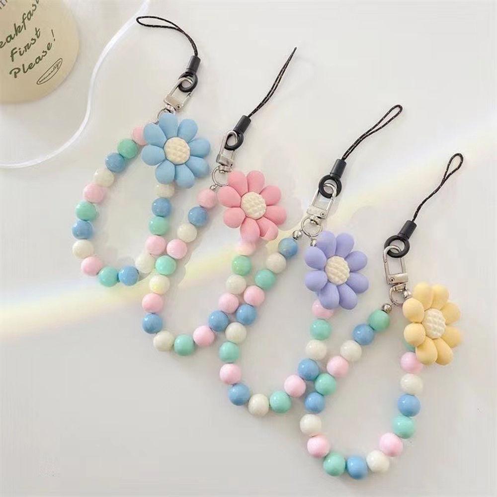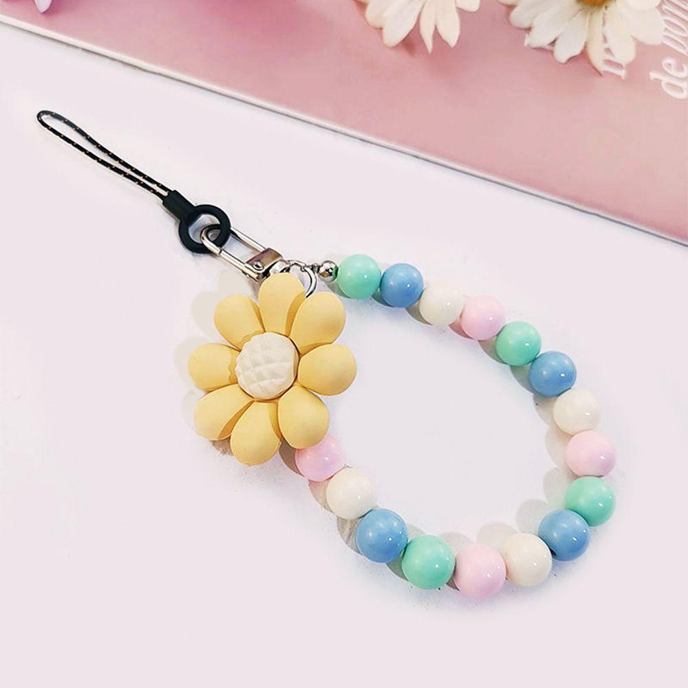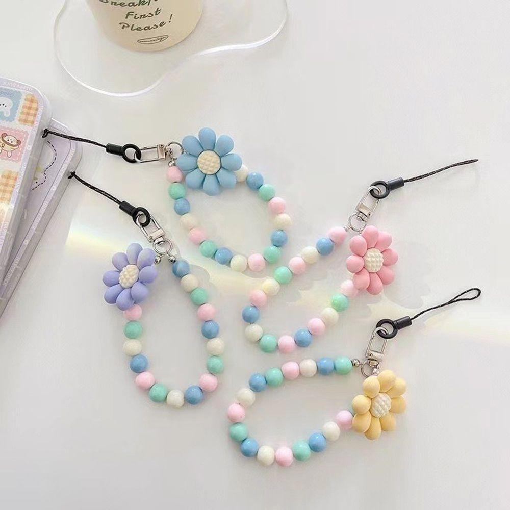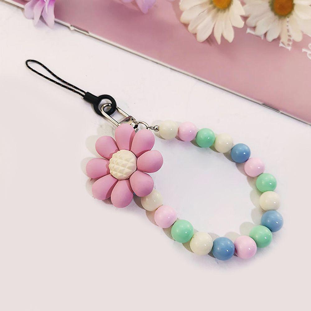 Pulsera de flor de dopamina, cordón corto para teléfono móvil, cadena de muñeca creativa, colgante de cadena de cuentas hecho a mano, para teléfono.