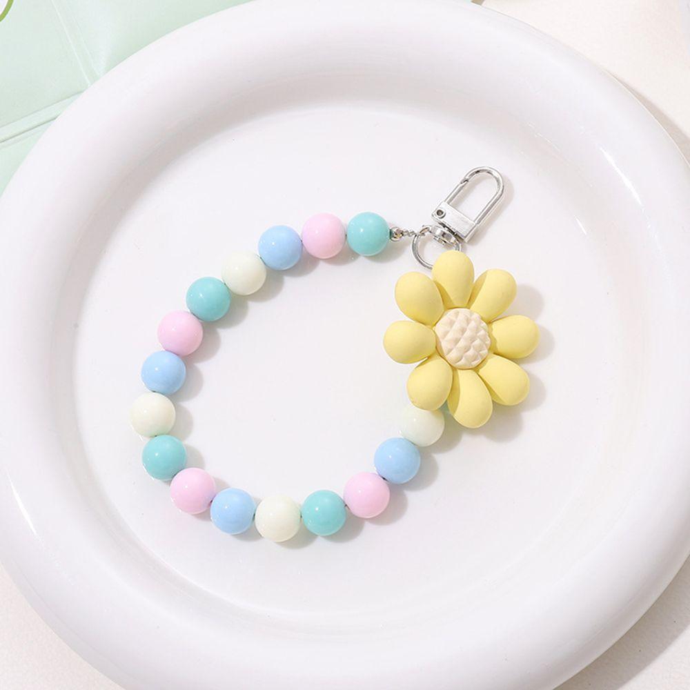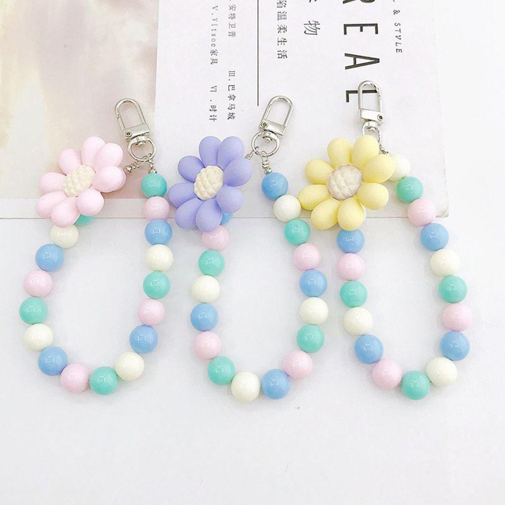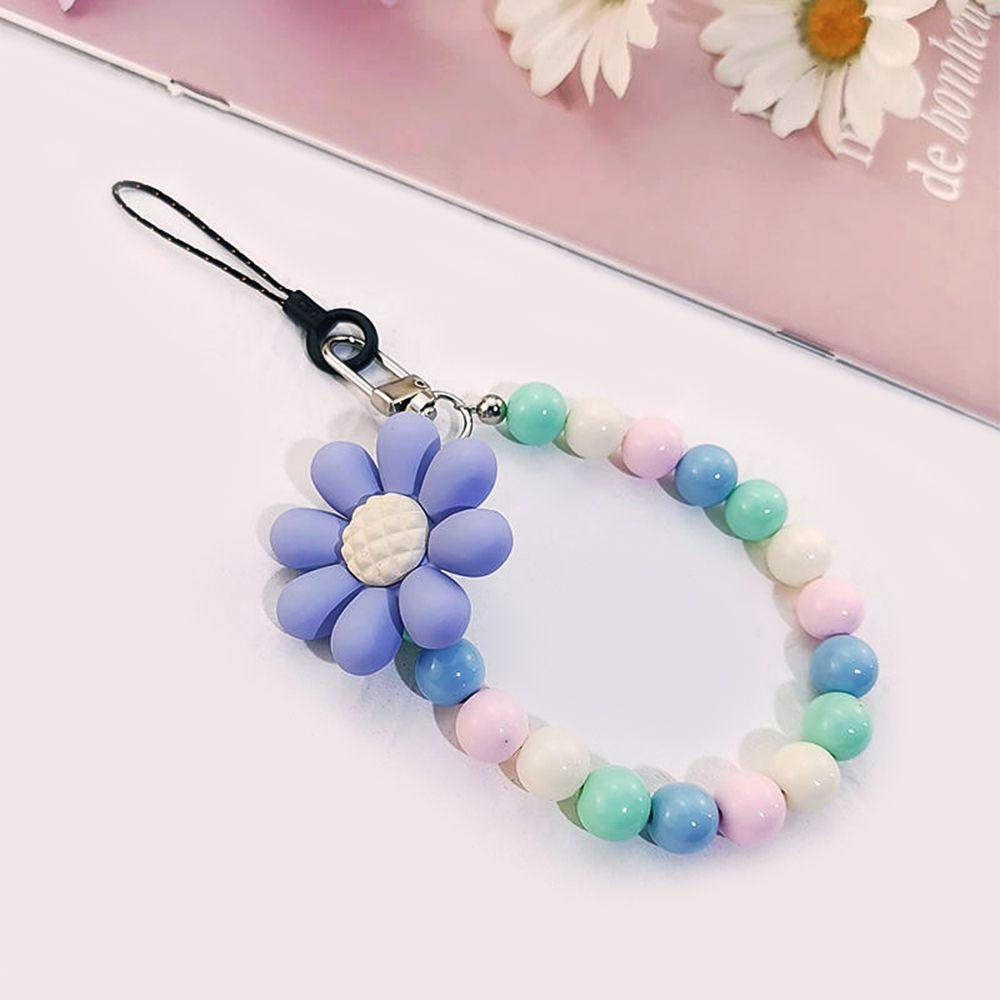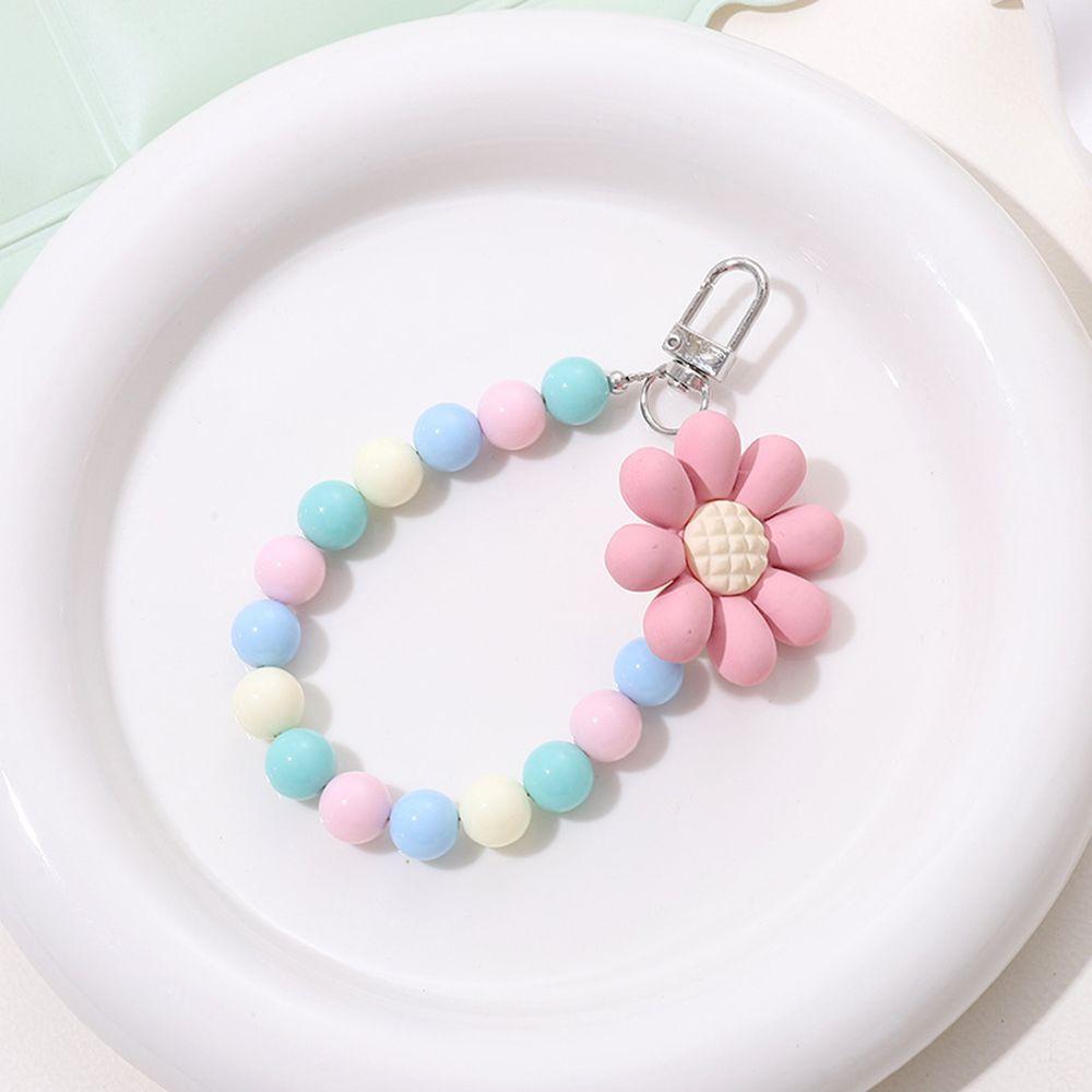 Pulsera de flor de dopamina, cordón corto para teléfono móvil, cadena de muñeca creativa, colgante de cadena de cuentas hecho a mano, para teléfono.