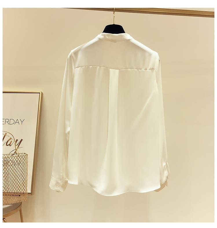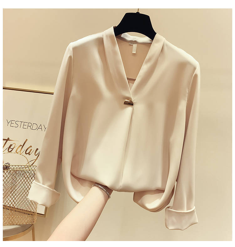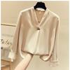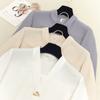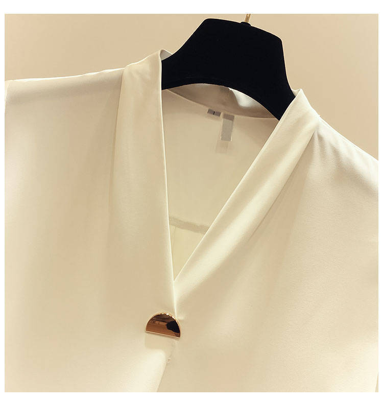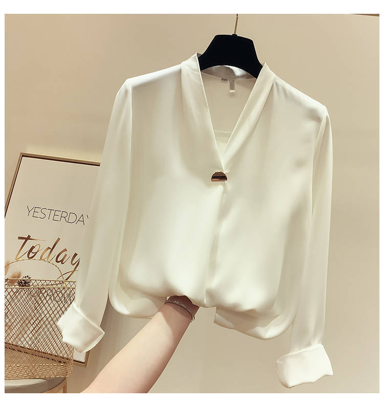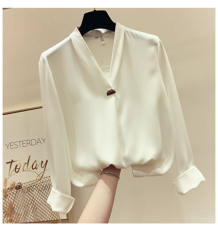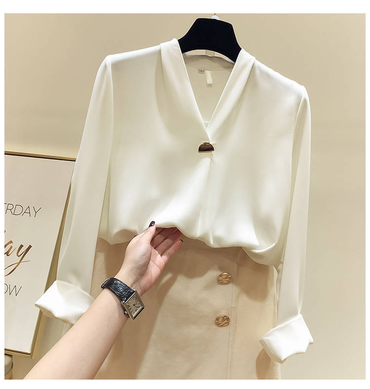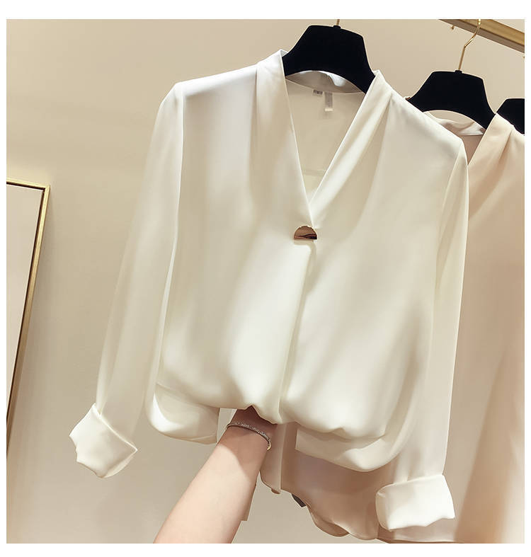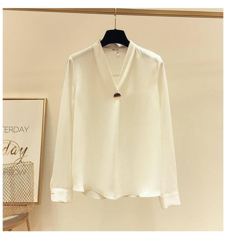 Camisa Blanca Nueva Elegante Slim Cuello en V Manga Larga Holgada Color Puro Primavera y Otoño 2025 Top Super Hada para Mujer