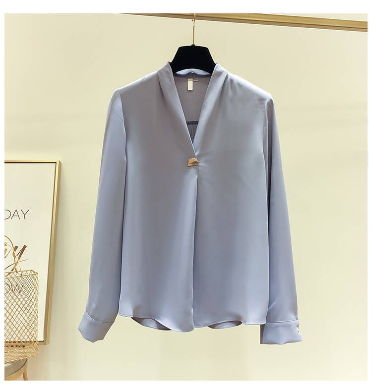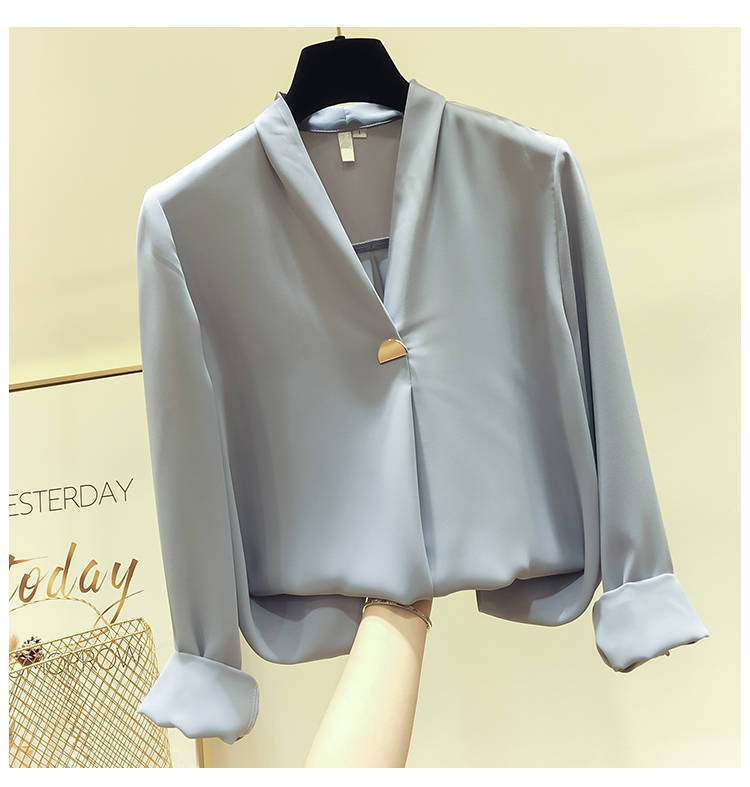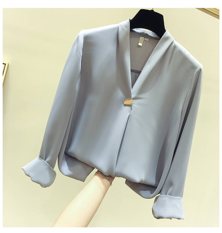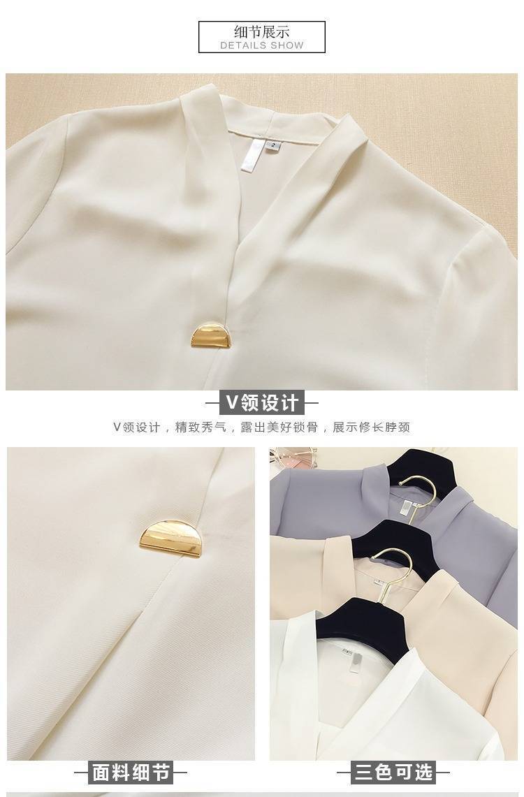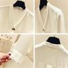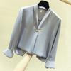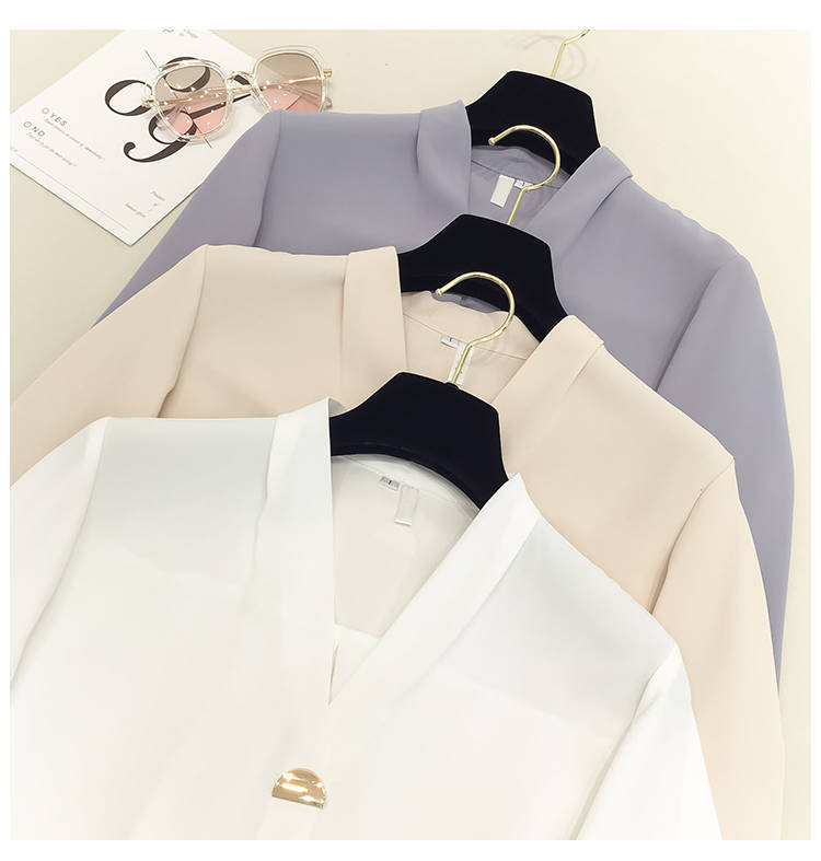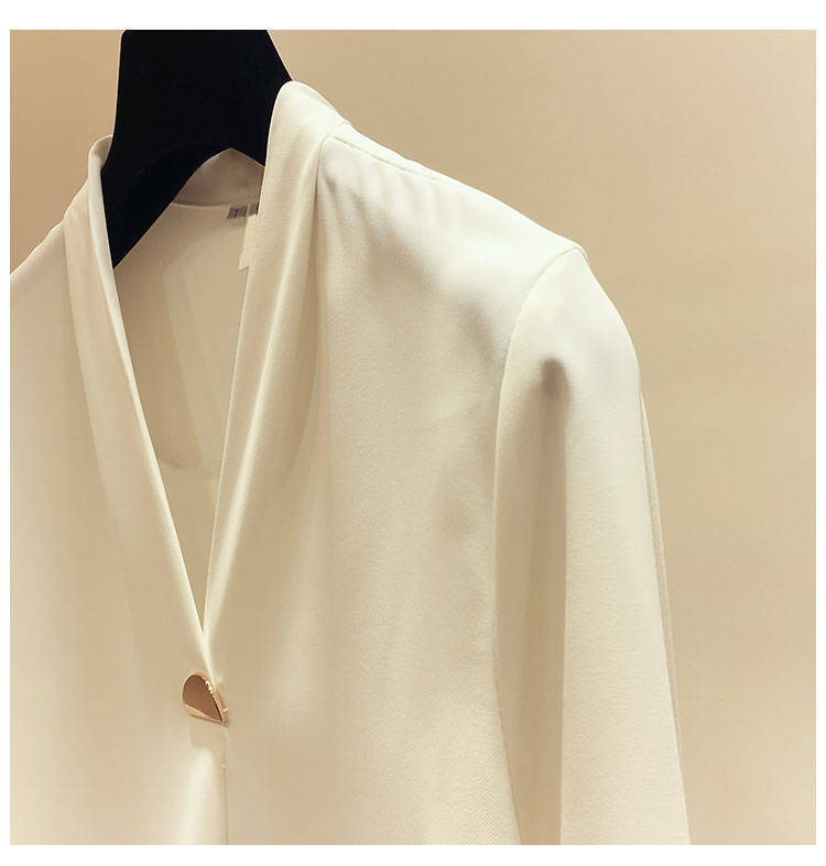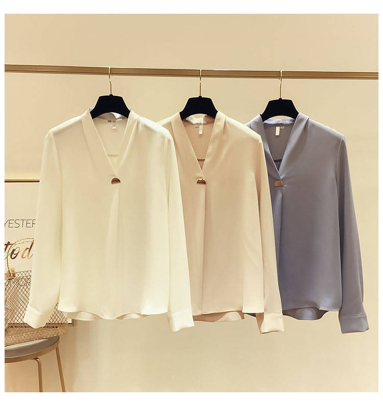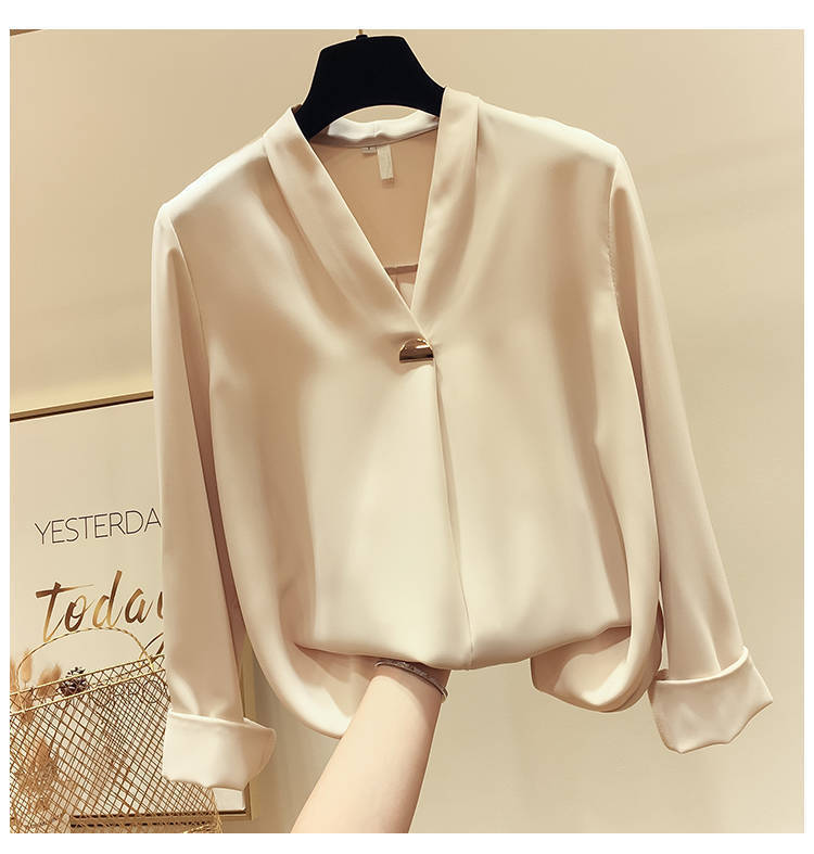 Camisa Blanca Nueva Elegante Slim Cuello en V Manga Larga Holgada Color Puro Primavera y Otoño 2025 Top Super Hada para Mujer