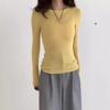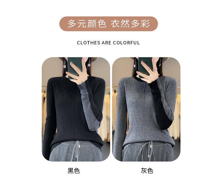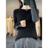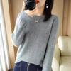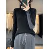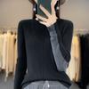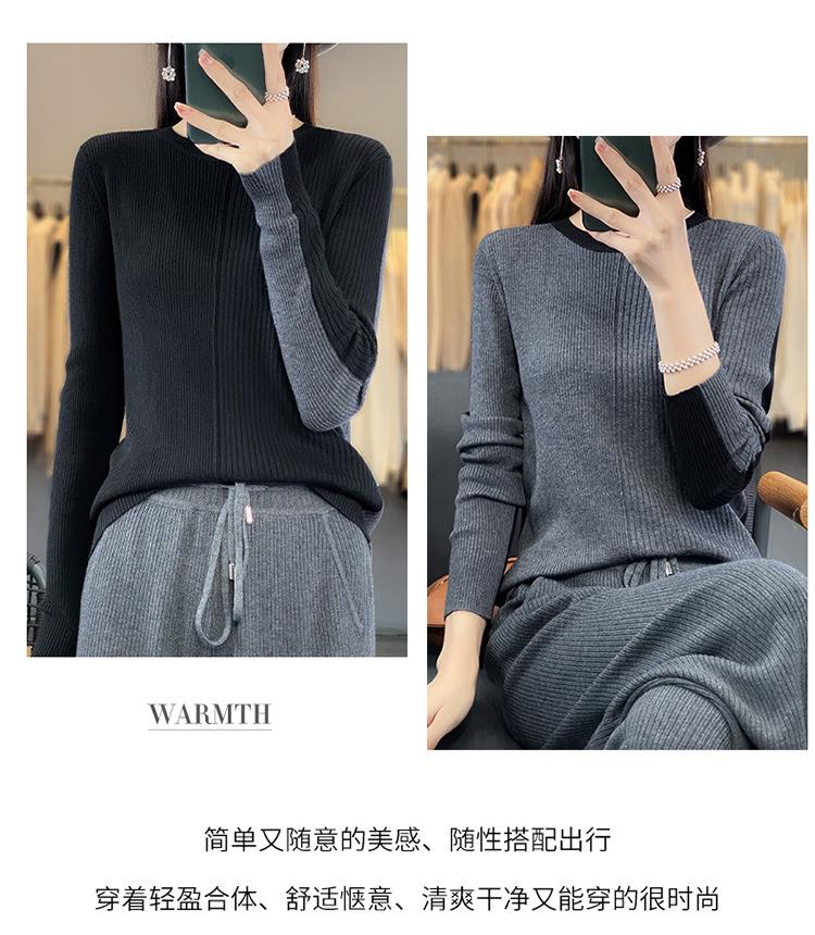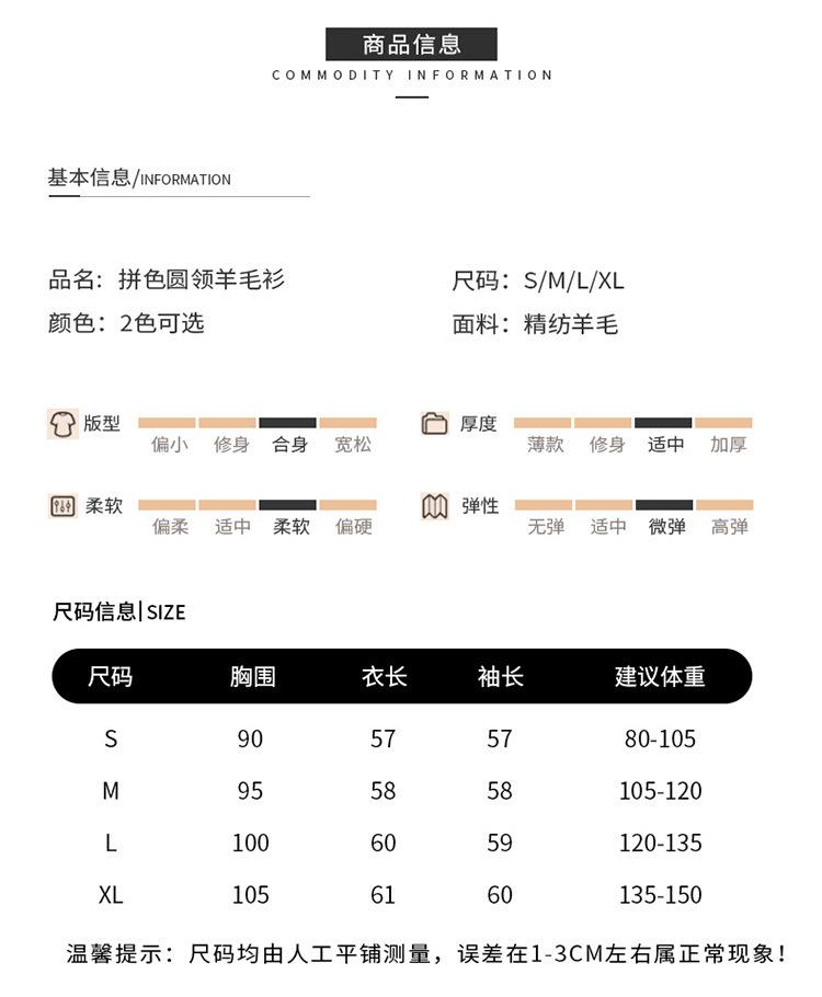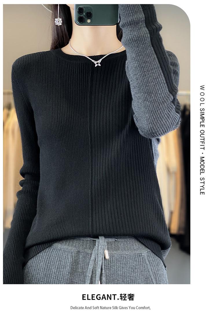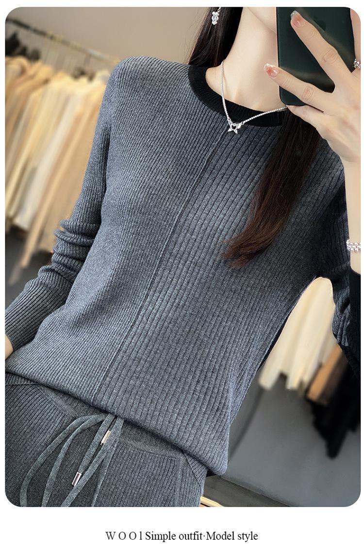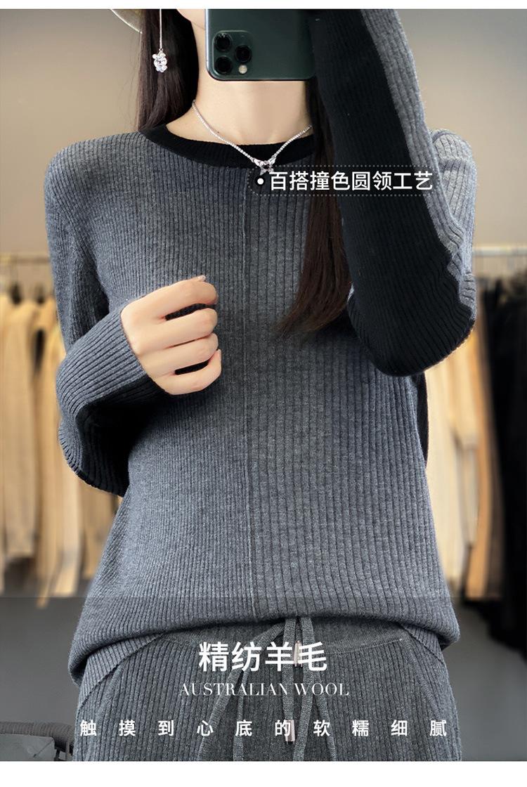 Suéter de lana con cuello redondo y diseño de contraste de color para mujer, nuevo suéter adelgazante versátil de primavera, camiseta de manga larga con parte inferior.