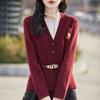 Cárdigan de punto de lana de otoño e invierno para mujer, fino y fino, con cuello en V francés exquisito, abrigo holgado de manga larga para mujer