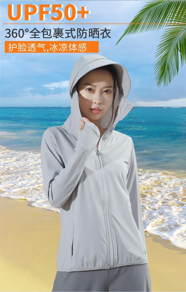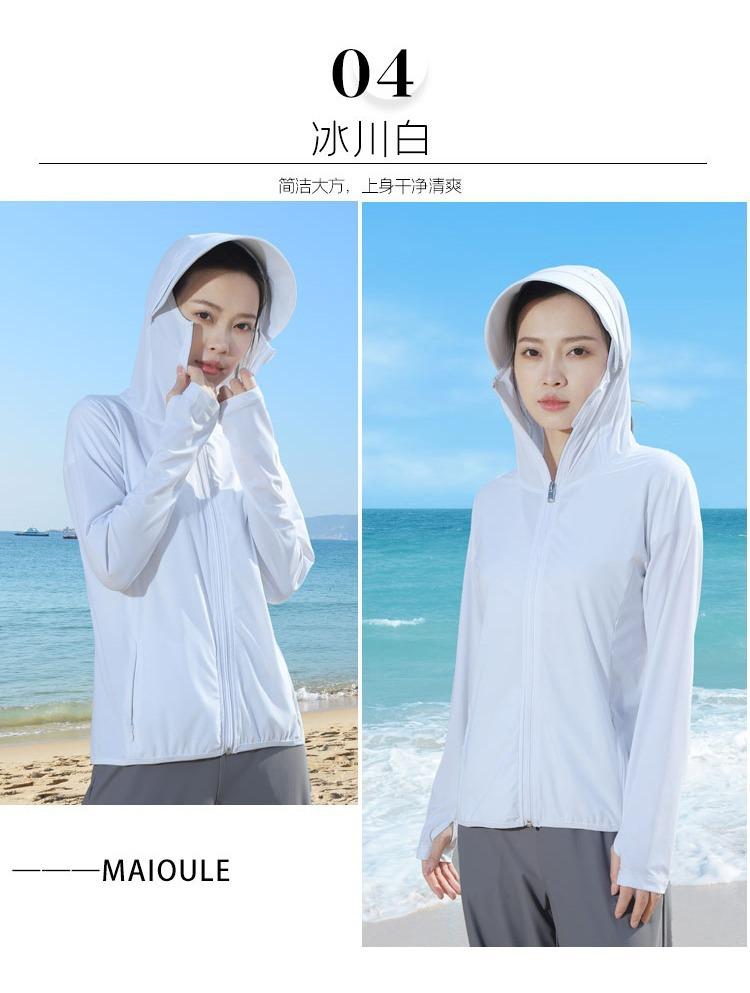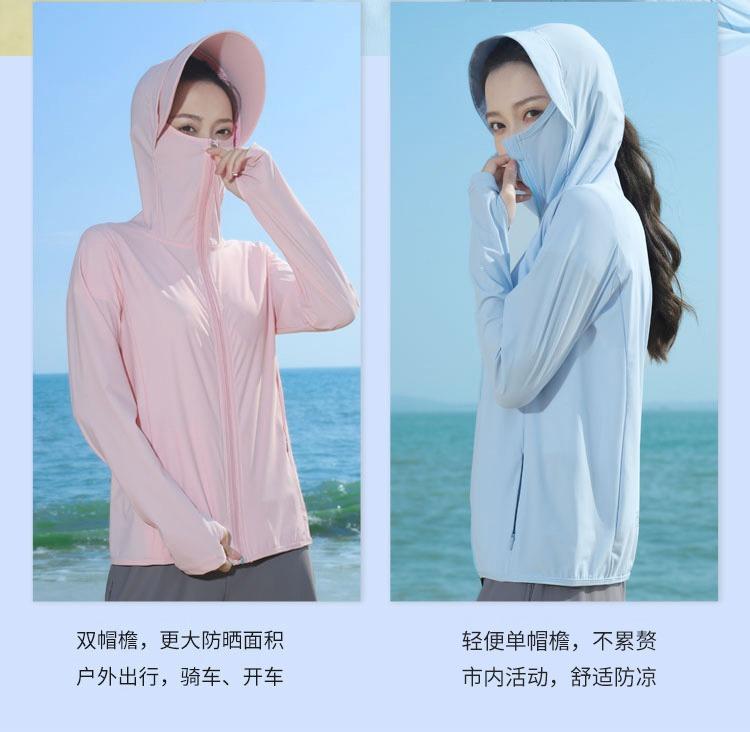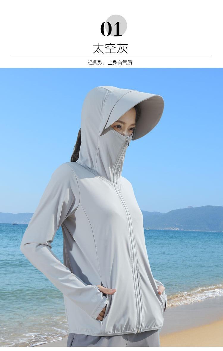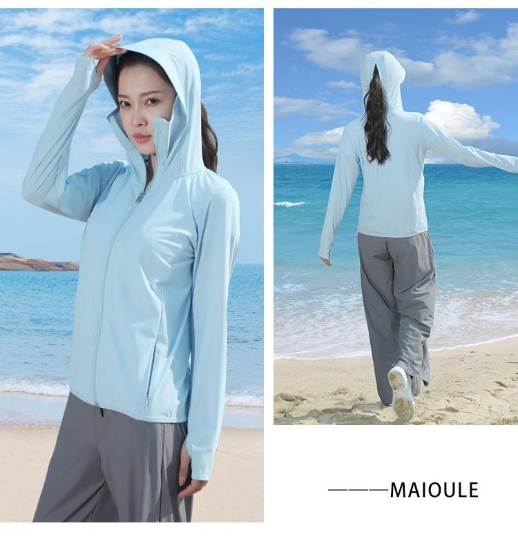 Ropa de protección solar con capucha de nailon y seda helada para mujer, con sensación de frescura, ropa de verano anti-ultravioleta, transpirable y con protección solar.