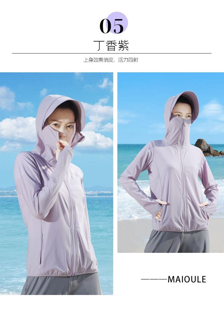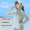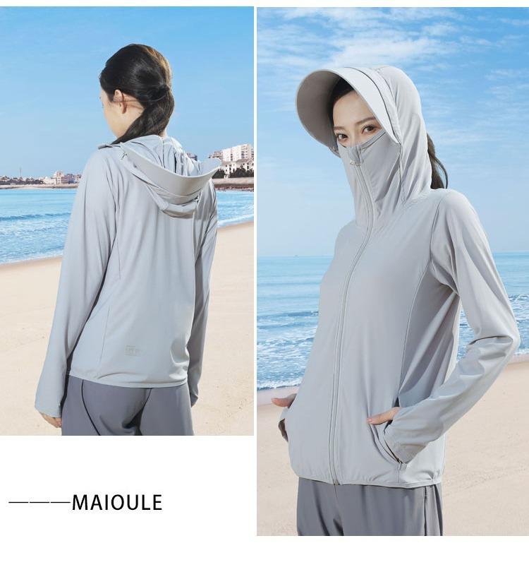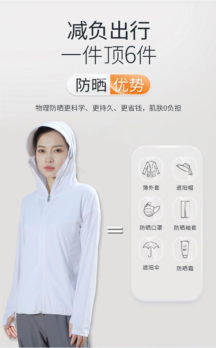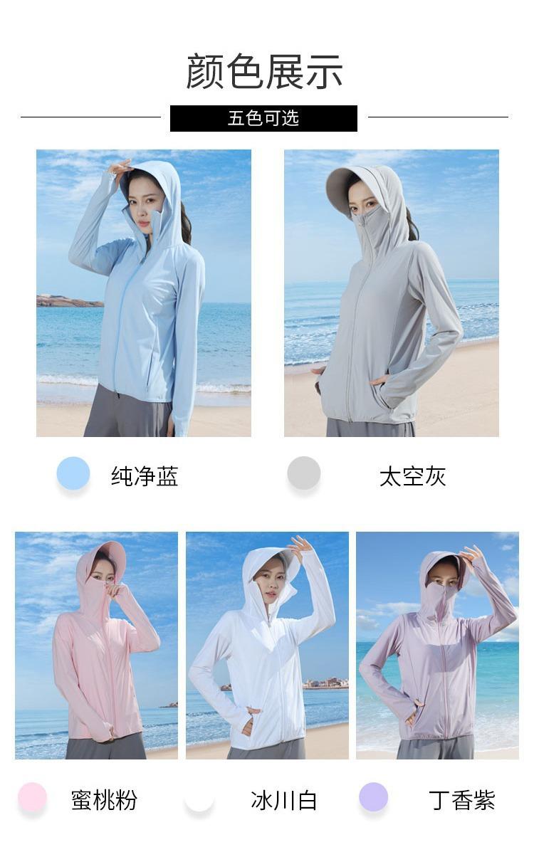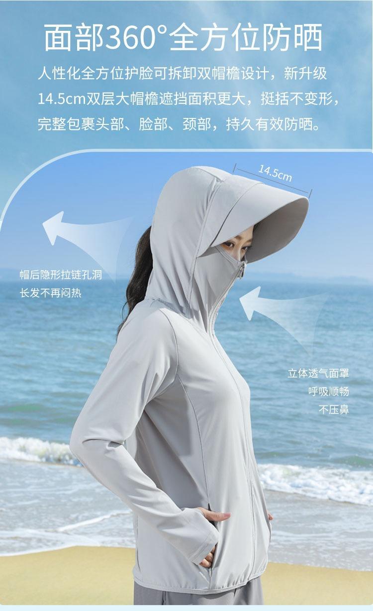 Ropa de protección solar con capucha de nailon y seda helada para mujer, con sensación de frescura, ropa de verano anti-ultravioleta, transpirable y con protección solar.