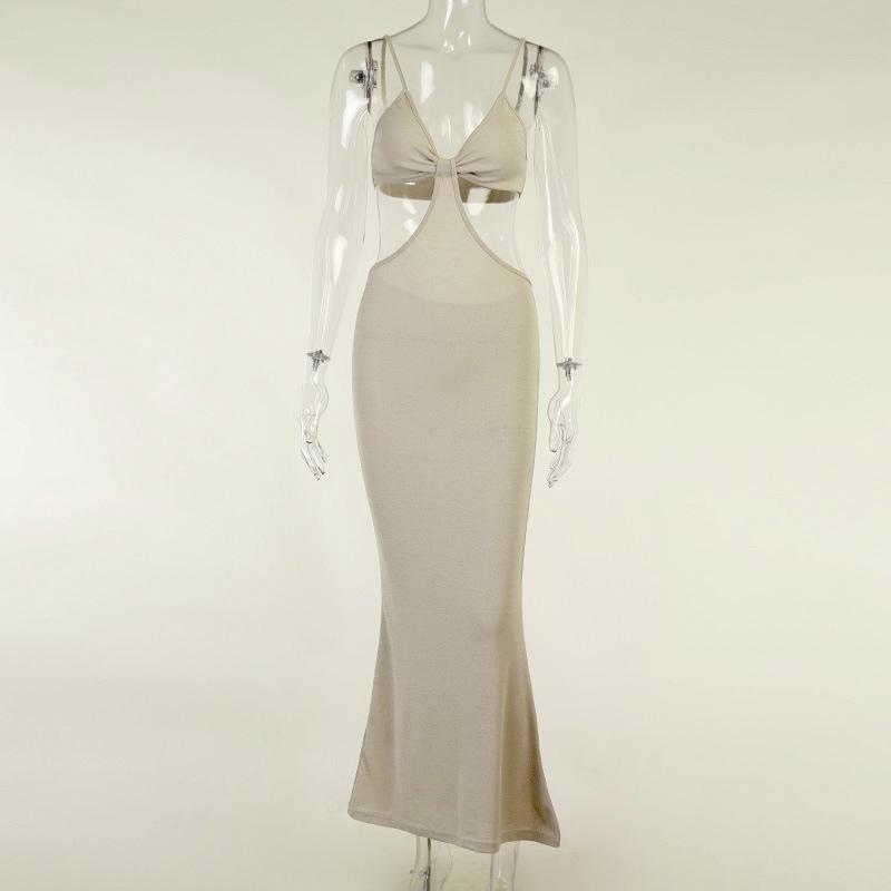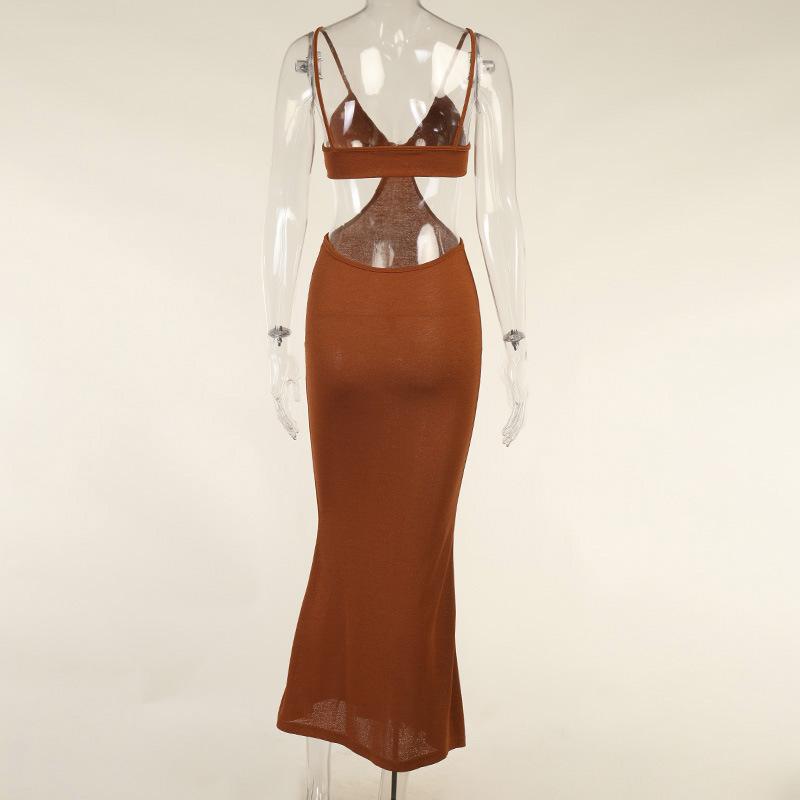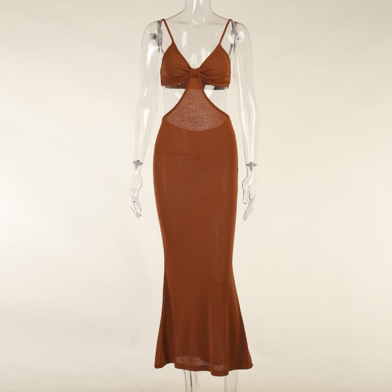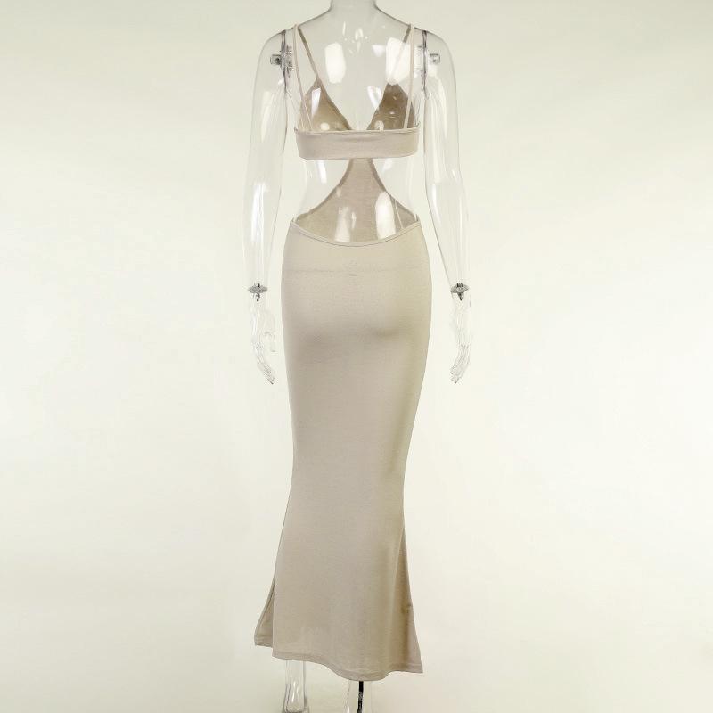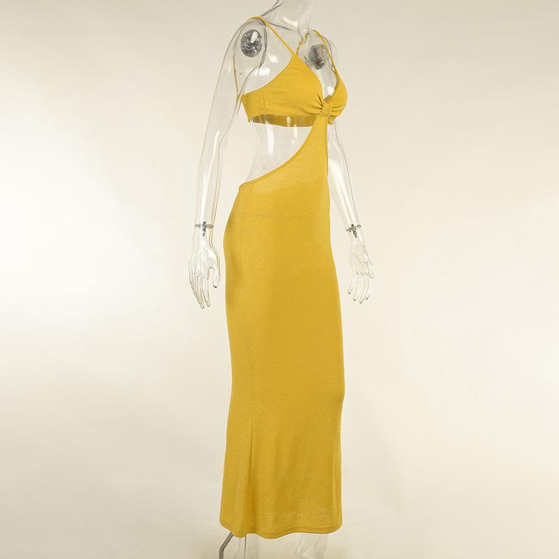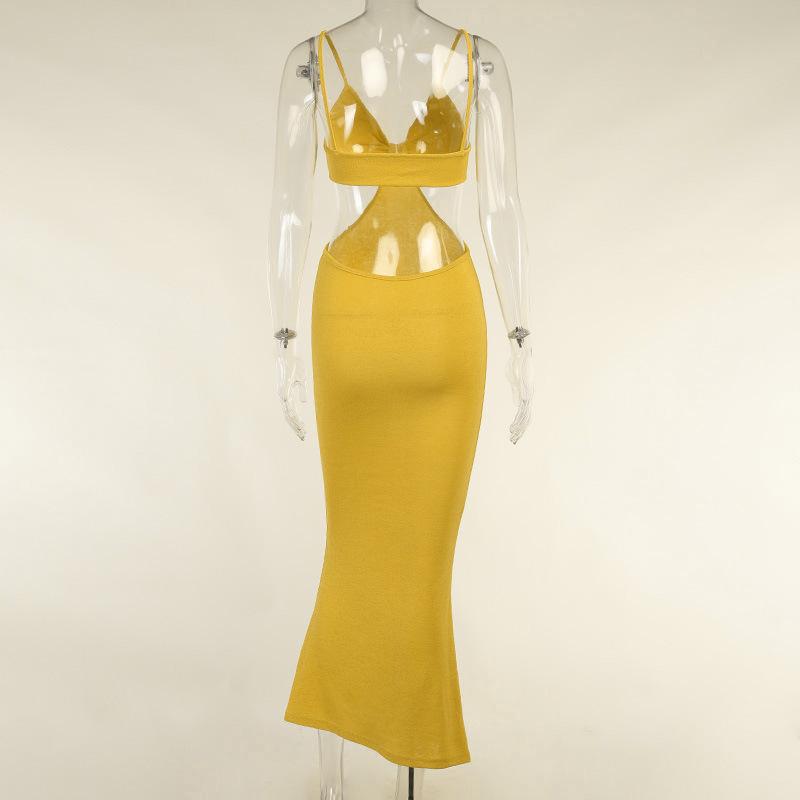 Europa y Estados Unidos primavera y verano nuevo 25477p vestido sexy sin espalda elegante elegante falda de tiras huecas delgadas ropa de mujer al por mayor