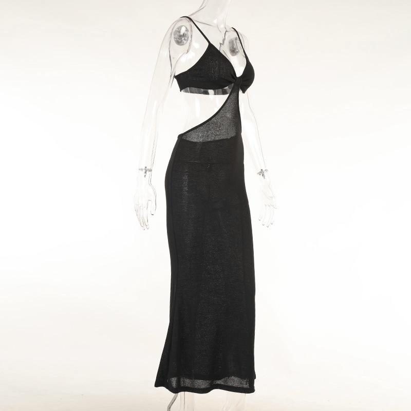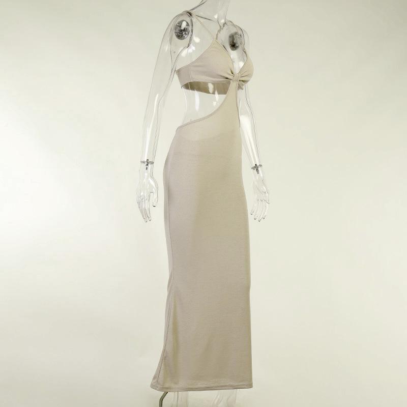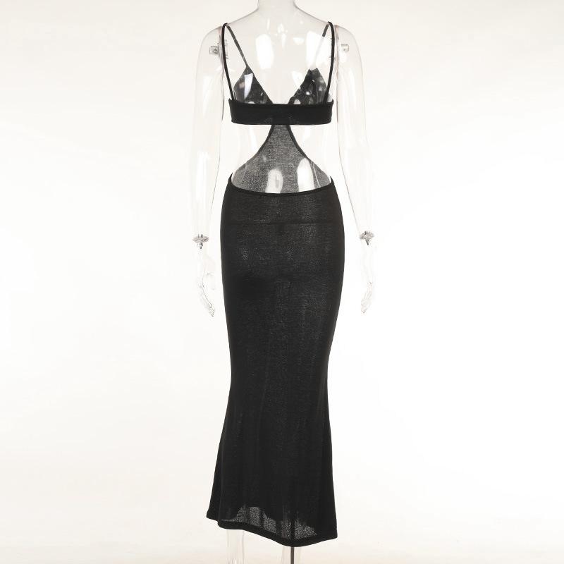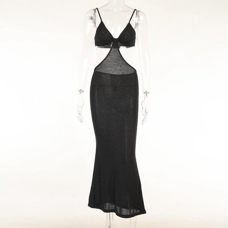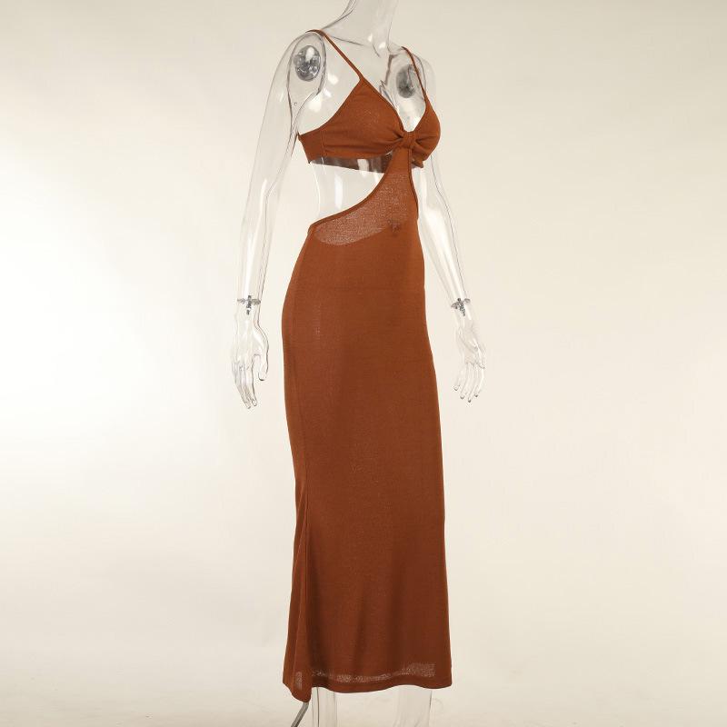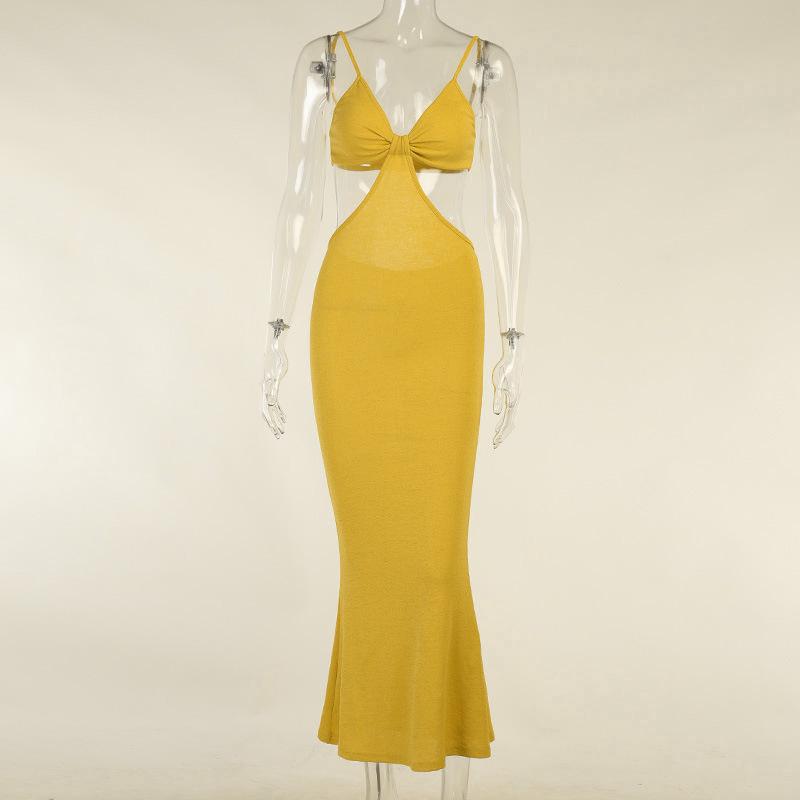 Europa y Estados Unidos primavera y verano nuevo 25477p vestido sexy sin espalda elegante elegante falda de tiras huecas delgadas ropa de mujer al por mayor
