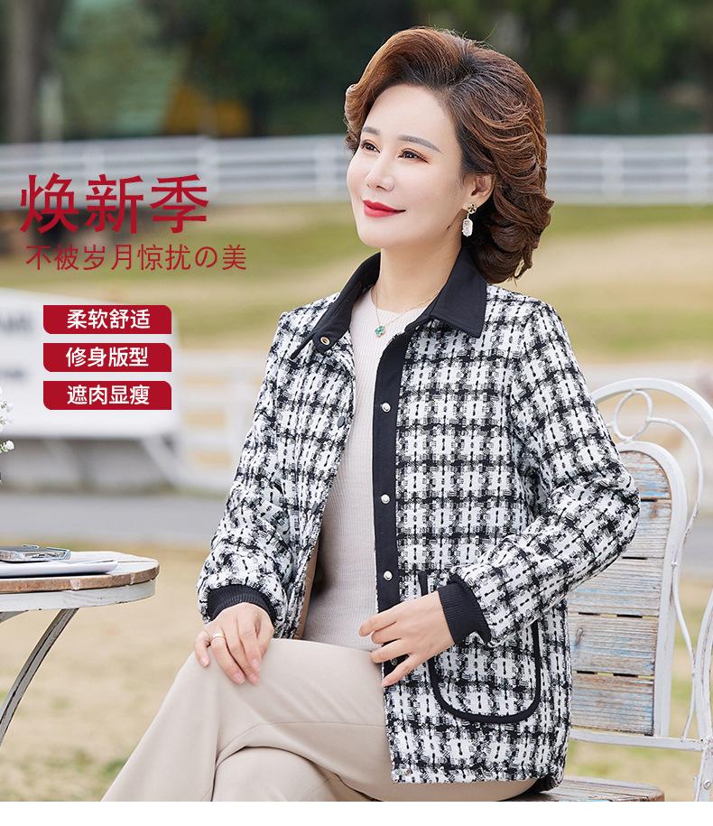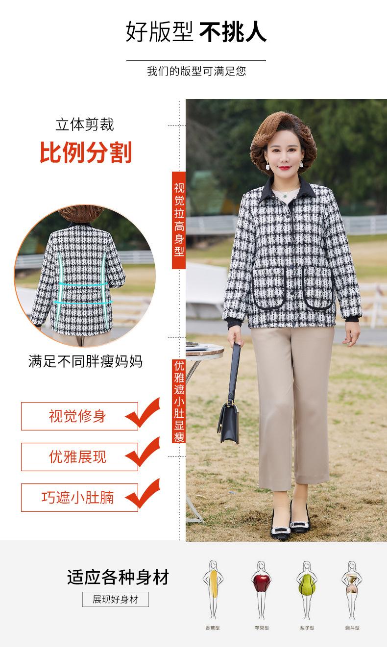 Abrigo de Lana de Otoño para Mamá, Moda a Cuadros para Mujeres de Mediana Edad, Moda para Mujeres de Mediana Edad y Ancianas, Top de Lana Holgado