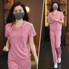 Traje Deportivo Transfronterizo Ropa de Primavera y Otoño para Mujer 2025 Nueva Moda Deportiva de Manga Corta con Cuello Redondo Conjunto Casual de Dos Piezas