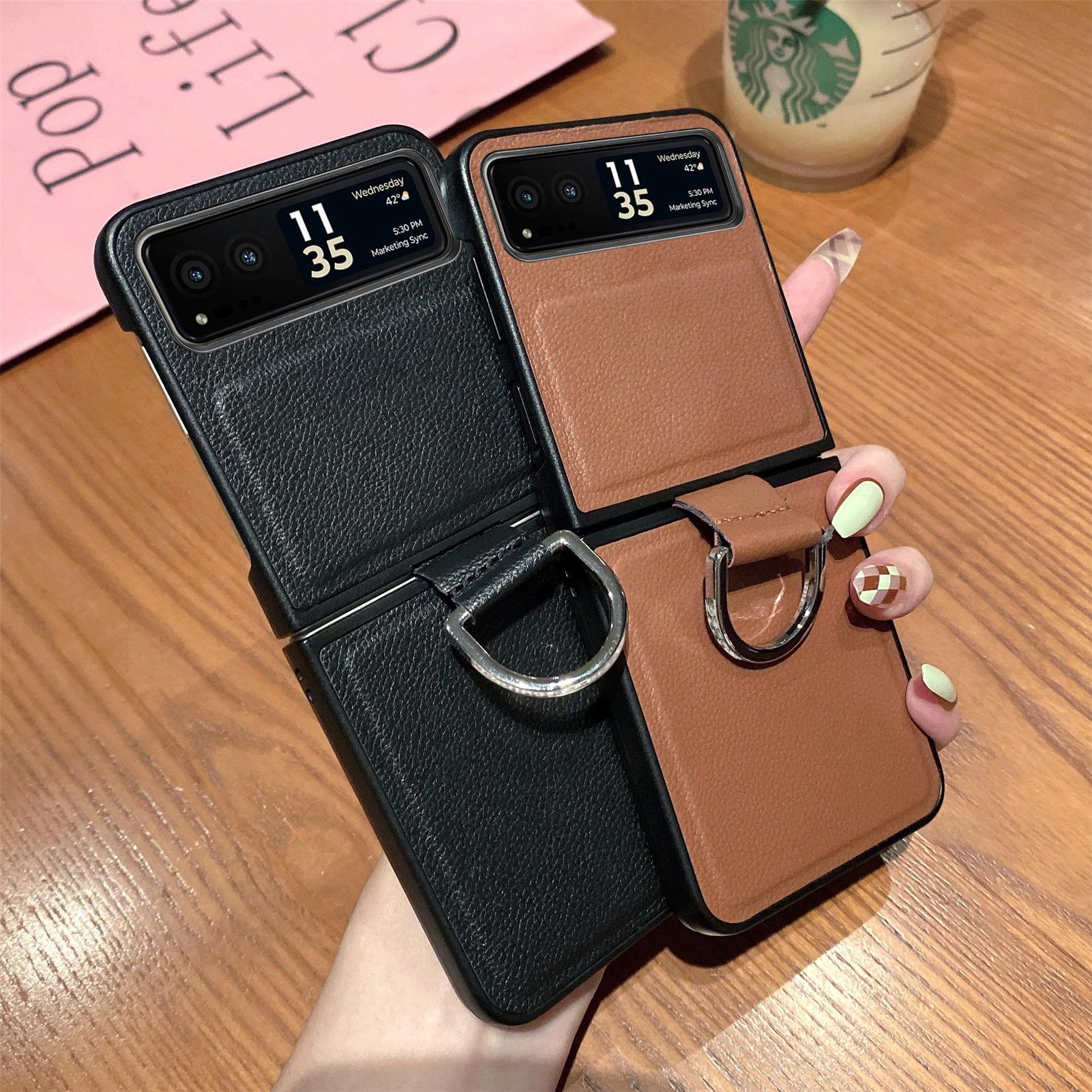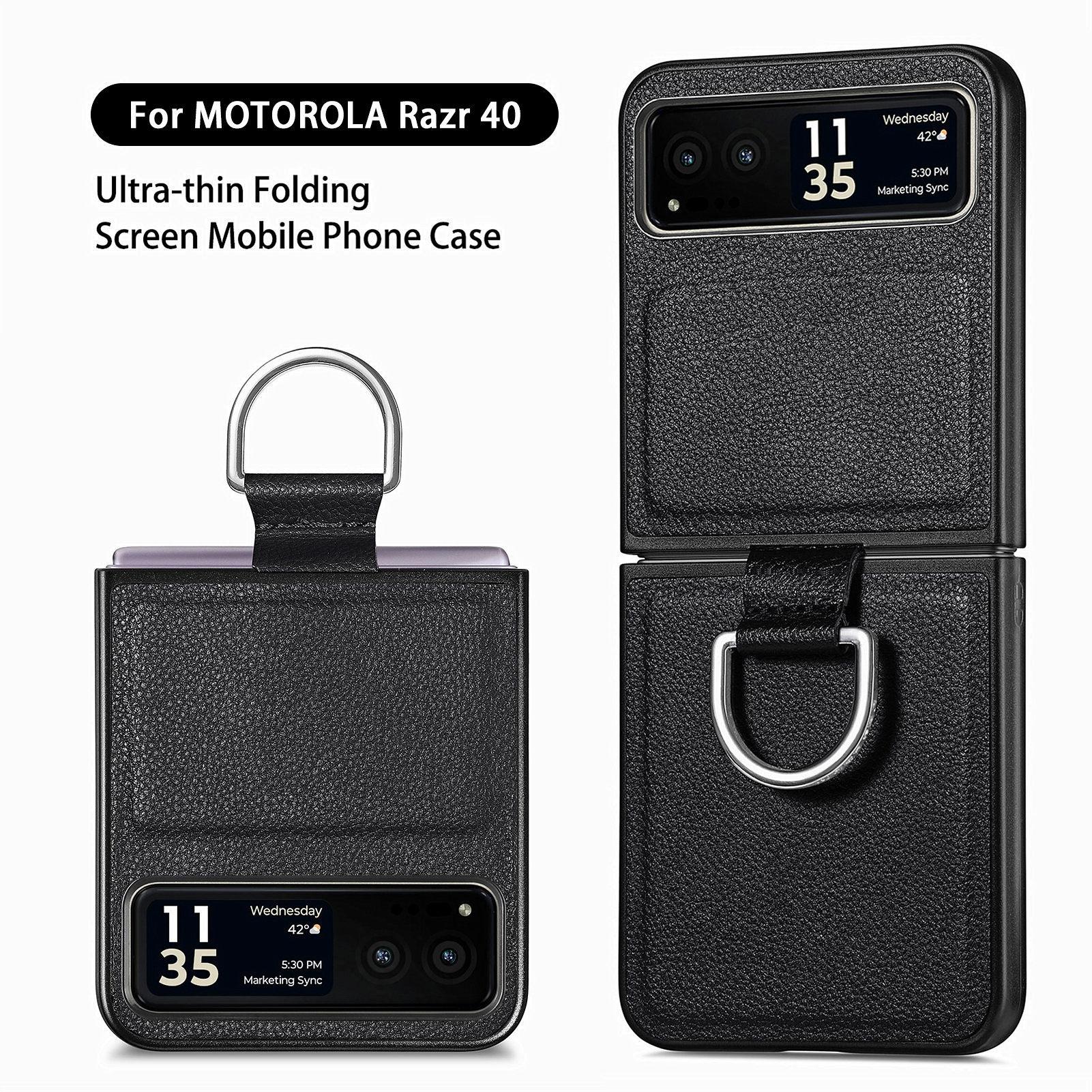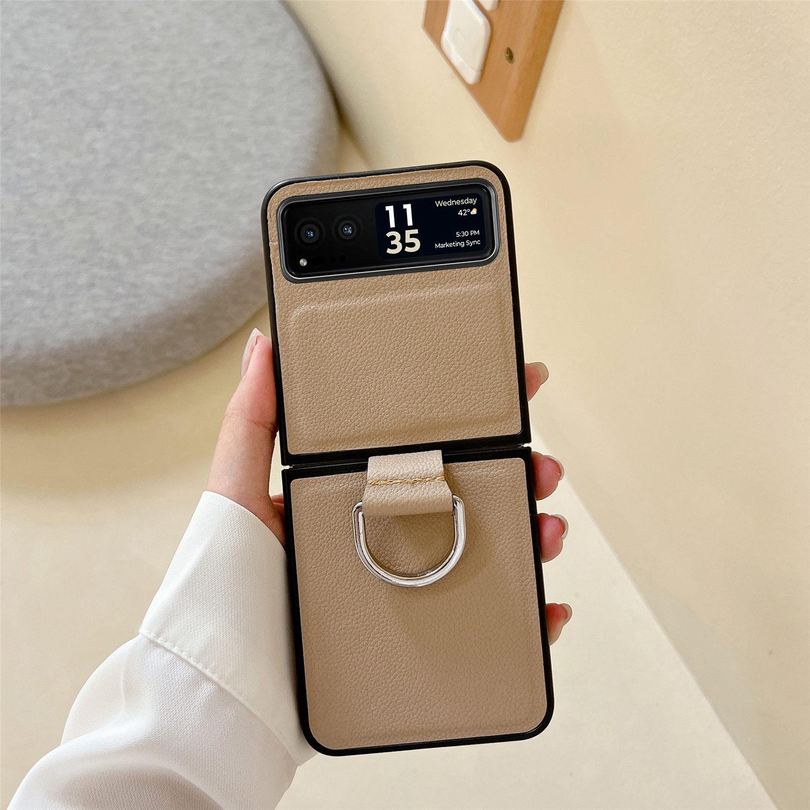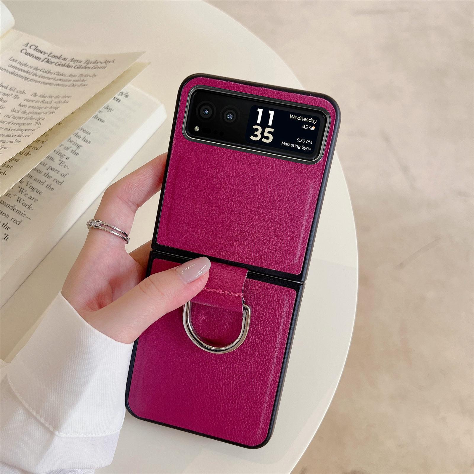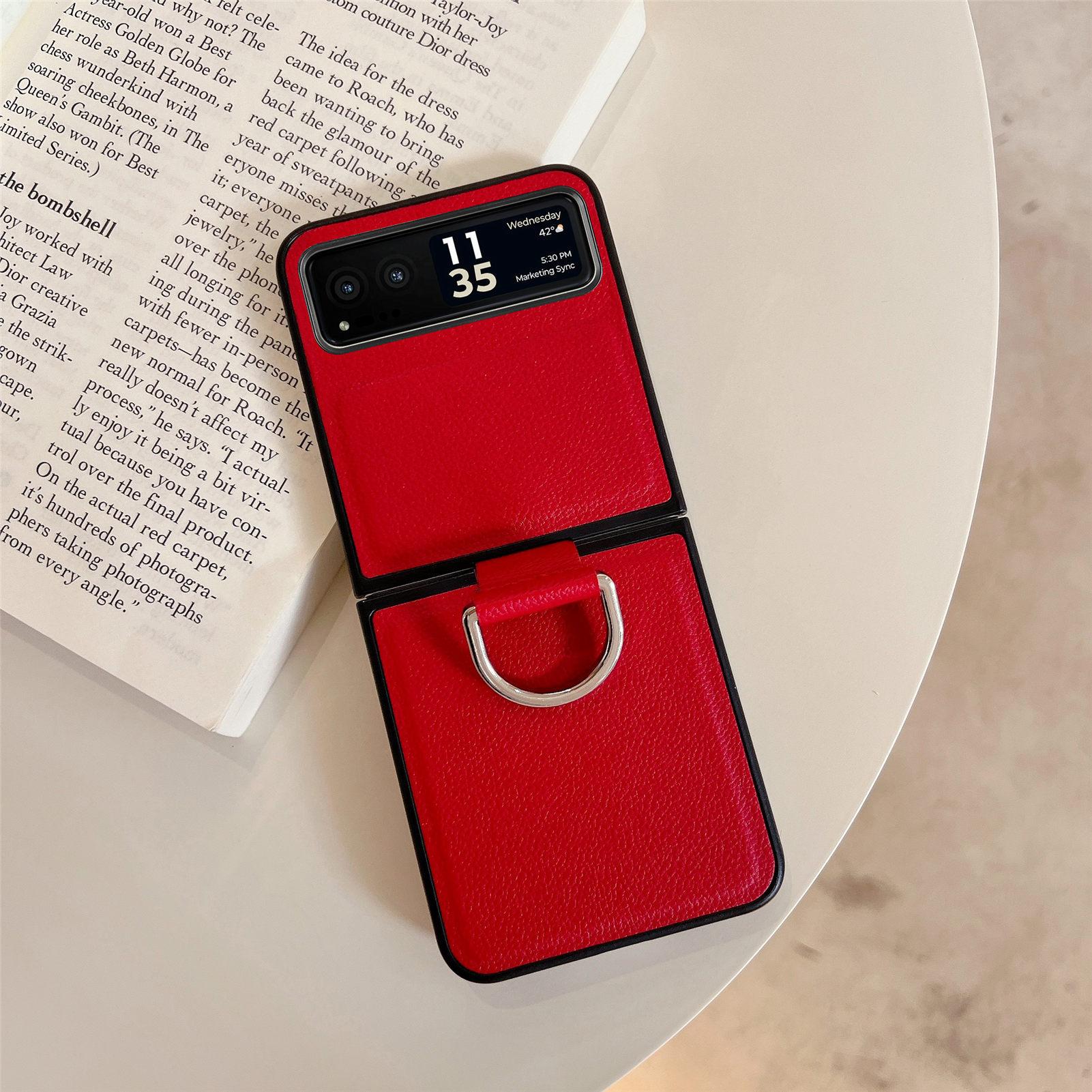 Funda para Moto Razr60 con diseño de lichi y anillo de dedo de cuero sintético, ultra plegable, con pantalla protectora.