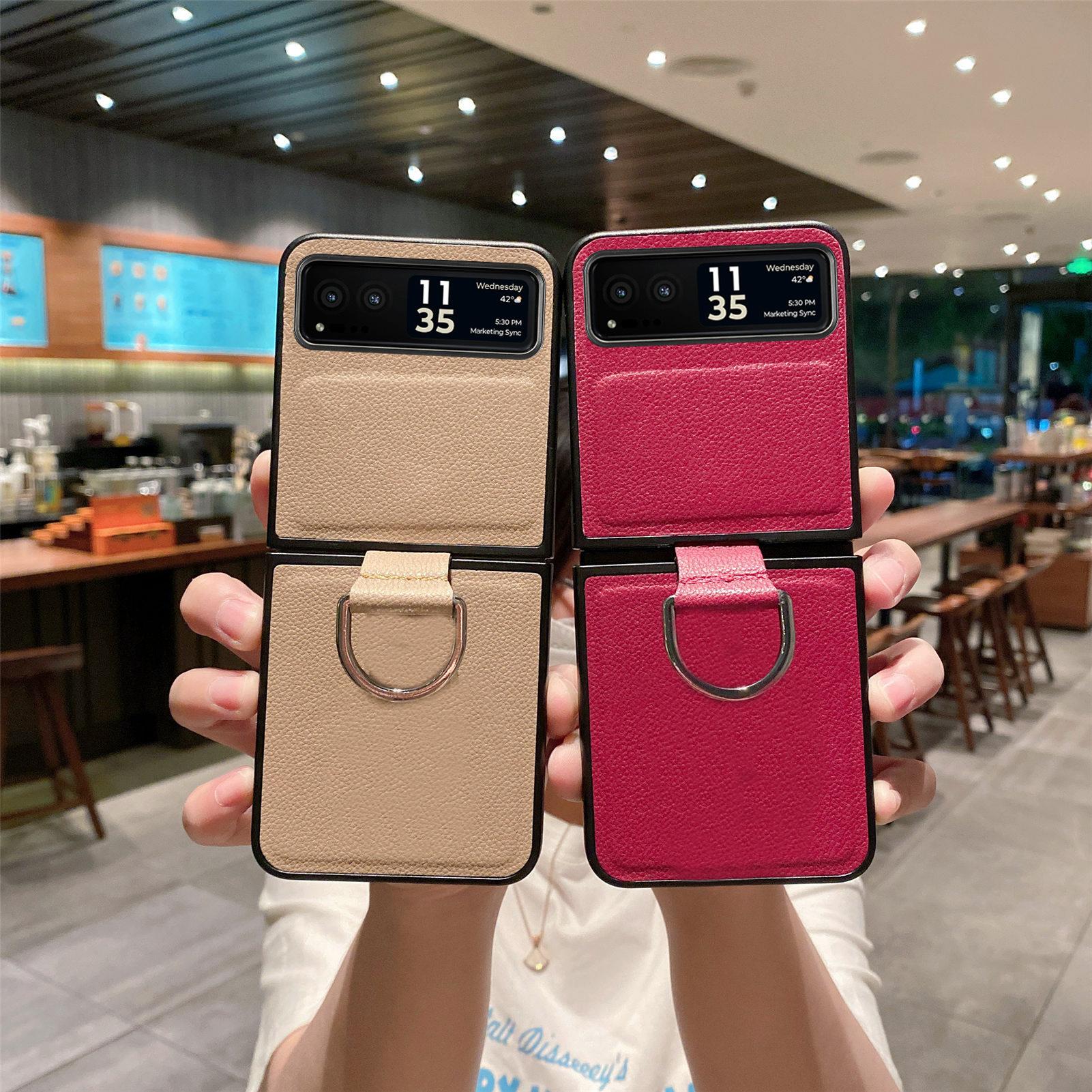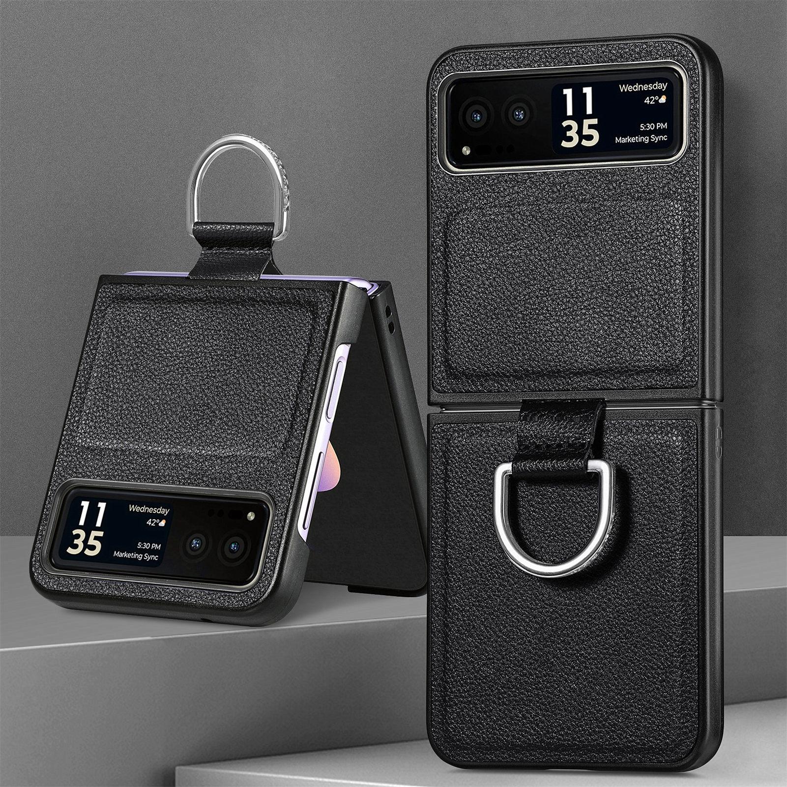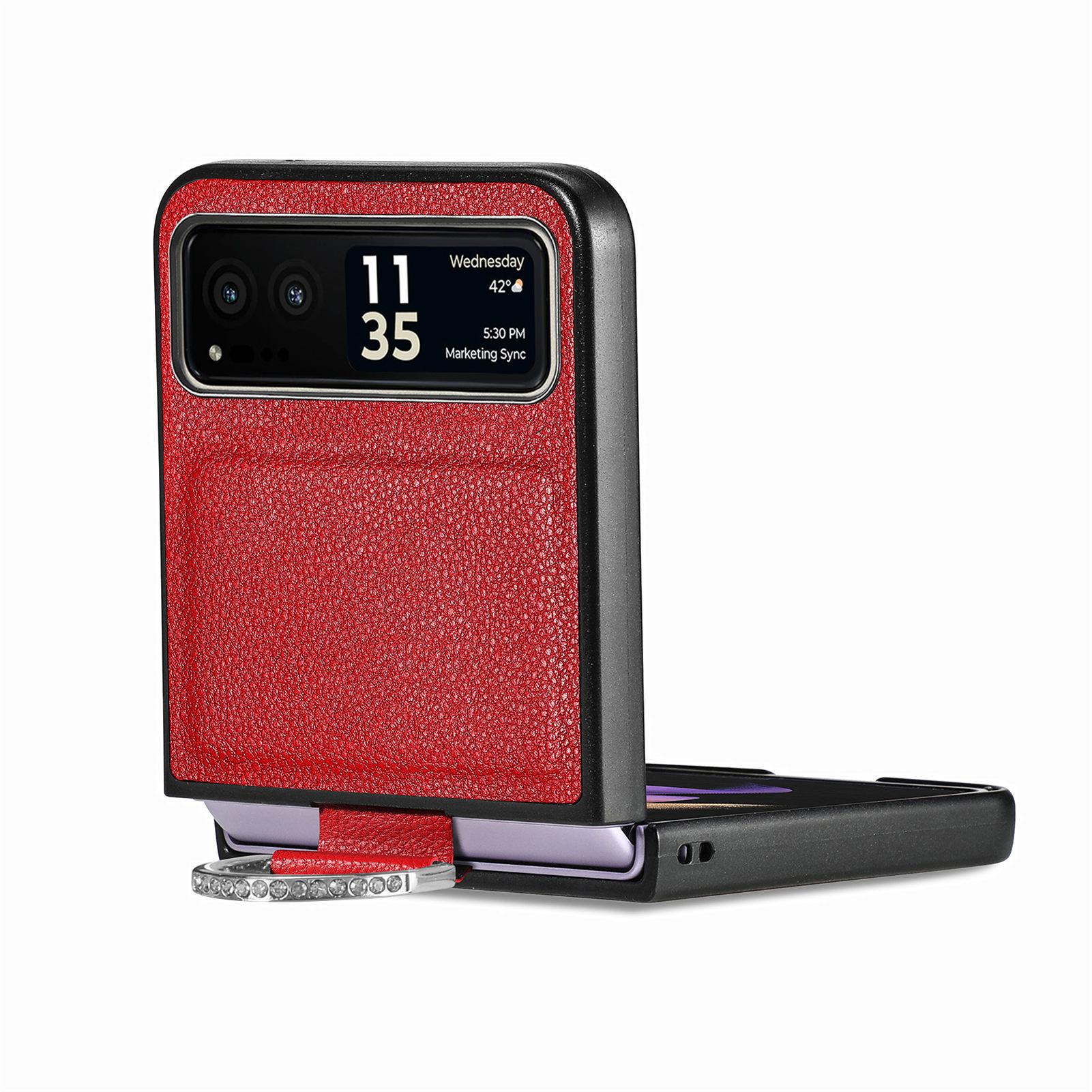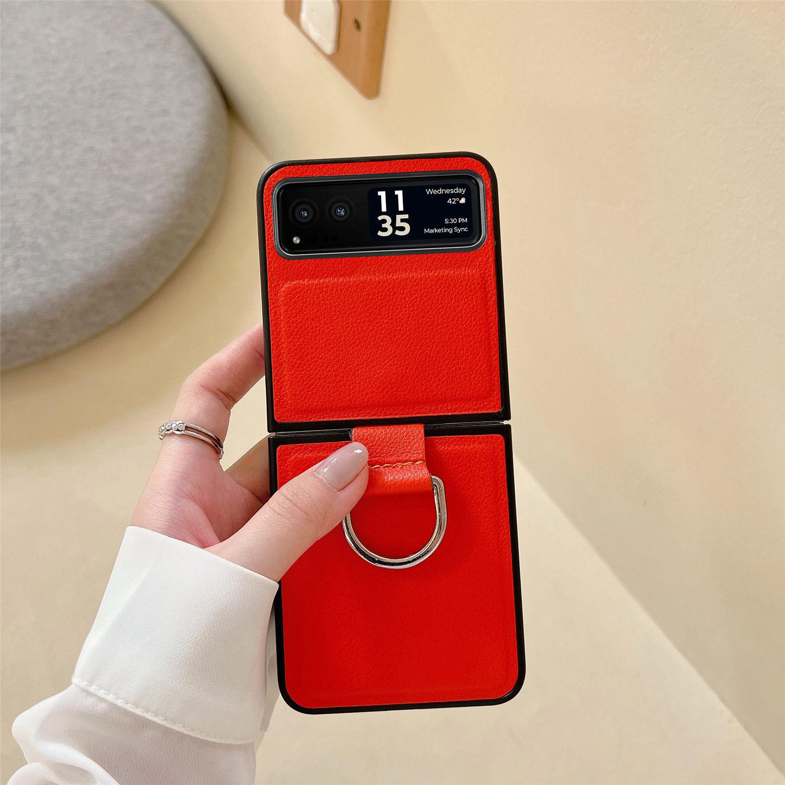 Funda para Moto Razr60 con diseño de lichi y anillo de dedo de cuero sintético, ultra plegable, con pantalla protectora.