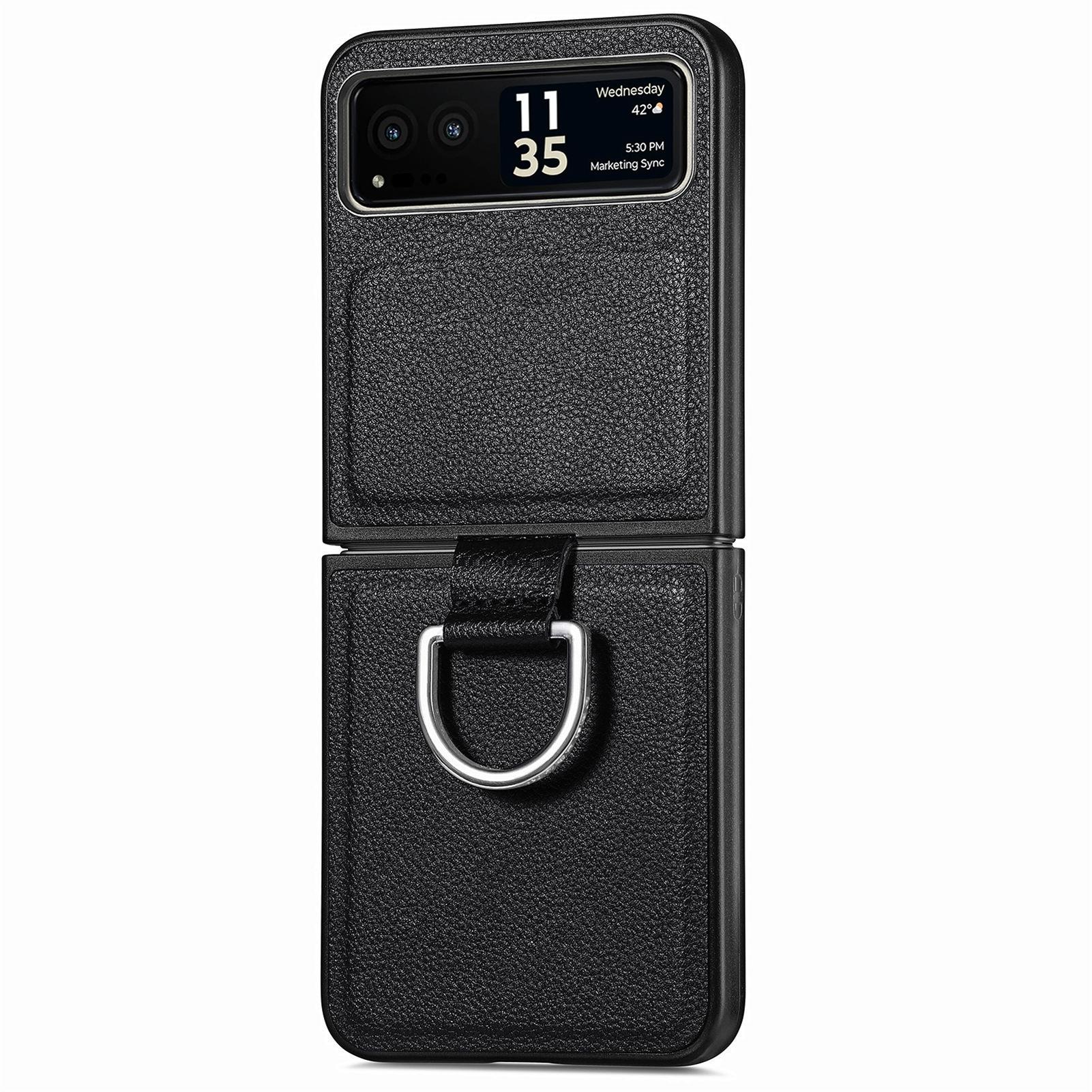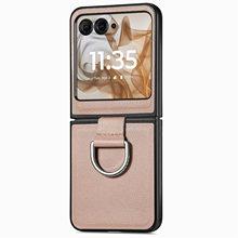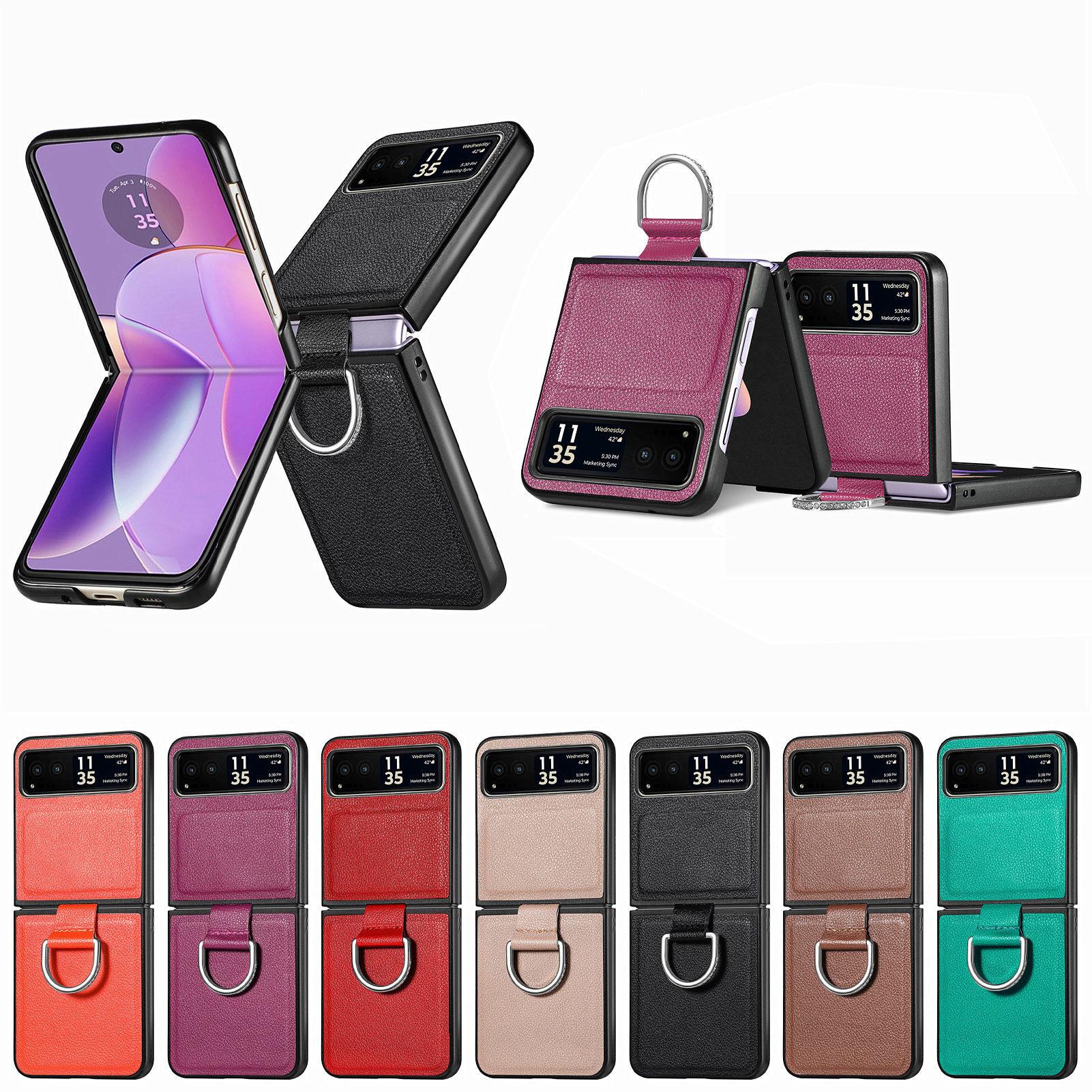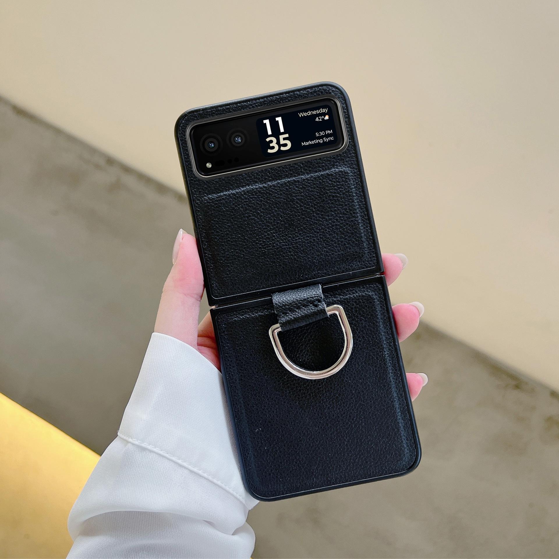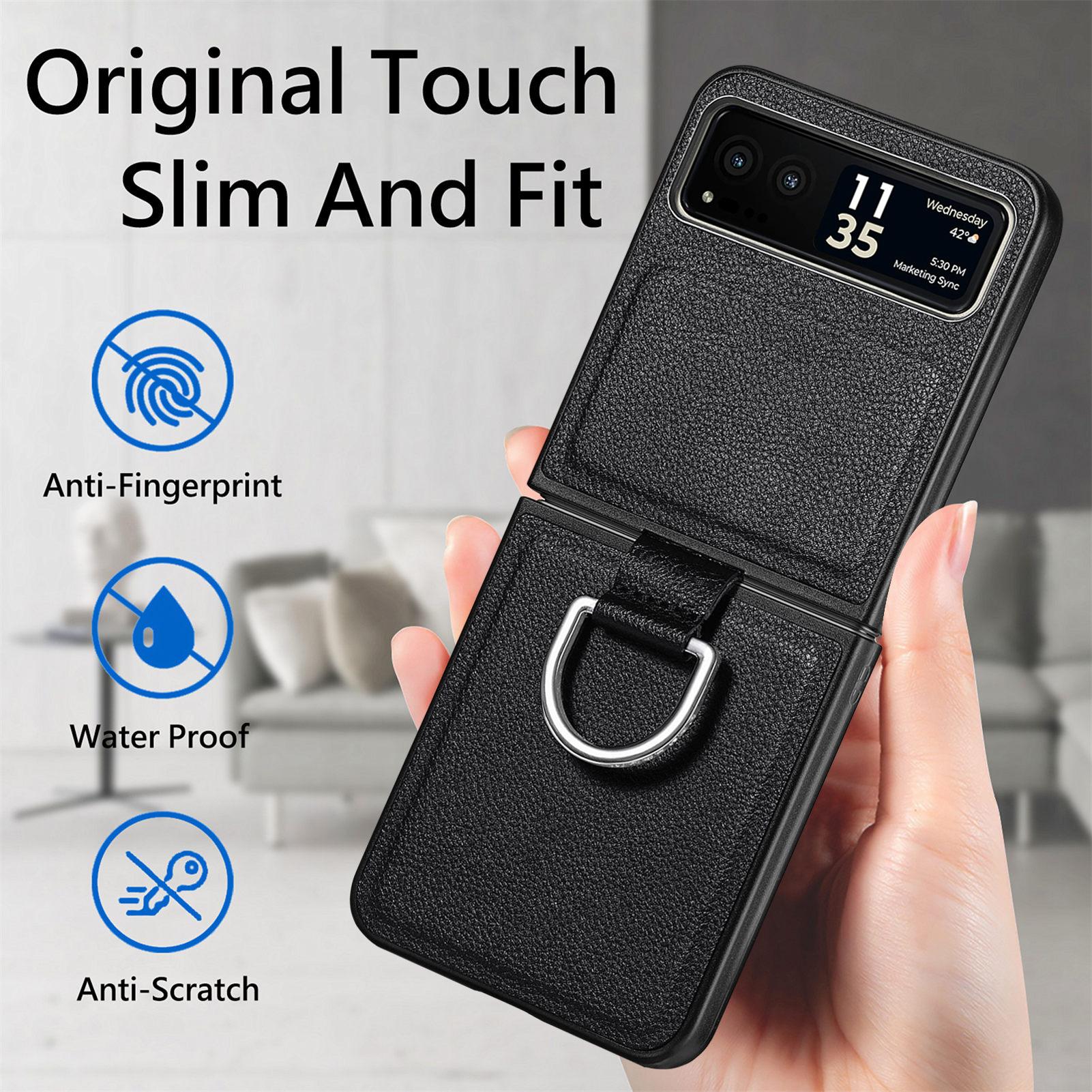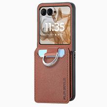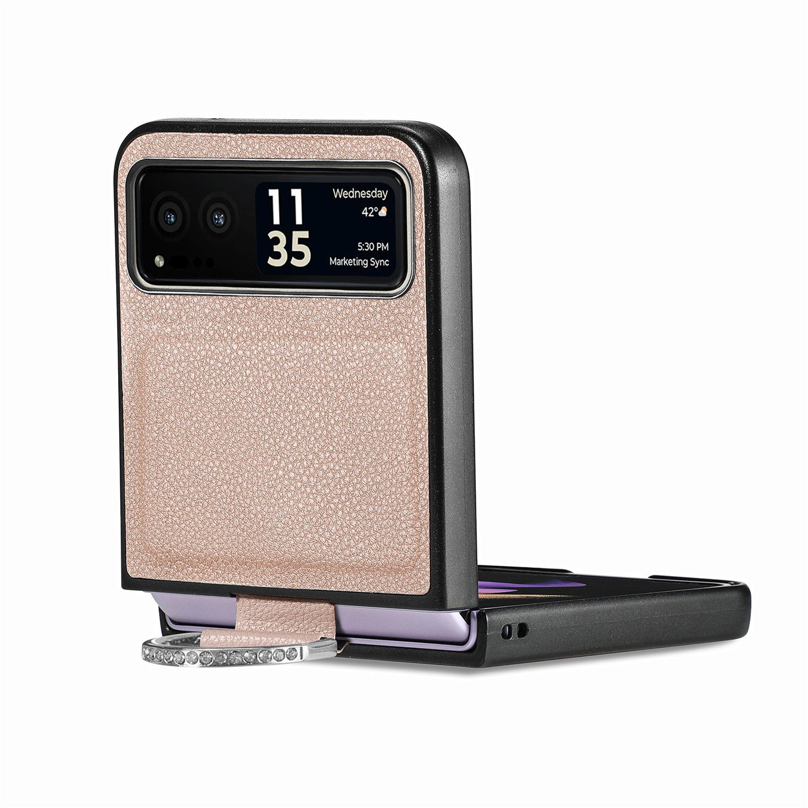 Funda para Moto Razr60 con diseño de lichi y anillo de dedo de cuero sintético, ultra plegable, con pantalla protectora.