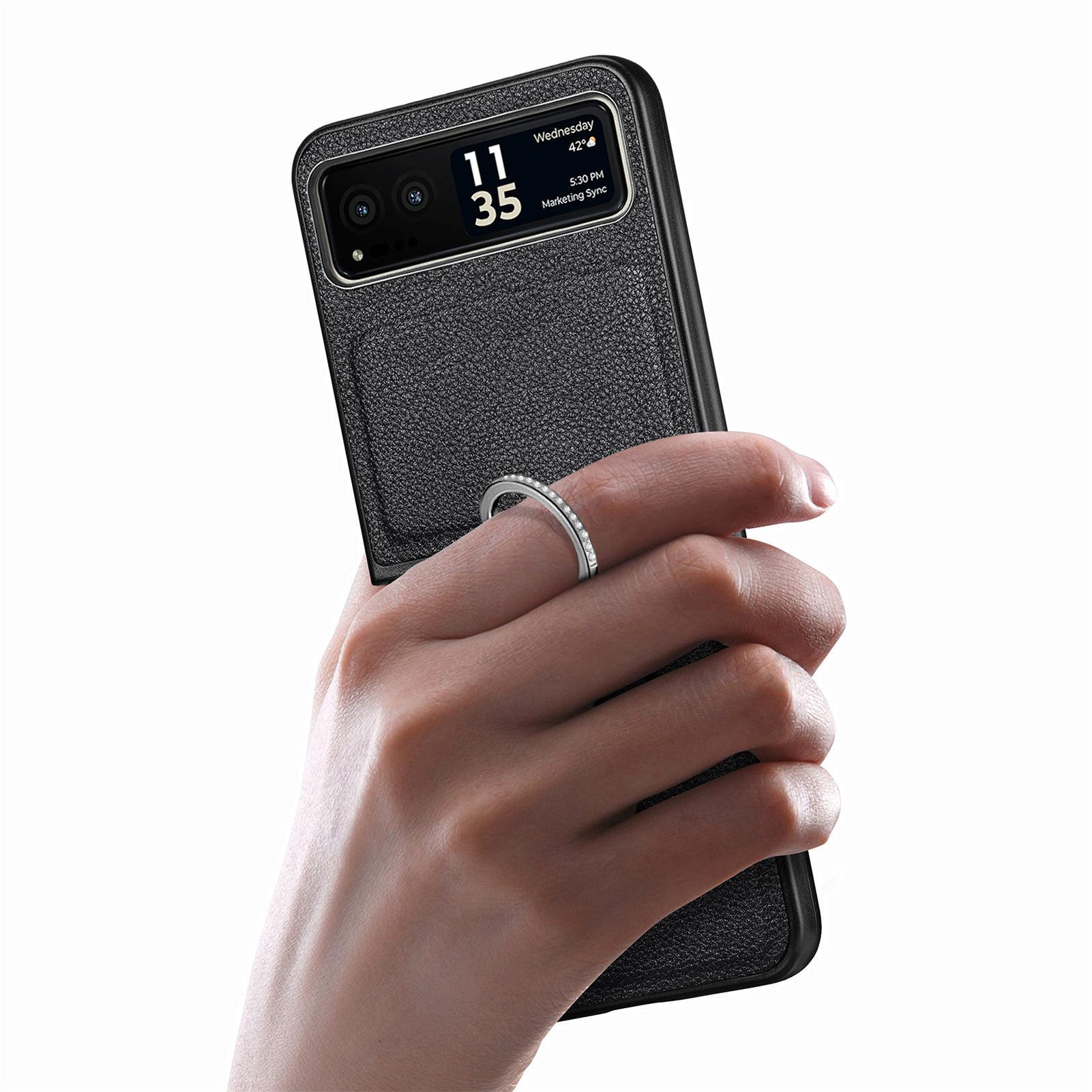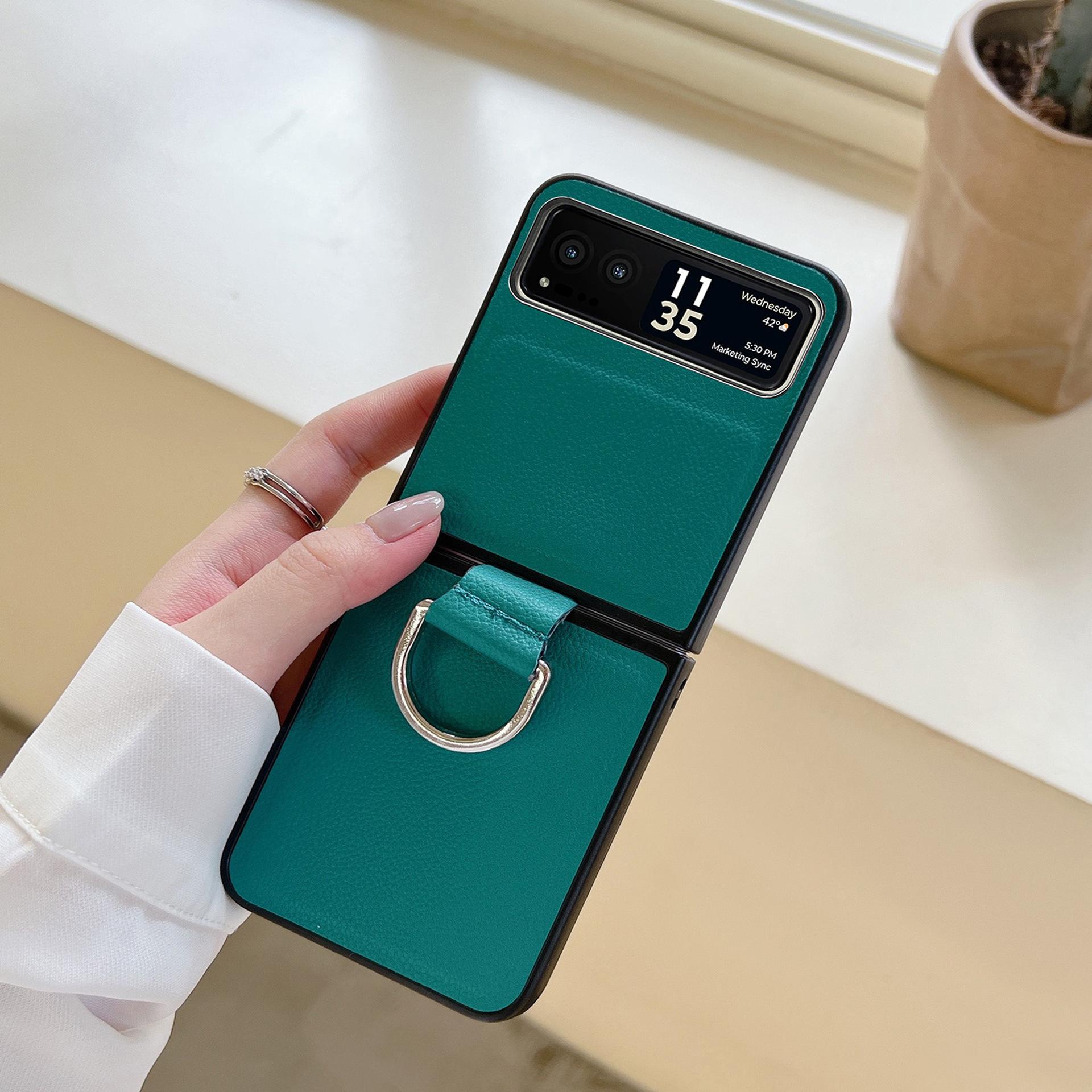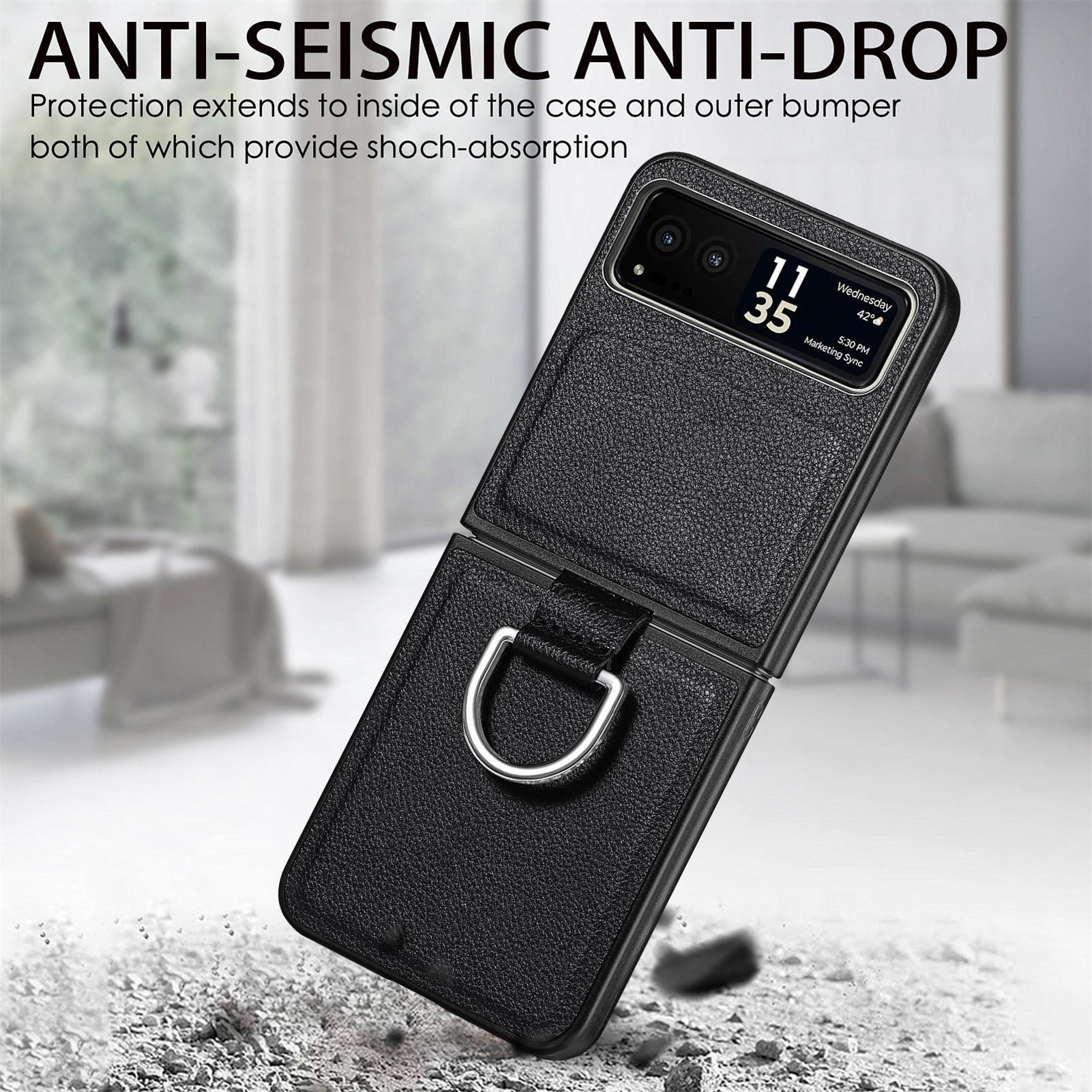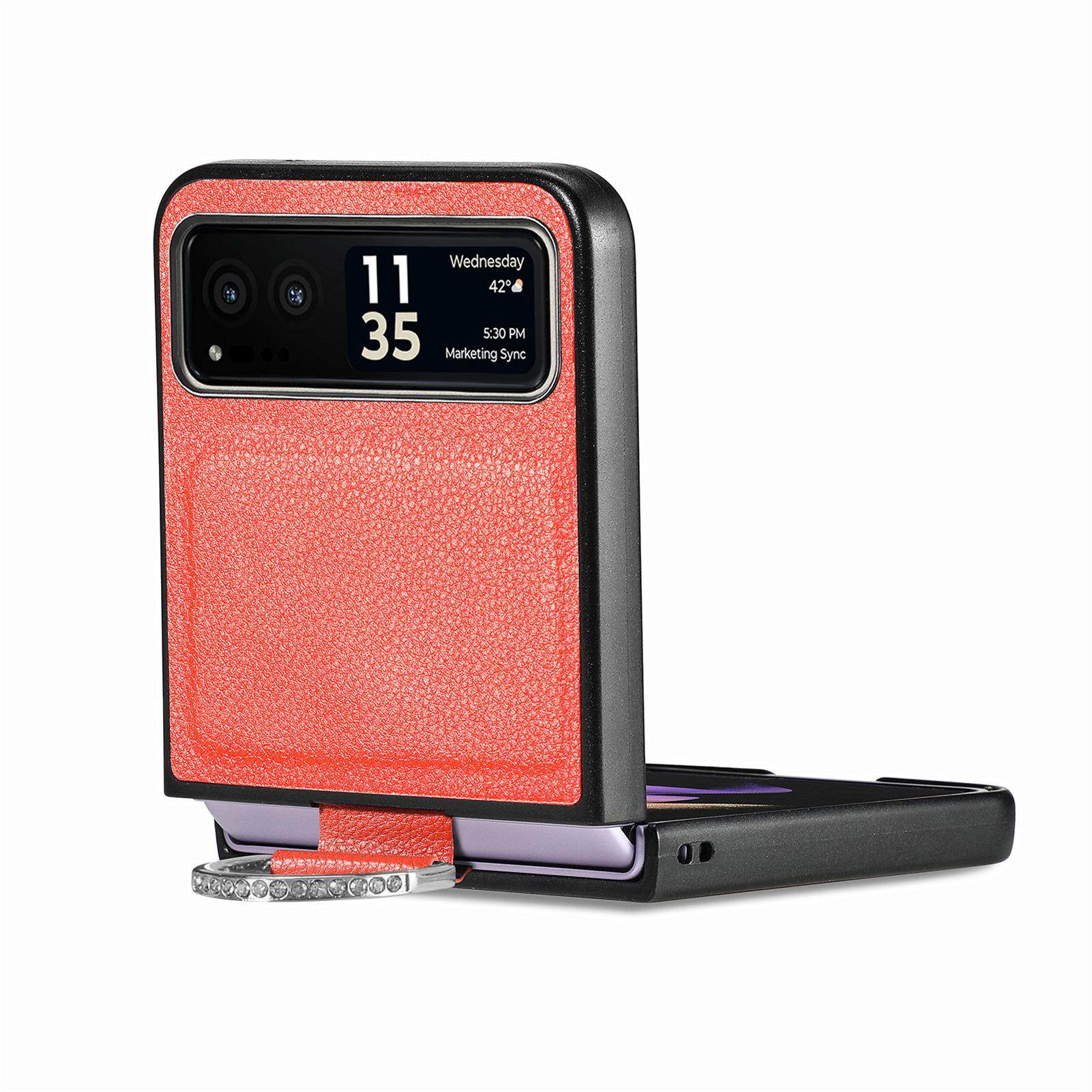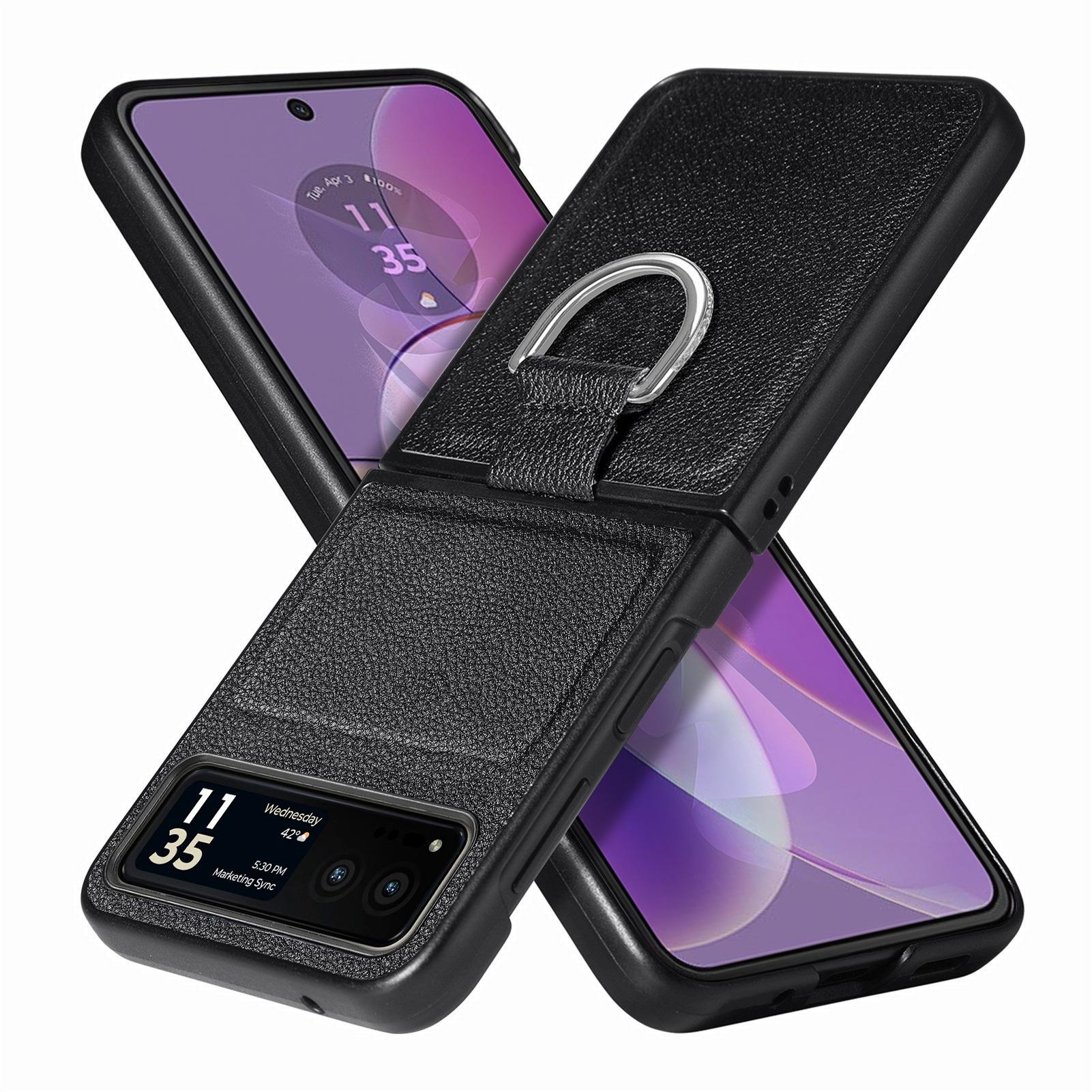 Funda para Moto Razr60 con diseño de lichi y anillo de dedo de cuero sintético, ultra plegable, con pantalla protectora.