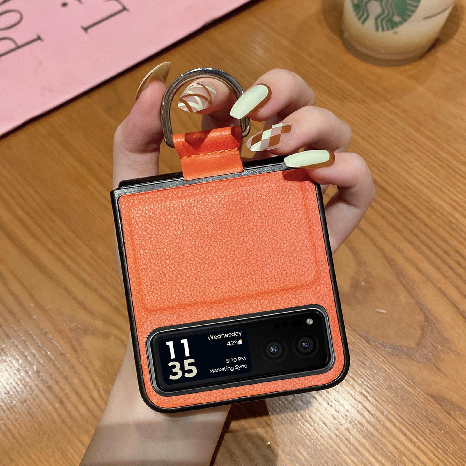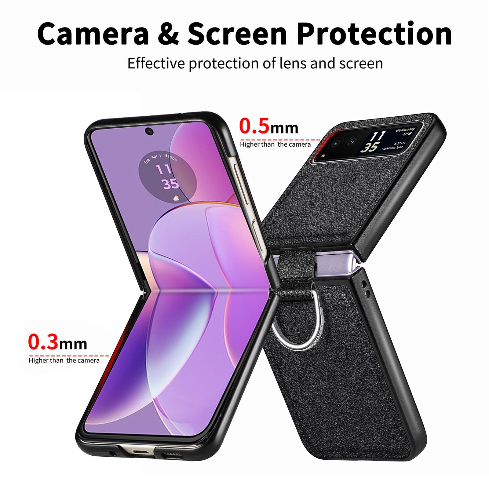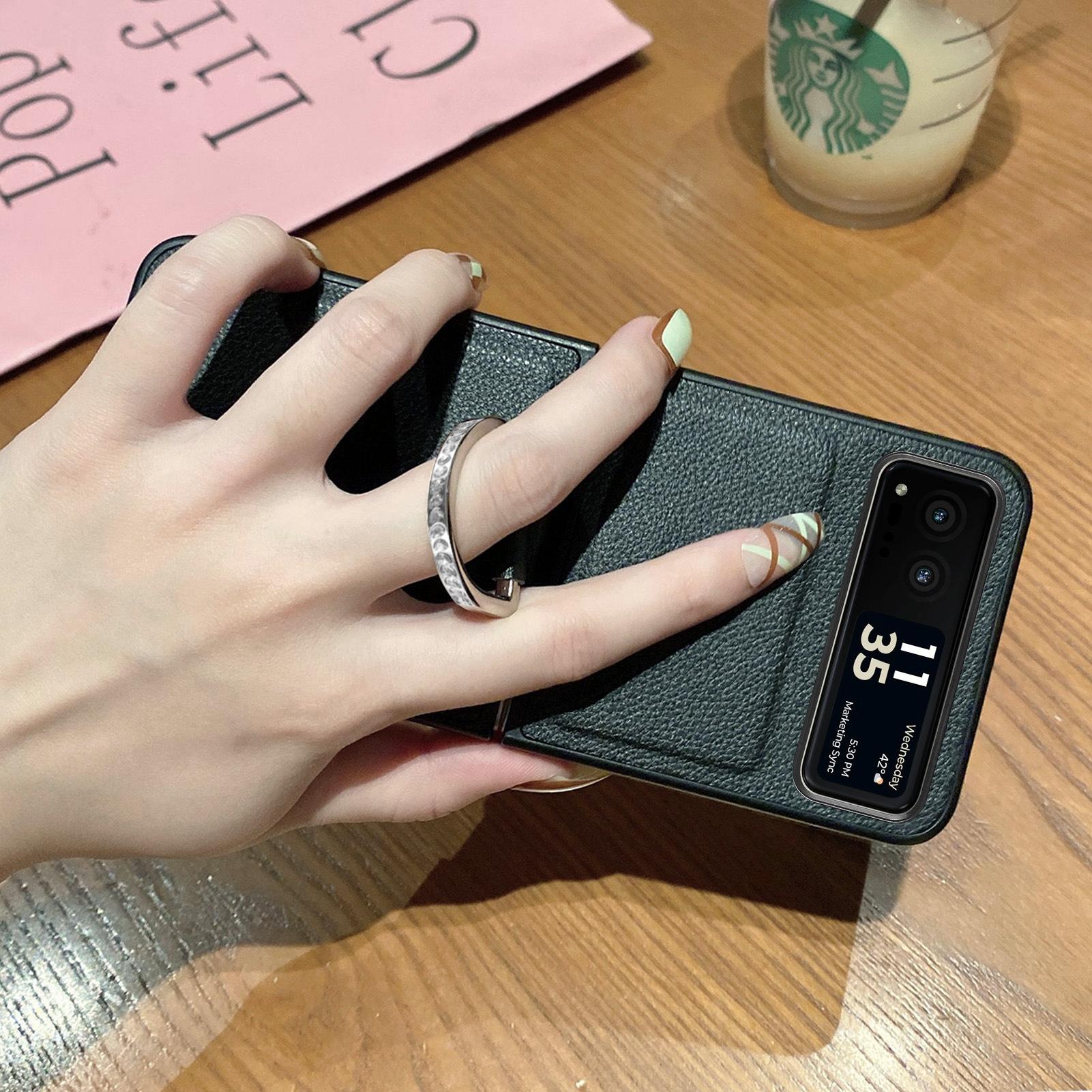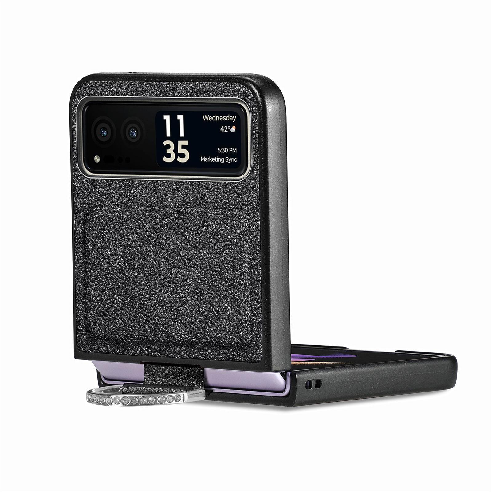 Funda para Moto Razr60 con diseño de lichi y anillo de dedo de cuero sintético, ultra plegable, con pantalla protectora.