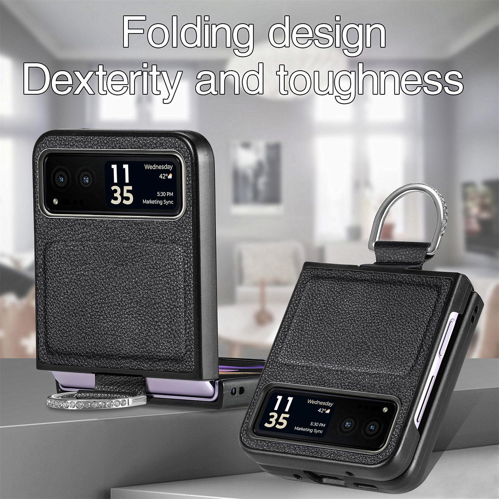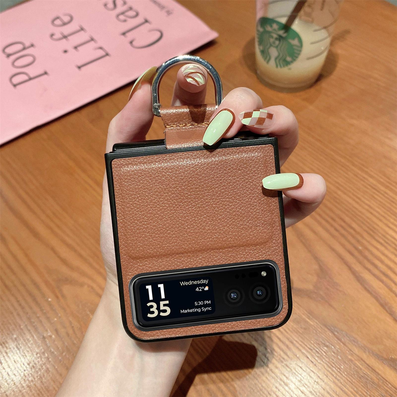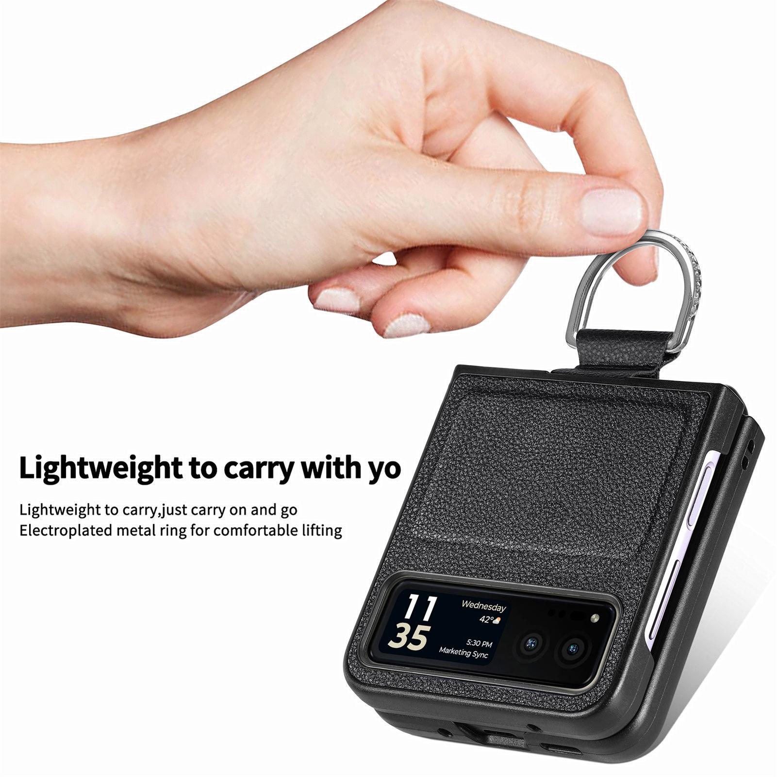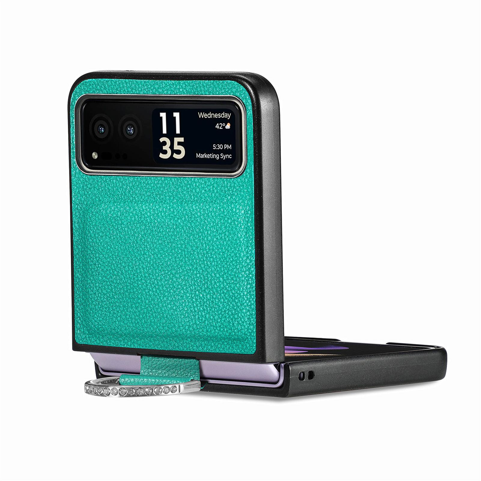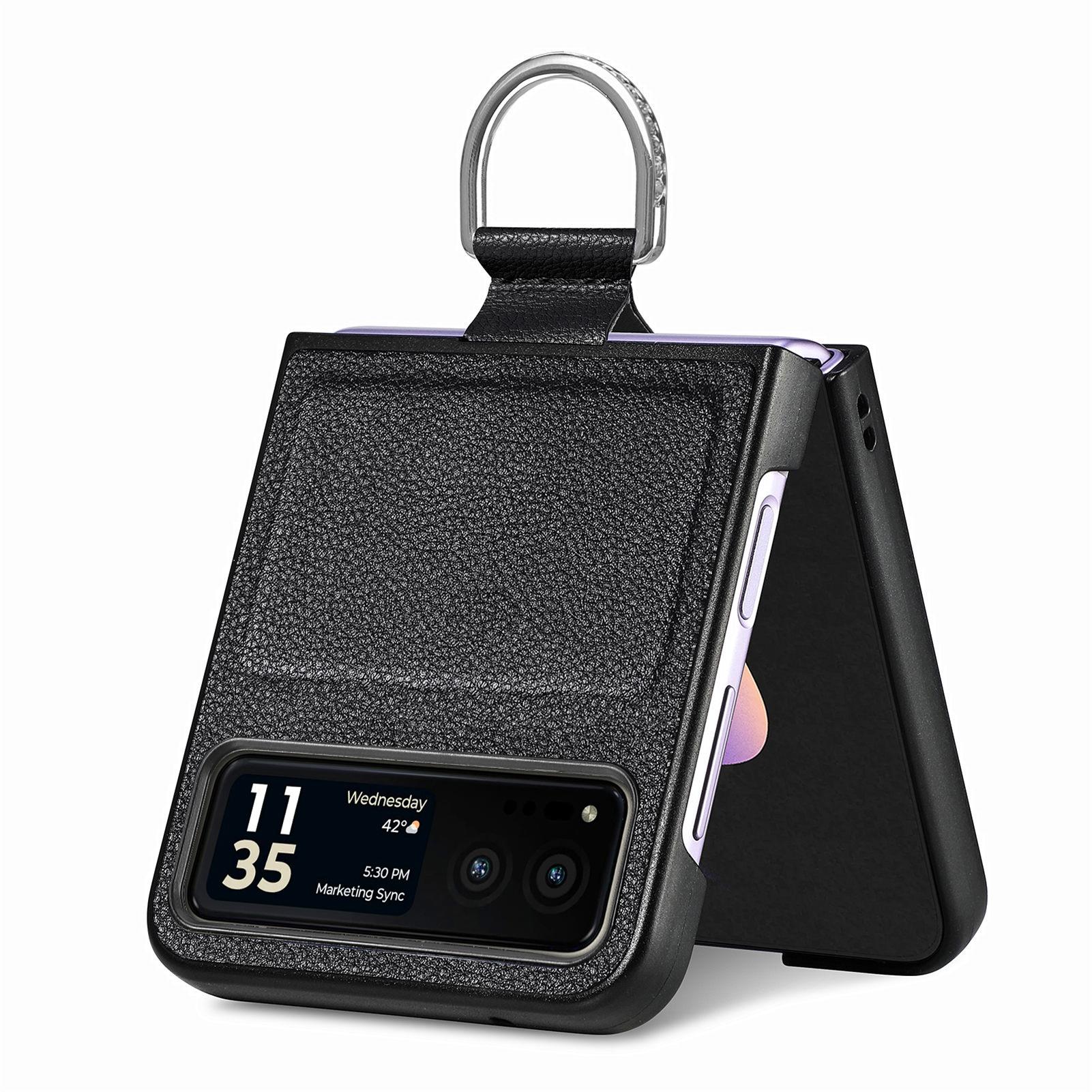 Funda para Moto Razr60 con diseño de lichi y anillo de dedo de cuero sintético, ultra plegable, con pantalla protectora.