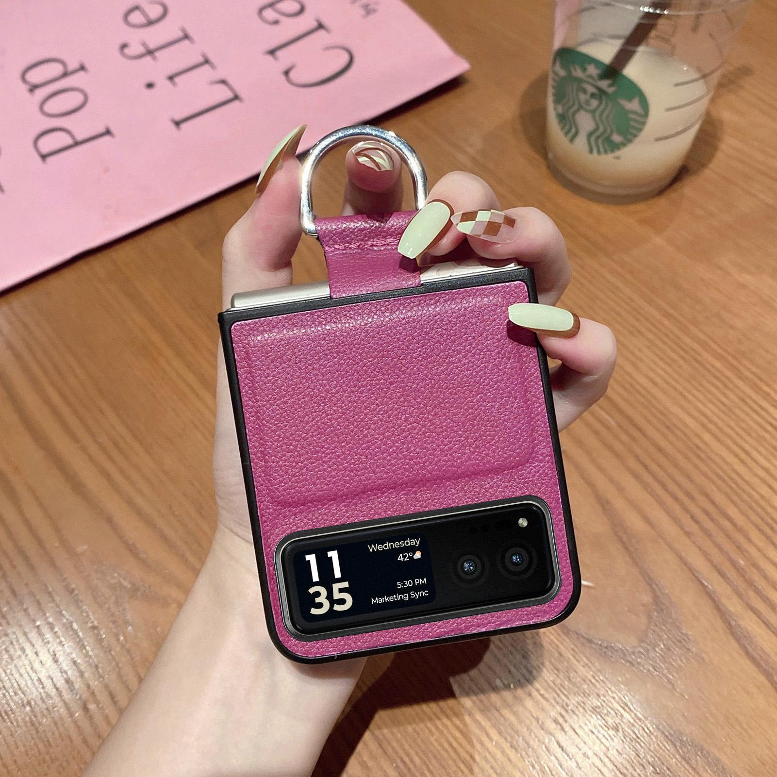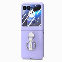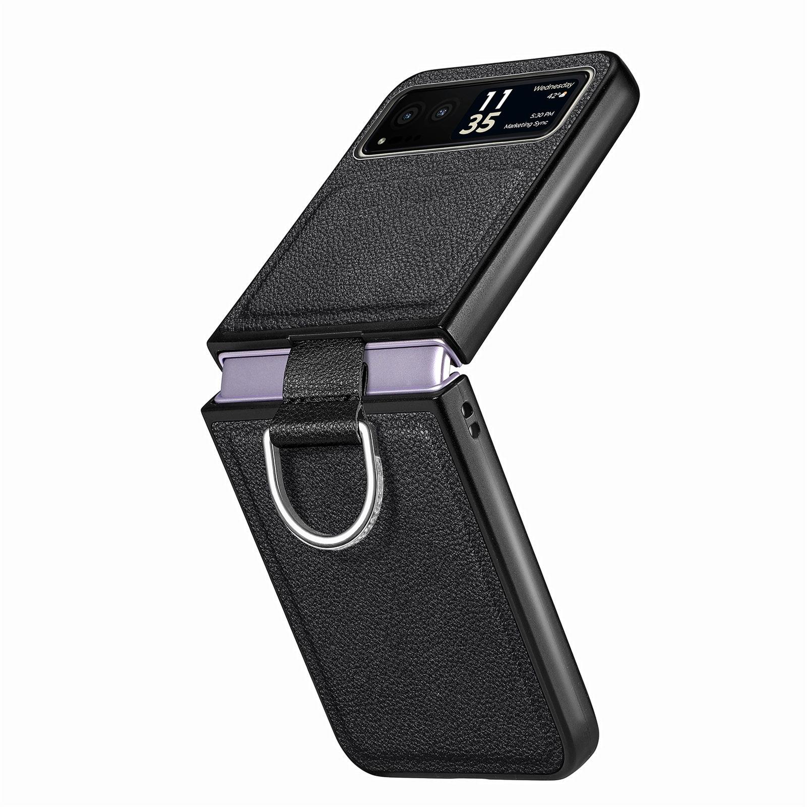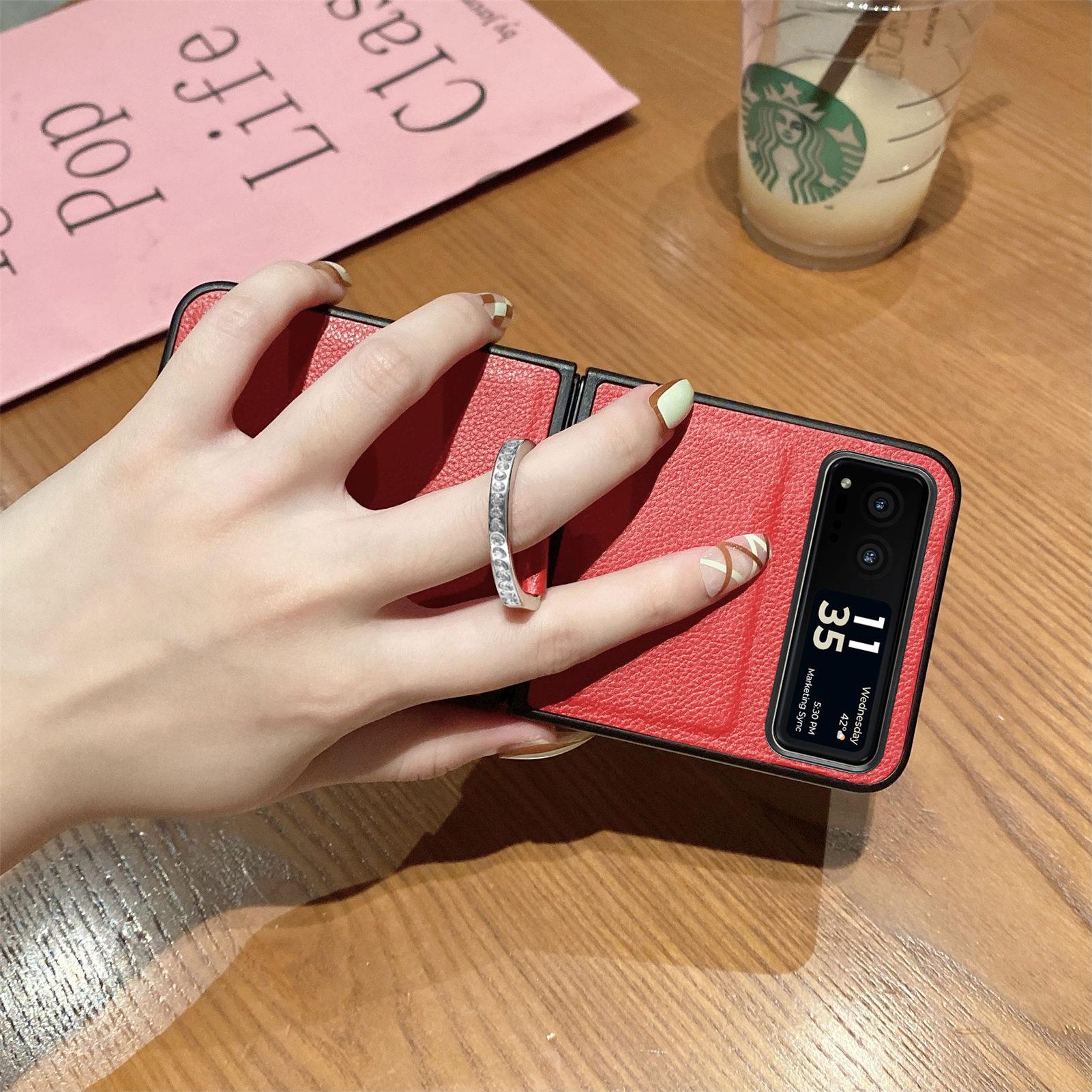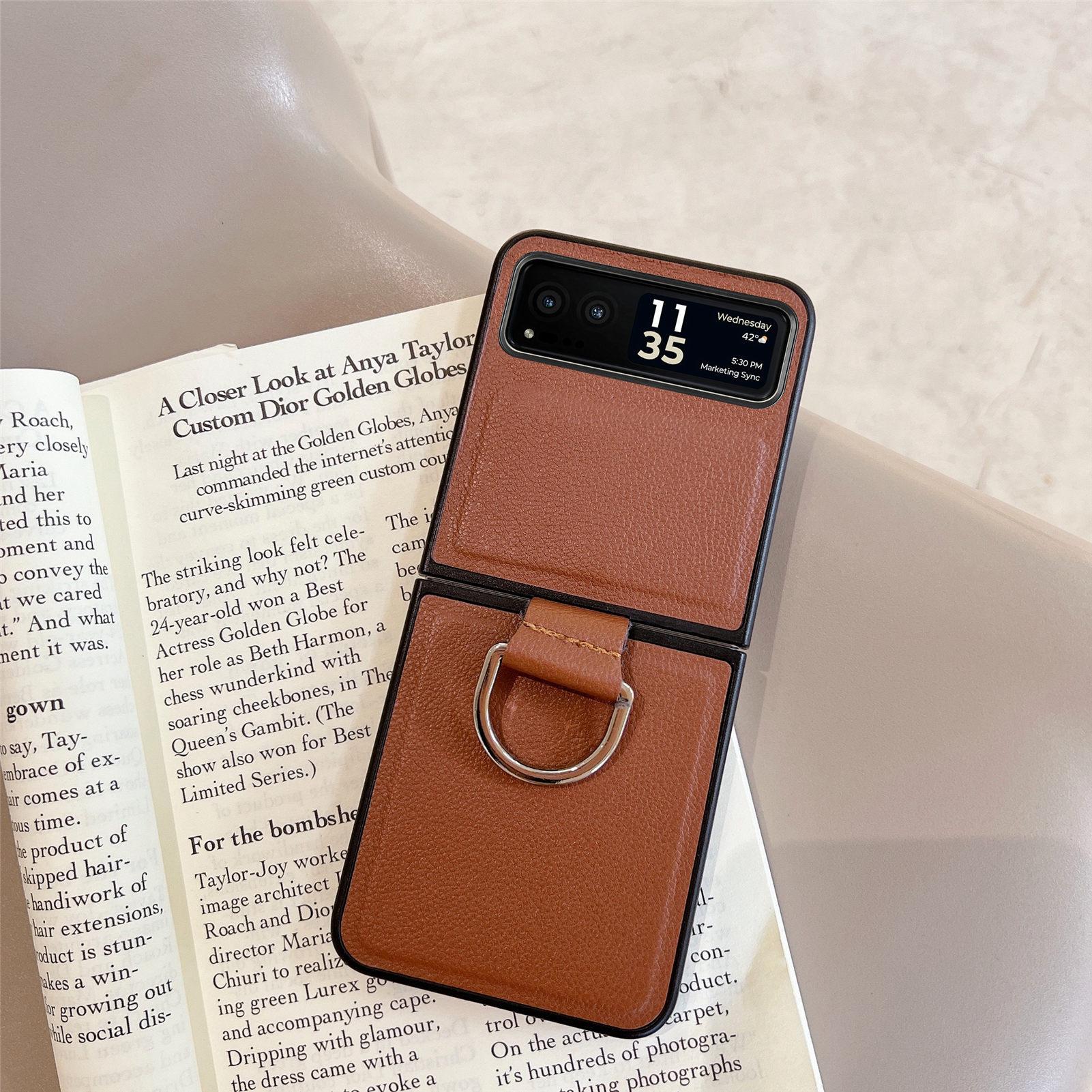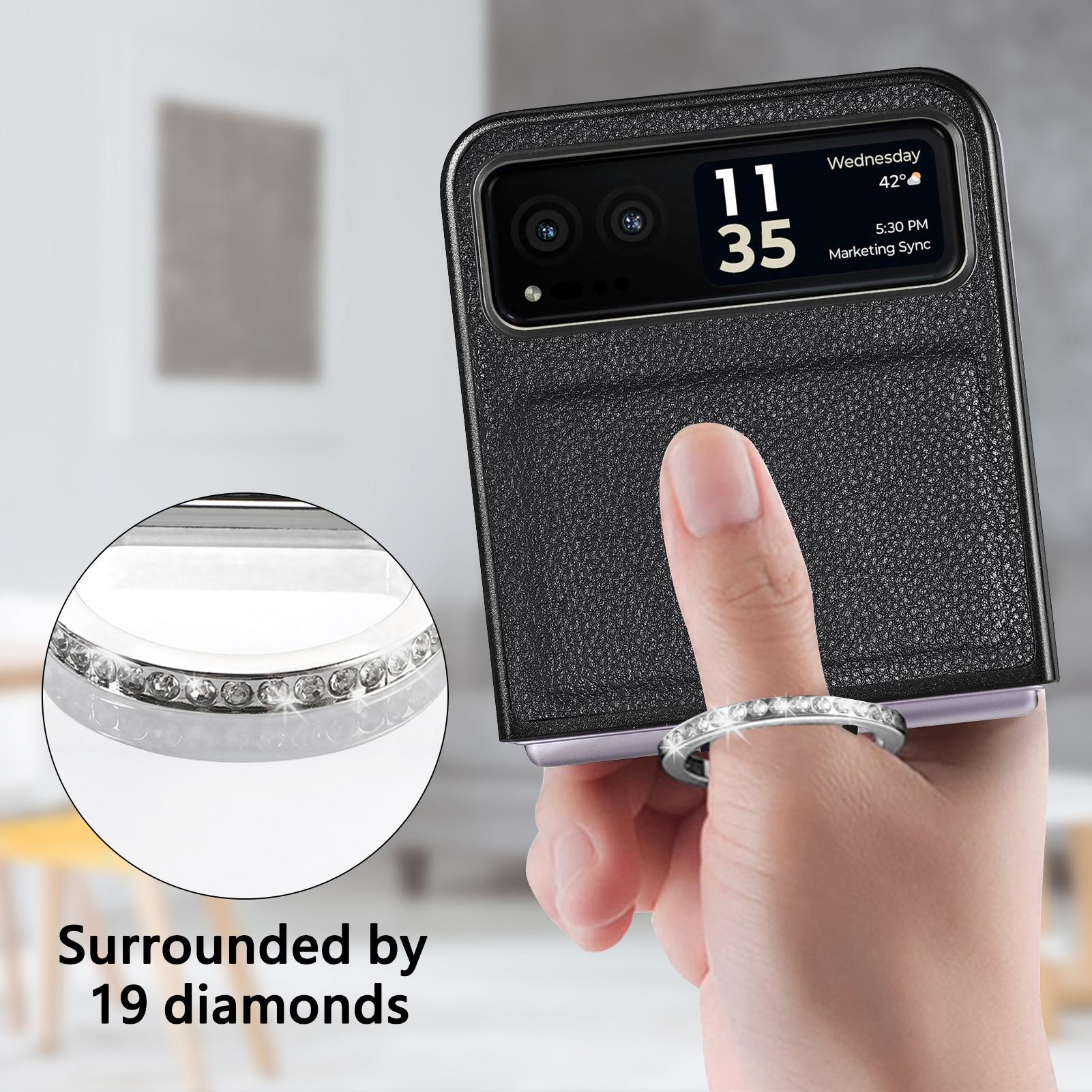 Funda para Moto Razr60 con diseño de lichi y anillo de dedo de cuero sintético, ultra plegable, con pantalla protectora.