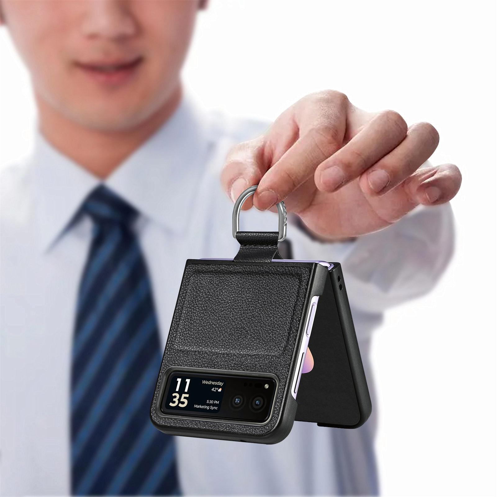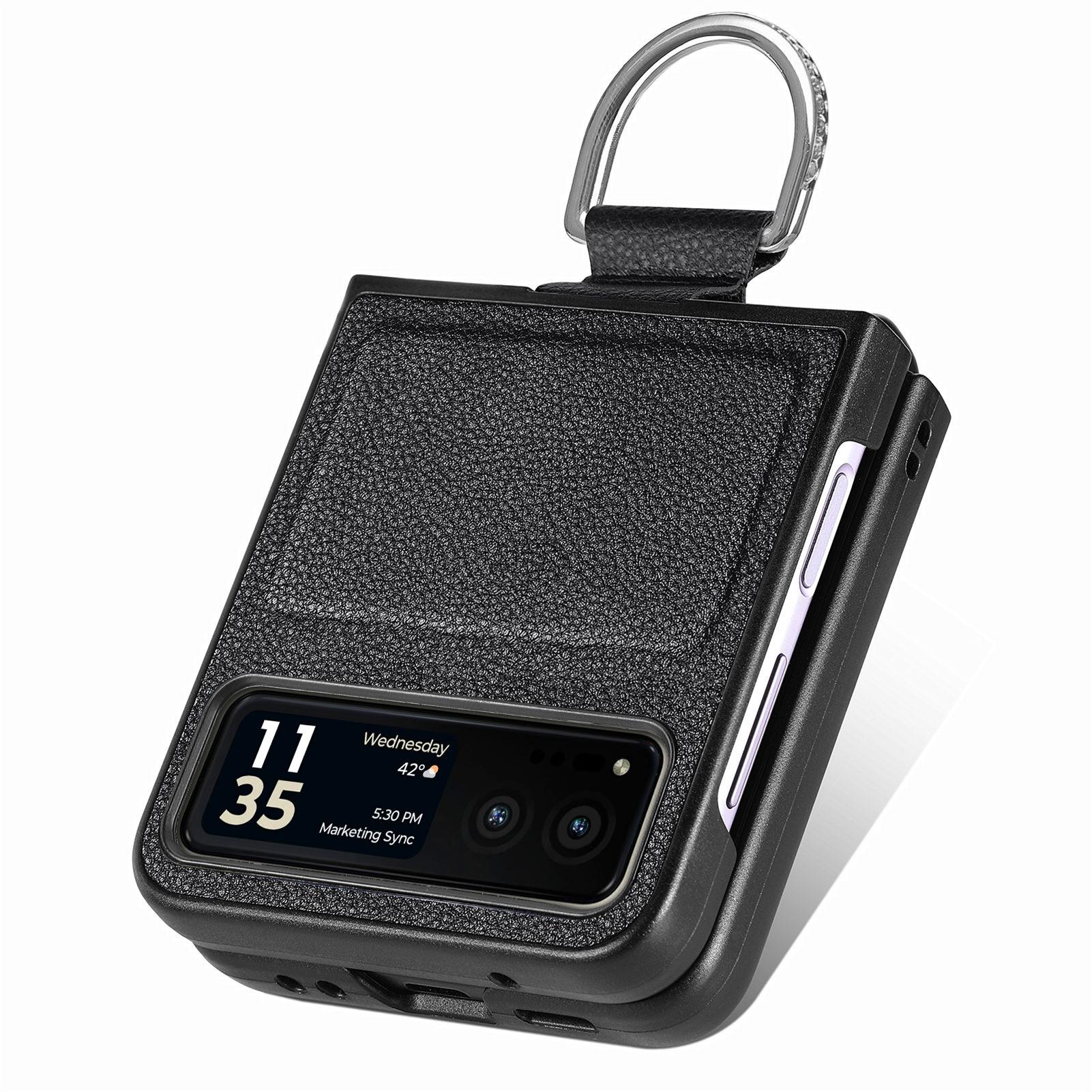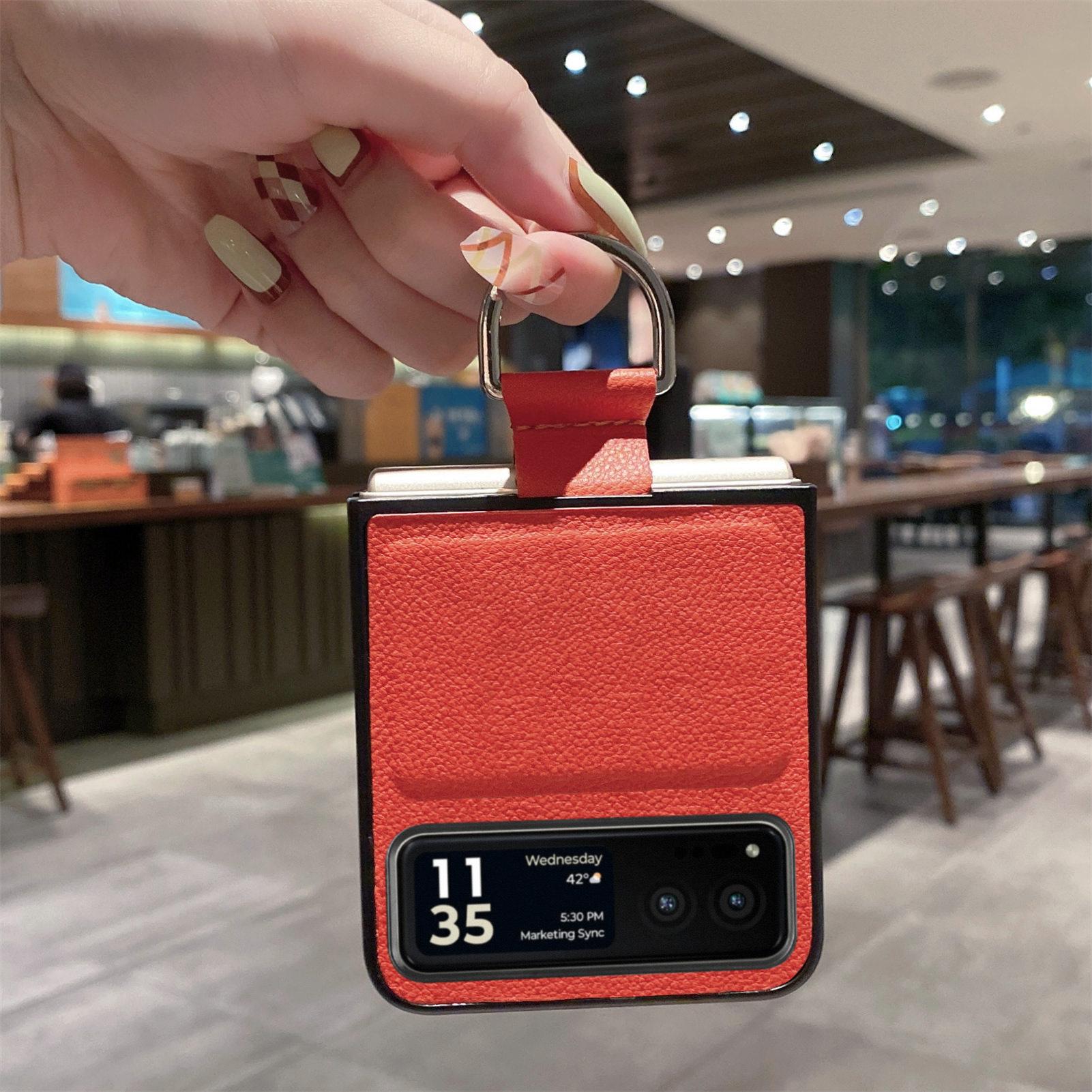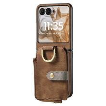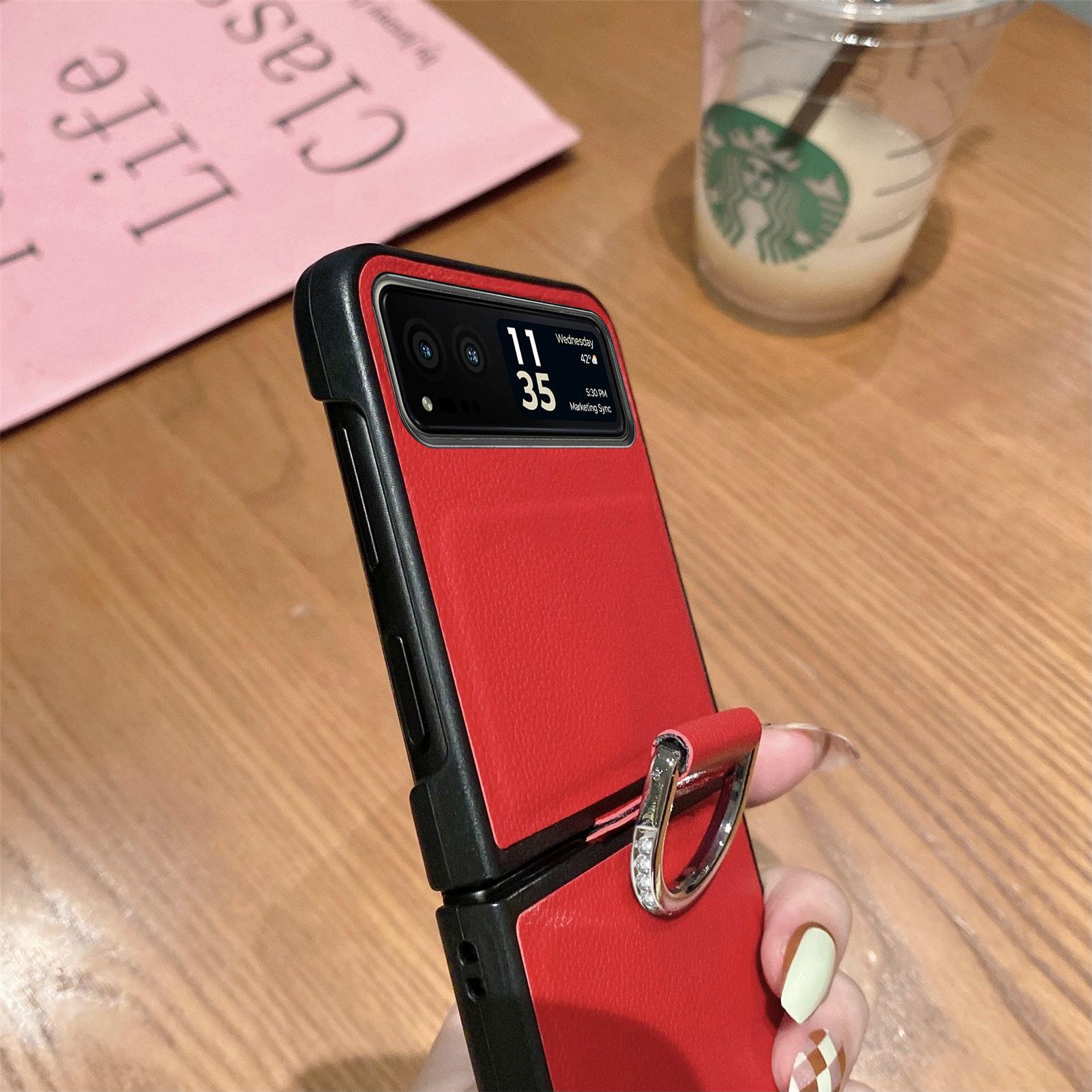 Funda para Moto Razr60 con diseño de lichi y anillo de dedo de cuero sintético, ultra plegable, con pantalla protectora.