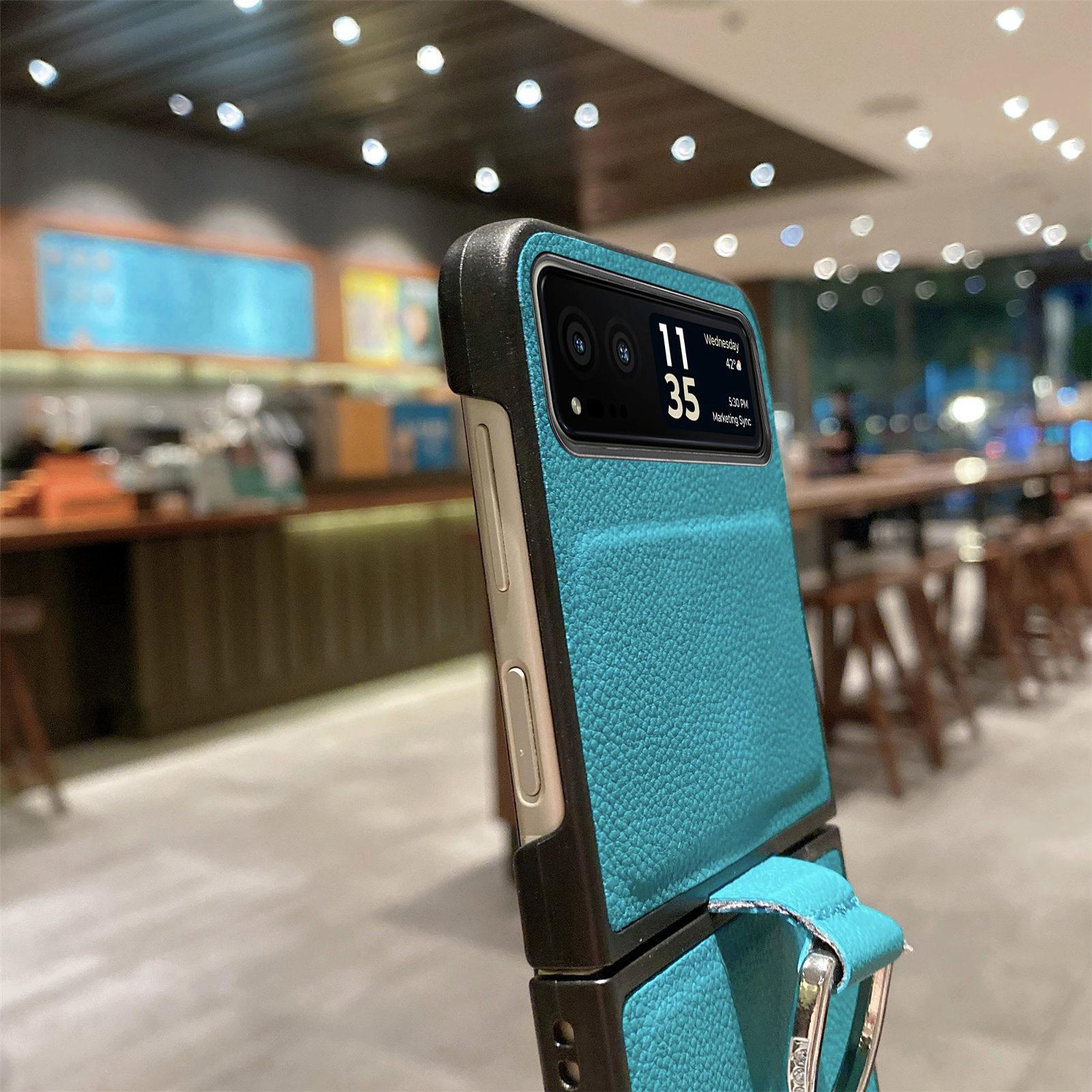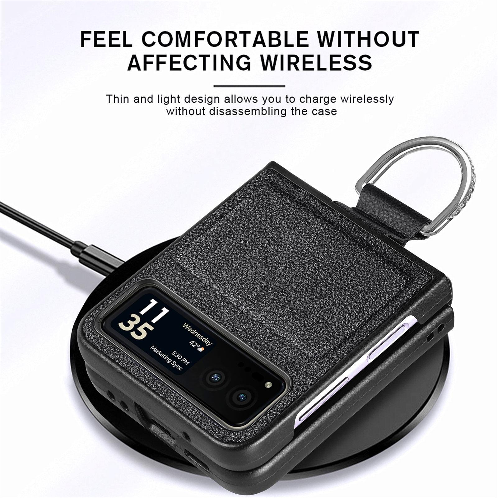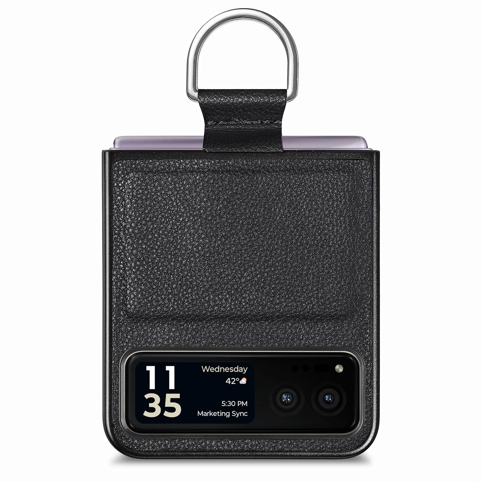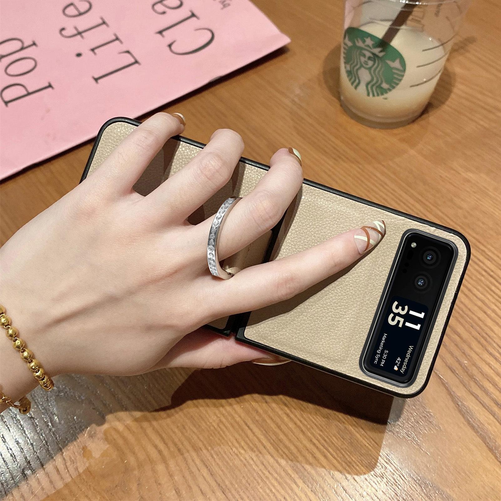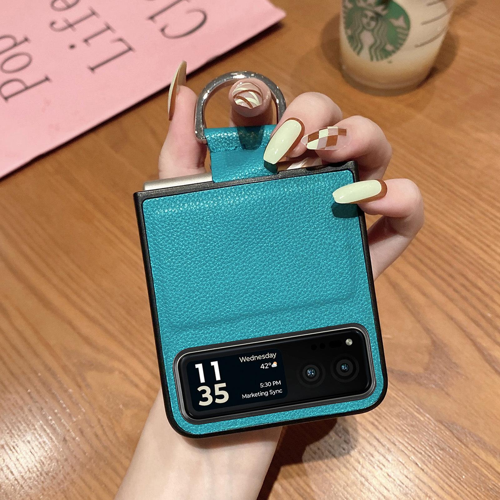 Funda para Moto Razr60 con diseño de lichi y anillo de dedo de cuero sintético, ultra plegable, con pantalla protectora.