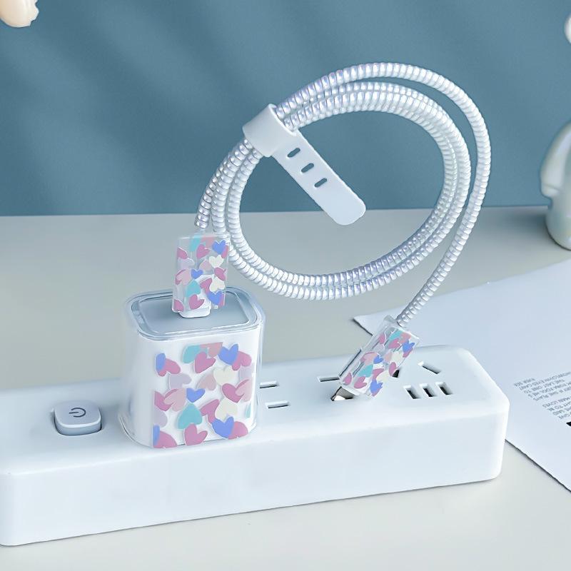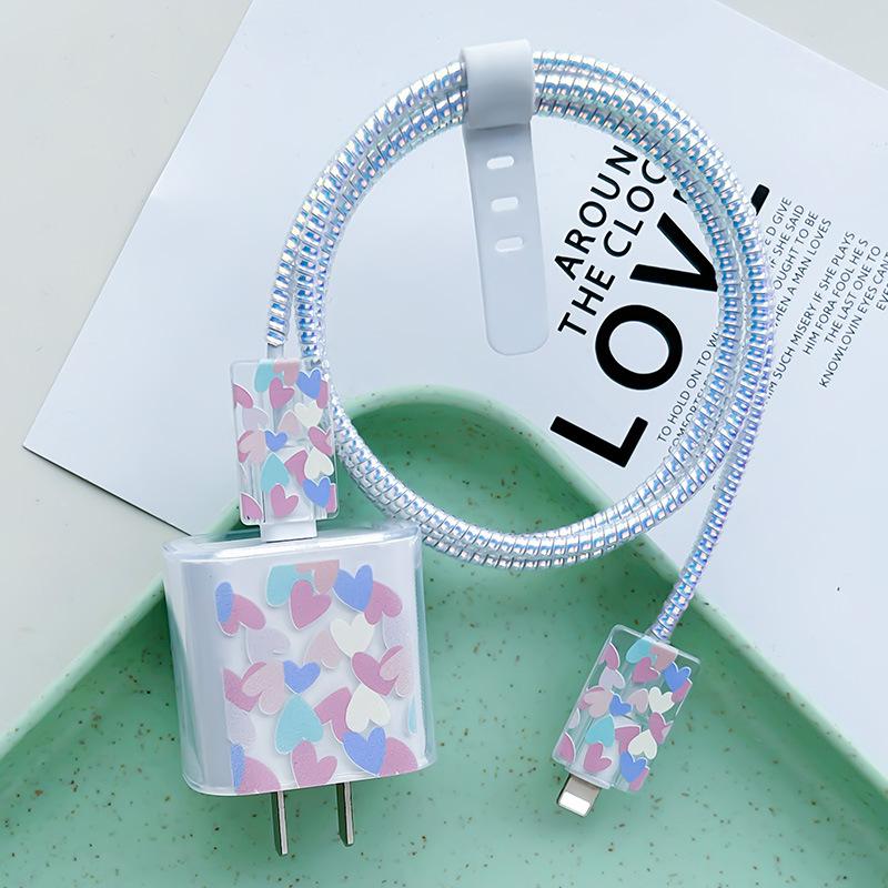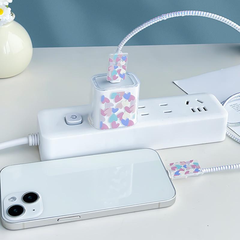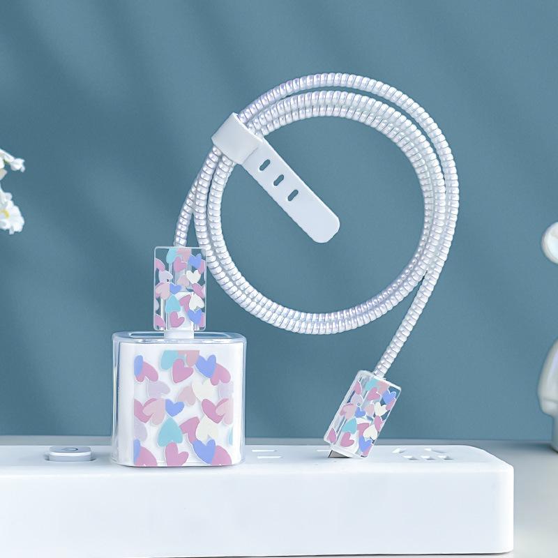 Adecuado para Cubierta Protectora de Cargador Apple 20/18W Cabezal de Carga Cable de Datos Transparente Clip para Cable Mordedor de Cable Dispositivo Huella Dactilar Corazón