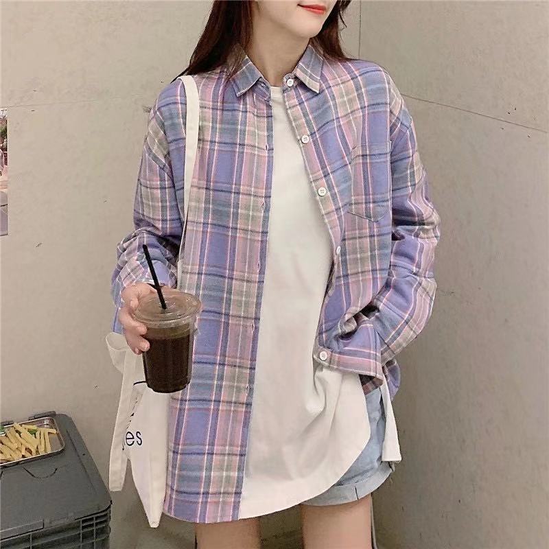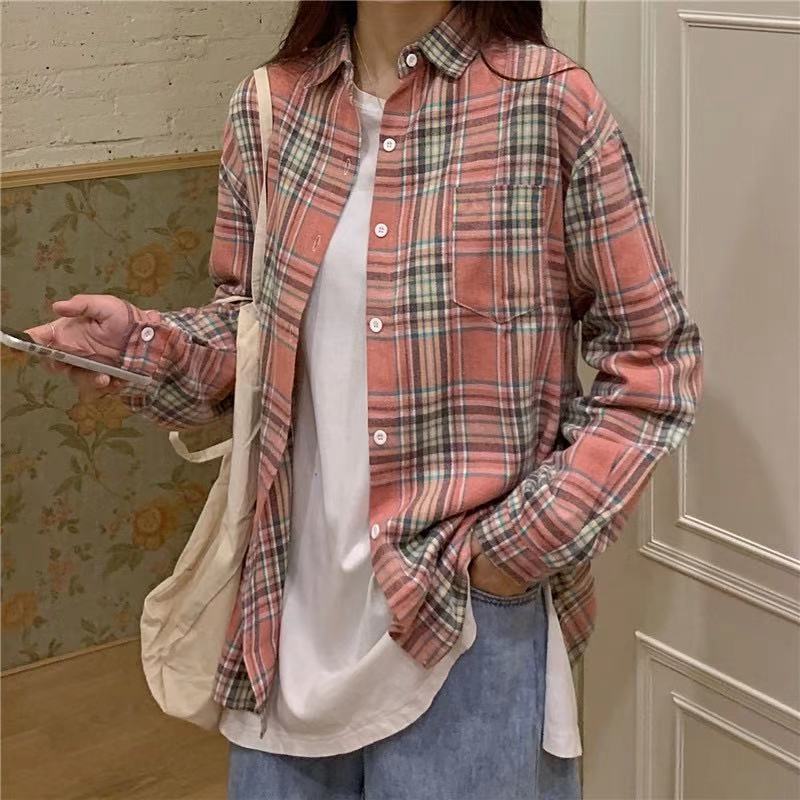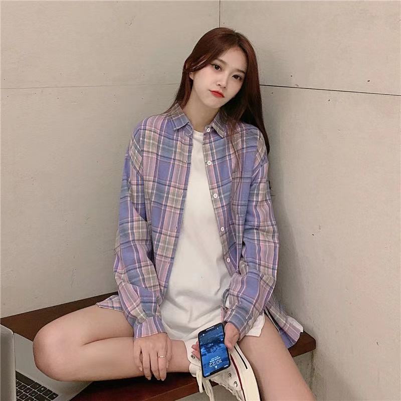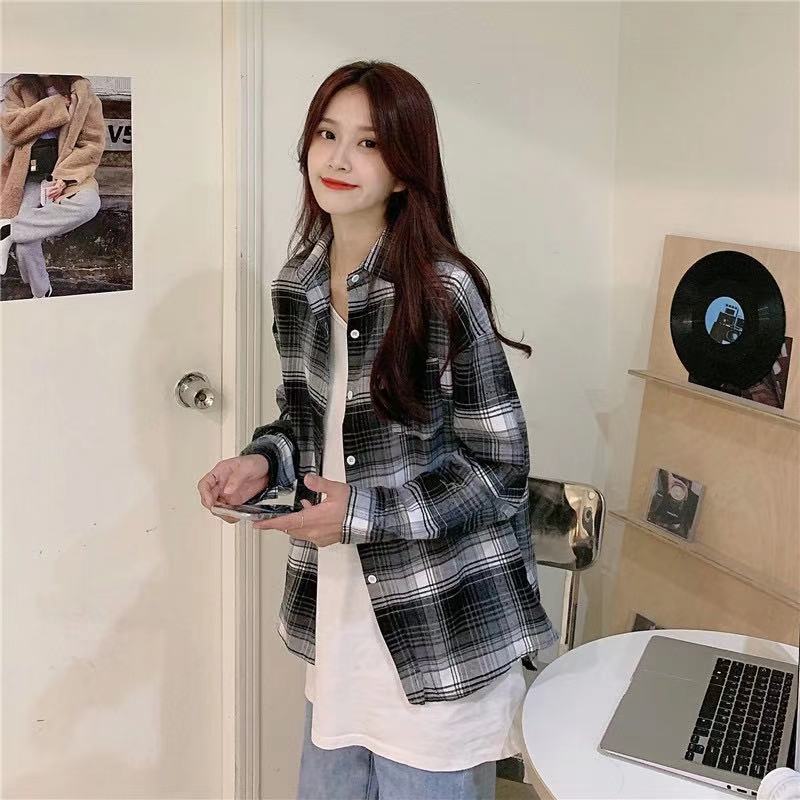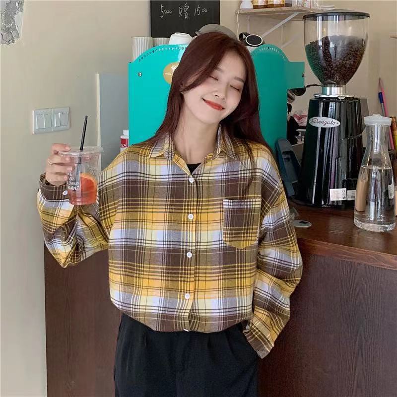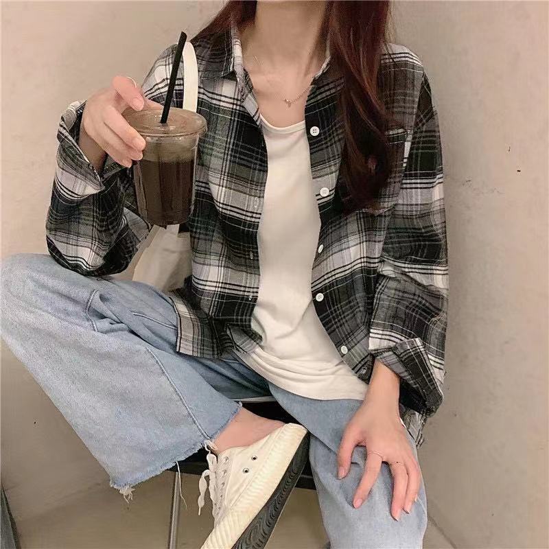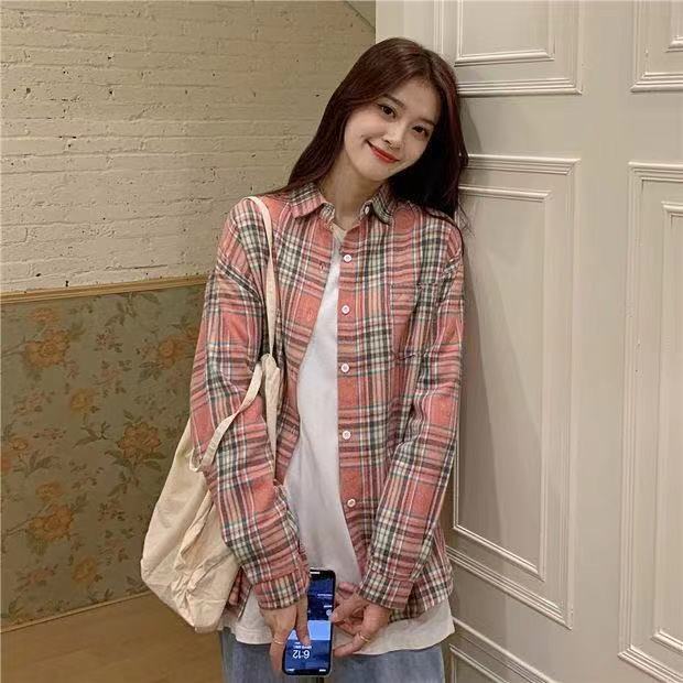 Camisa a cuadros de estilo coreano 2020, camisa de manga larga para mujer, diseño de nicho con sentido, ropa exterior versátil para otoño
