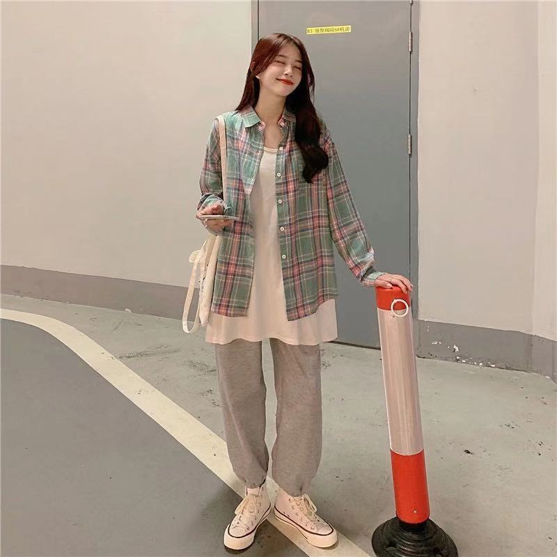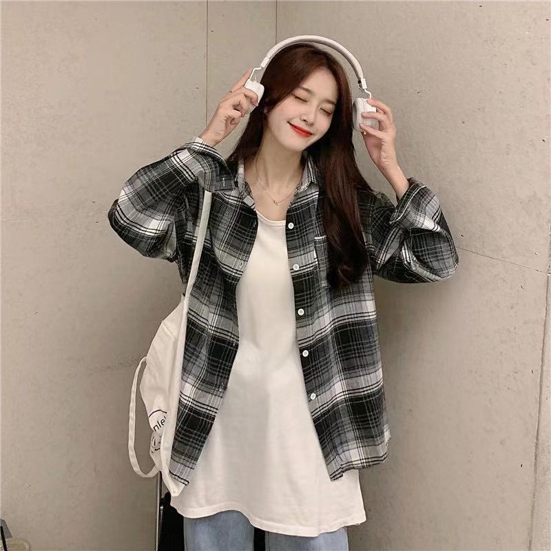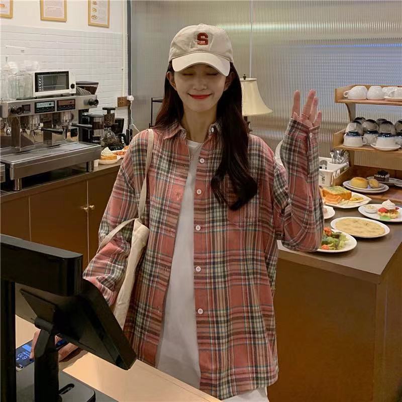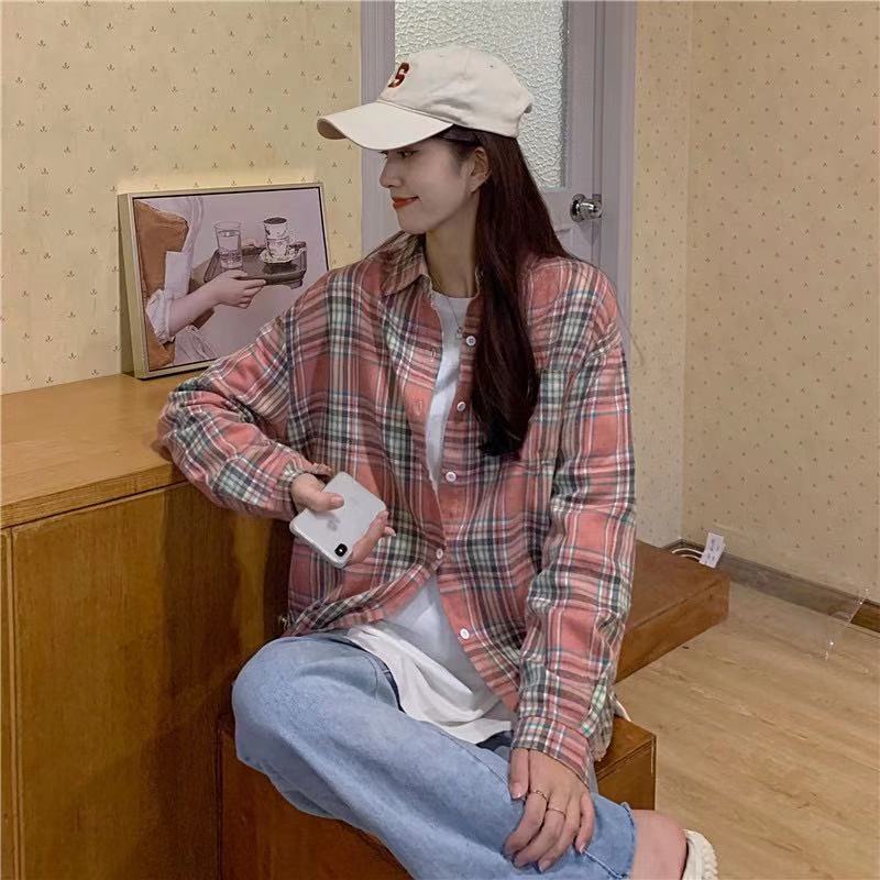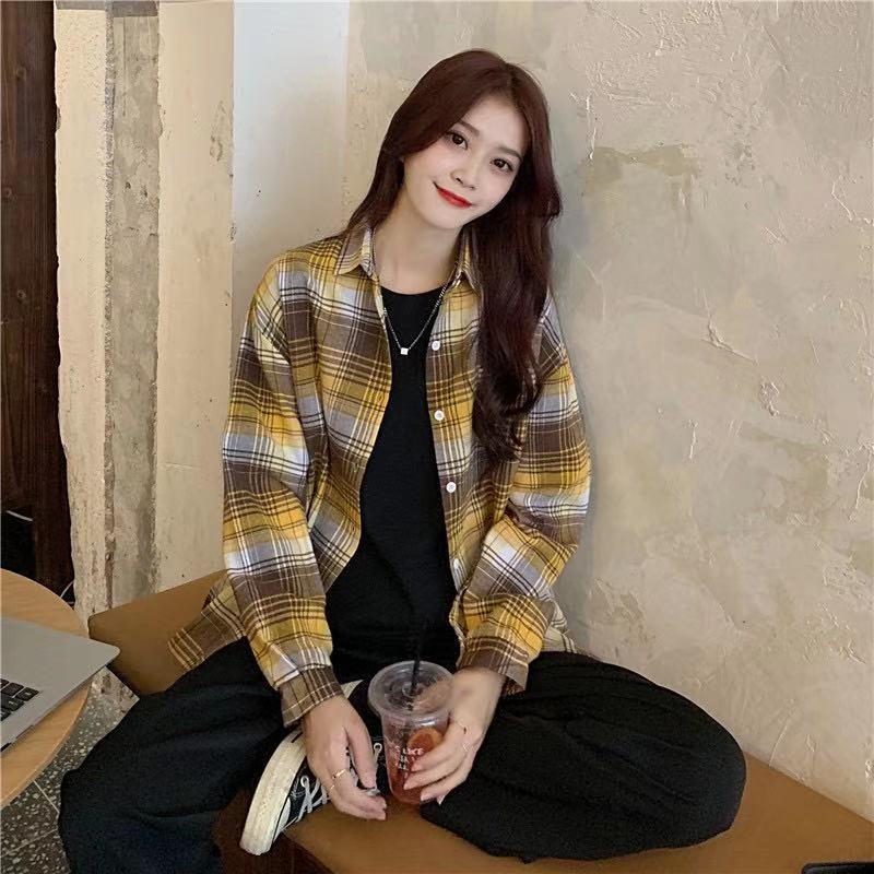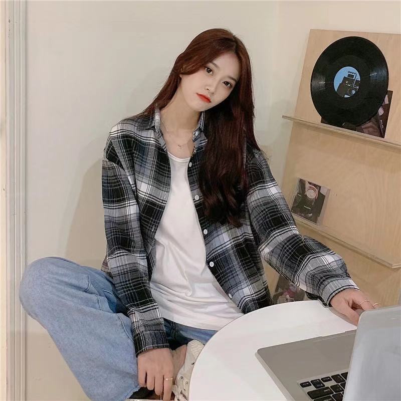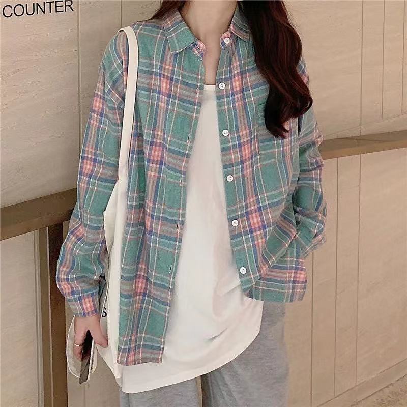 Camisa a cuadros de estilo coreano 2020, camisa de manga larga para mujer, diseño de nicho con sentido, ropa exterior versátil para otoño