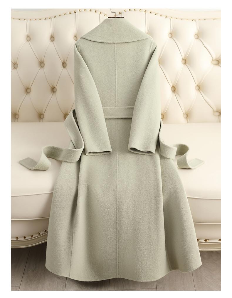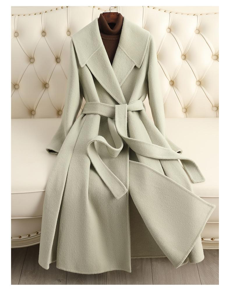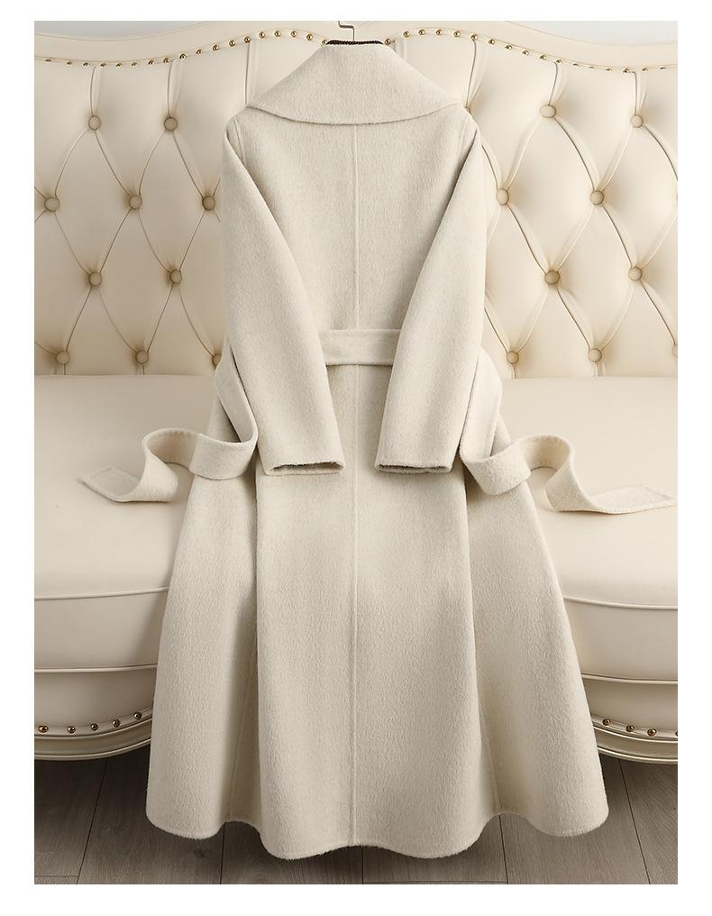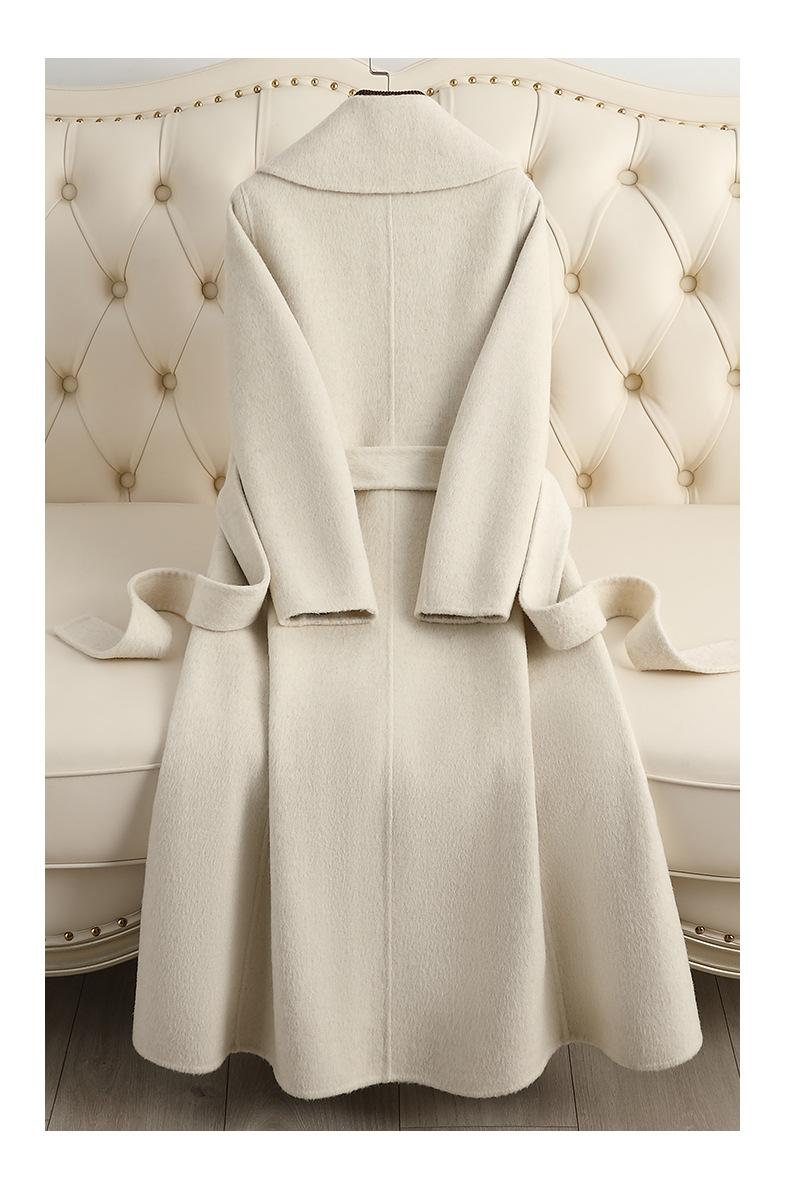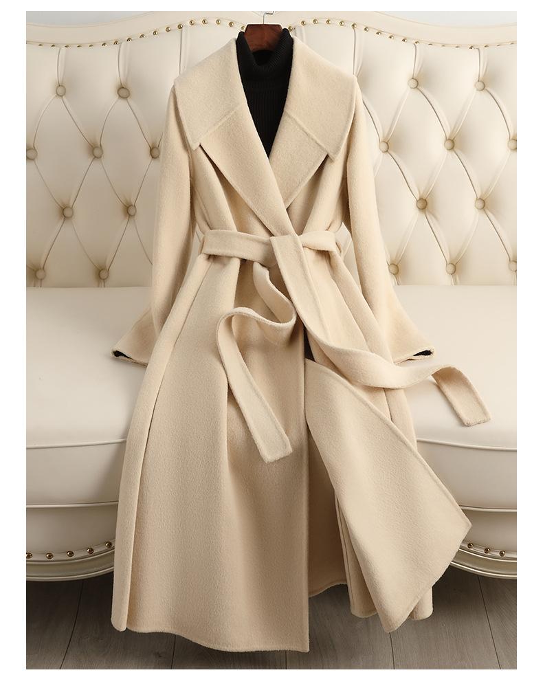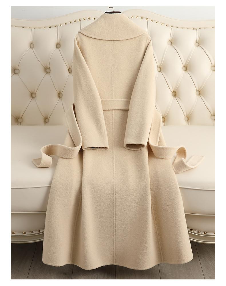 Abrigo de Cachemira de Doble Cara para Mujer de Largo Medio Sobre la Rodilla 2025 Otoño e Invierno Nuevo Abrigo de Lana Color Caramelo Engrosado y de Alta Gama