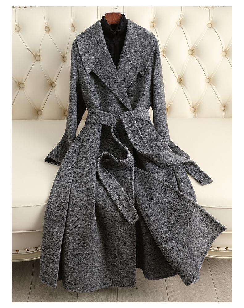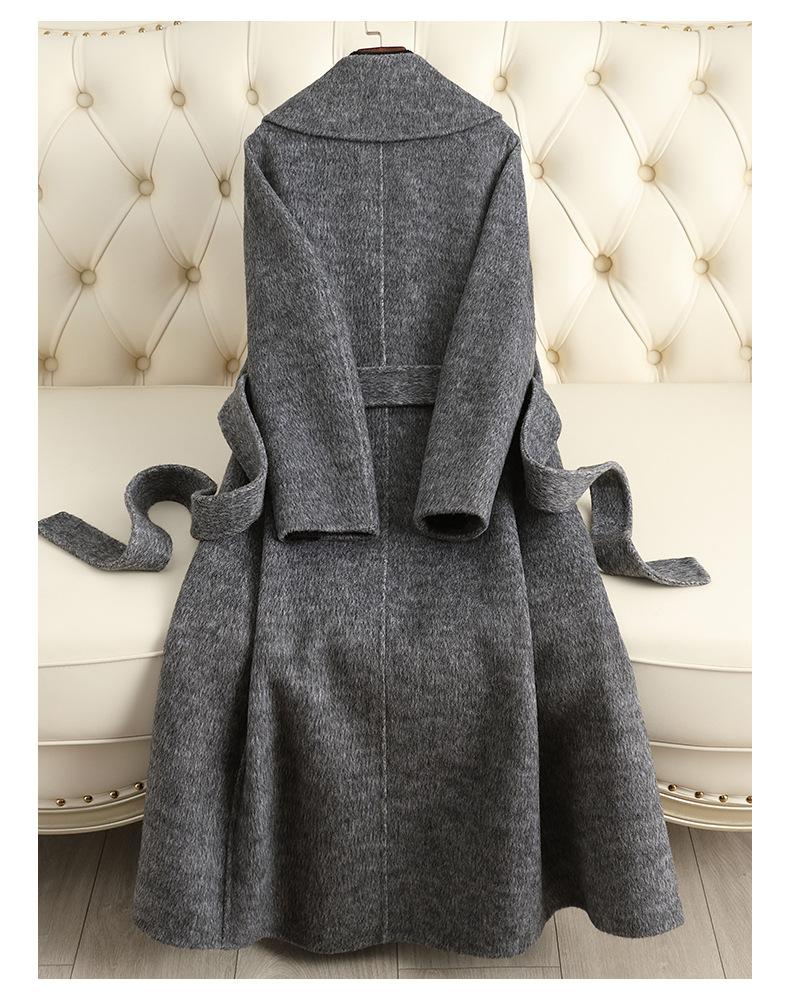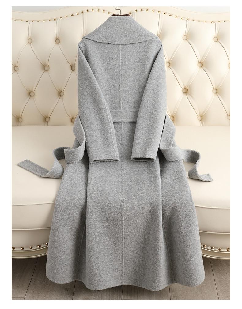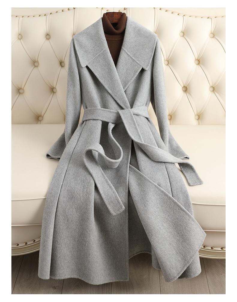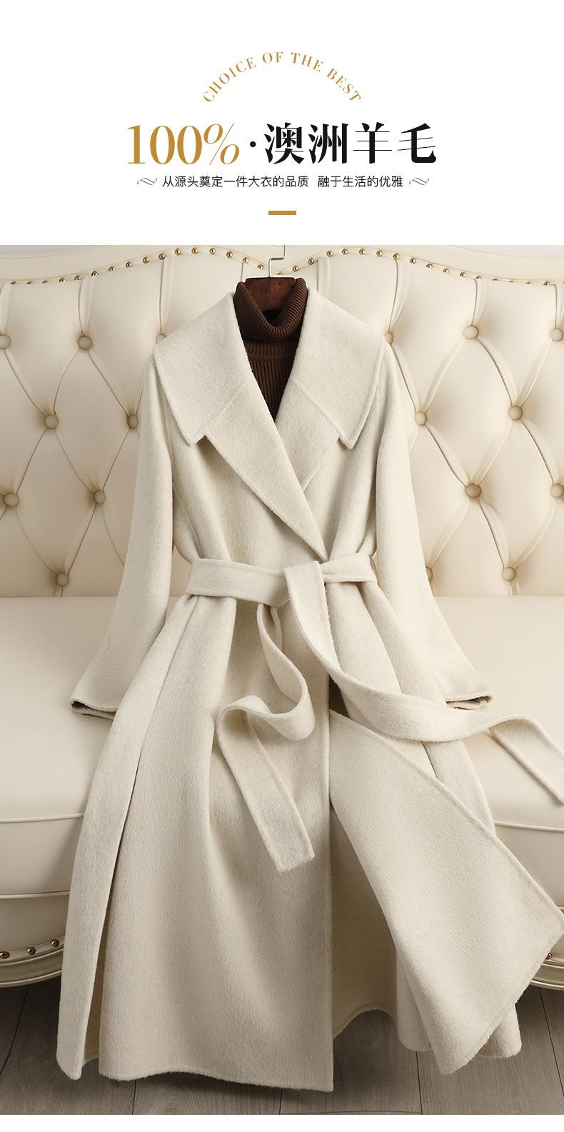 Abrigo de Cachemira de Doble Cara para Mujer de Largo Medio Sobre la Rodilla 2025 Otoño e Invierno Nuevo Abrigo de Lana Color Caramelo Engrosado y de Alta Gama