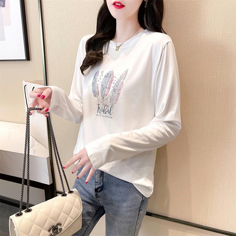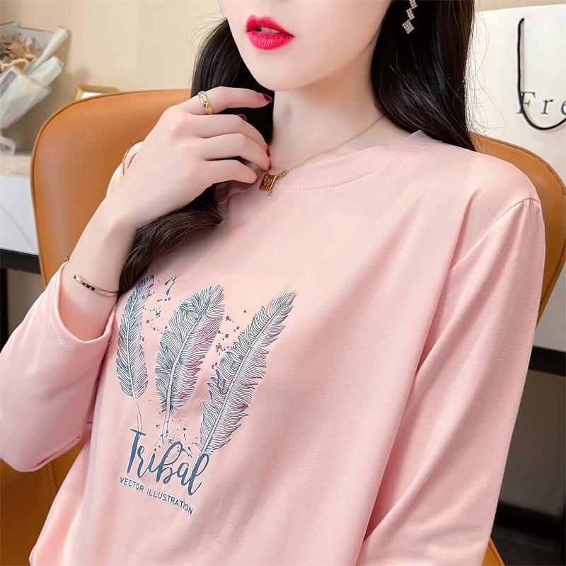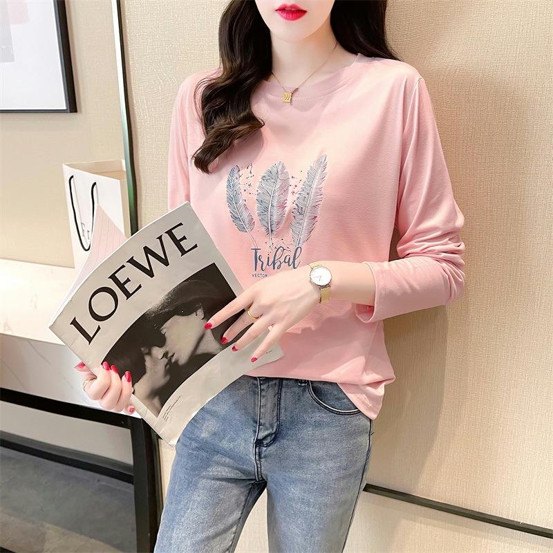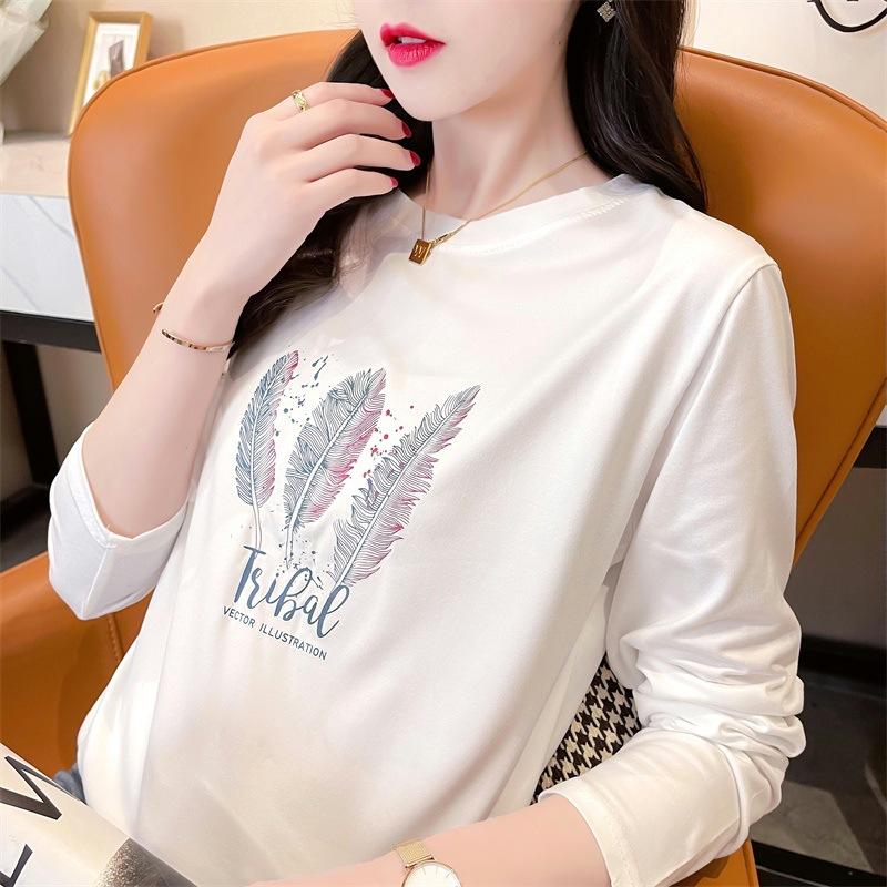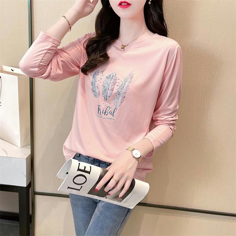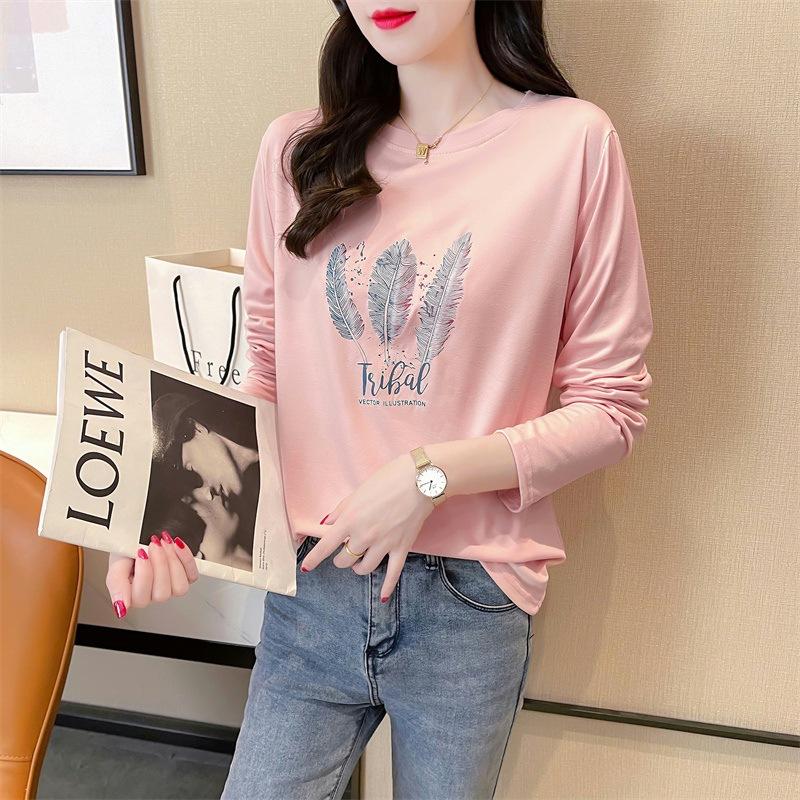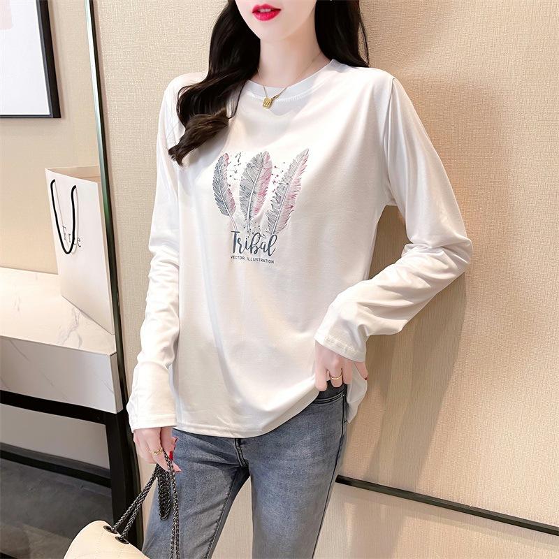 Camiseta de manga larga coreana para estudiantes de otoño e invierno de 2021, camiseta holgada con estampado de cuello redondo y manga larga para mujer