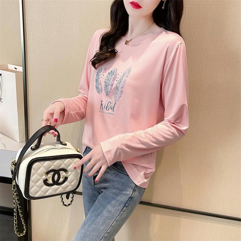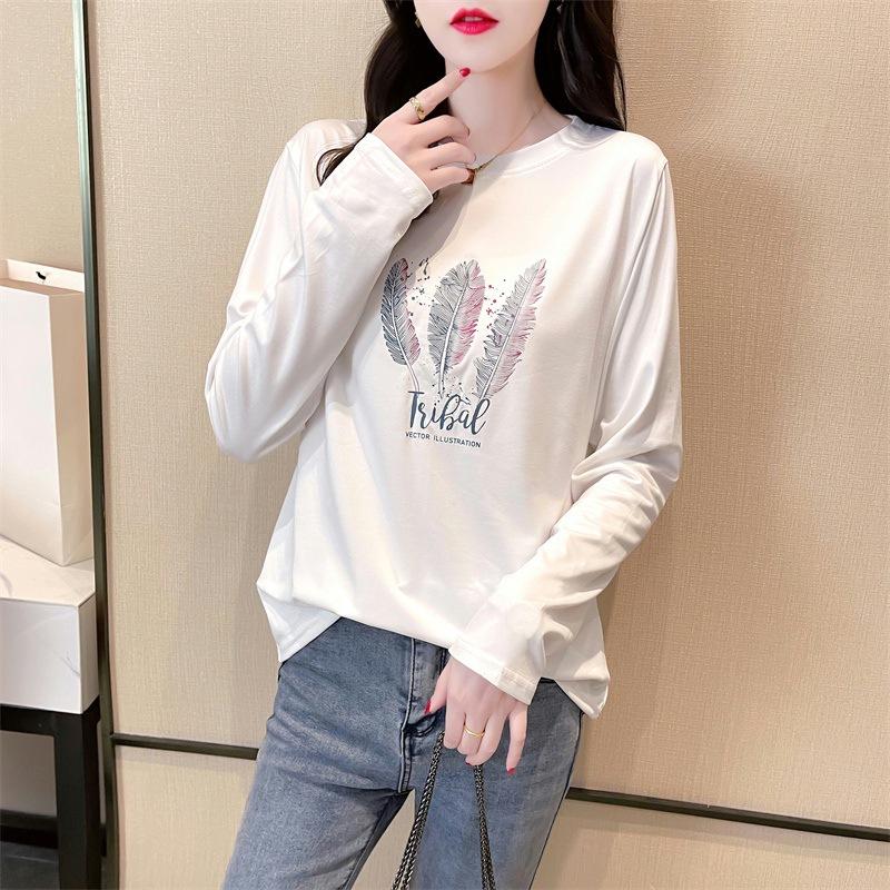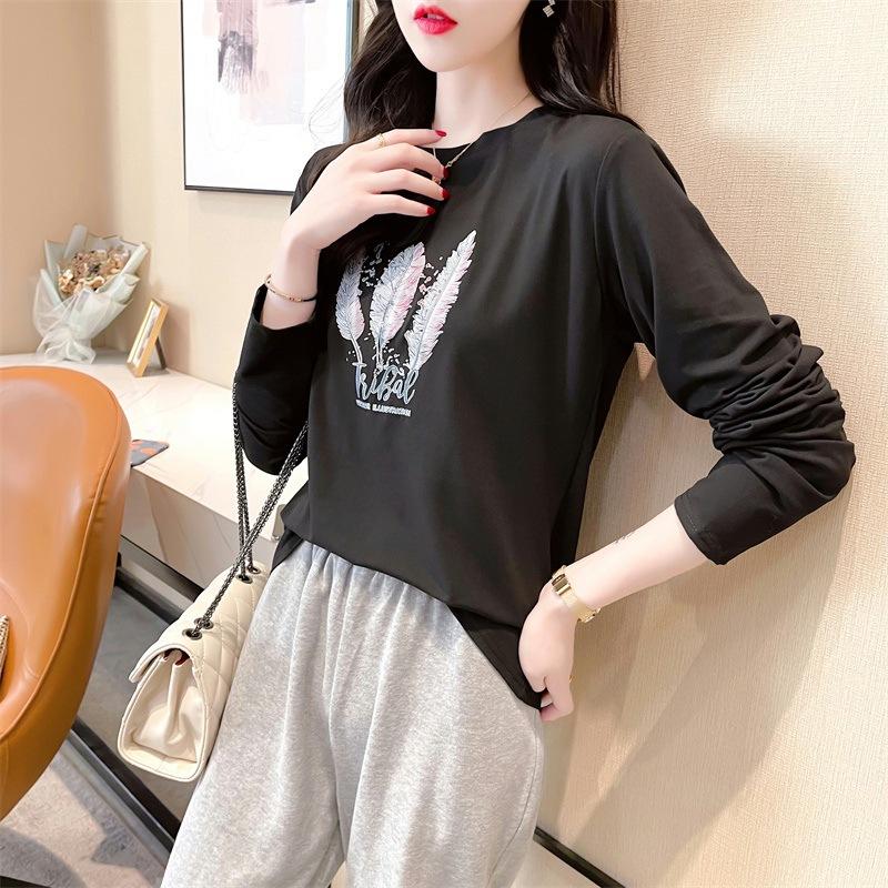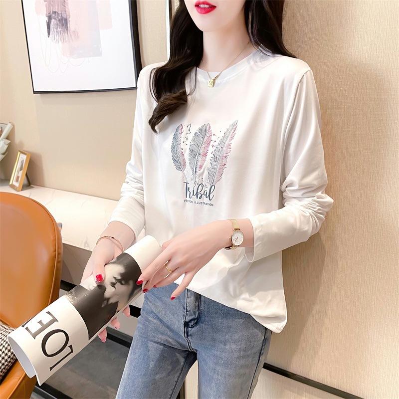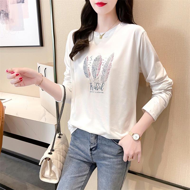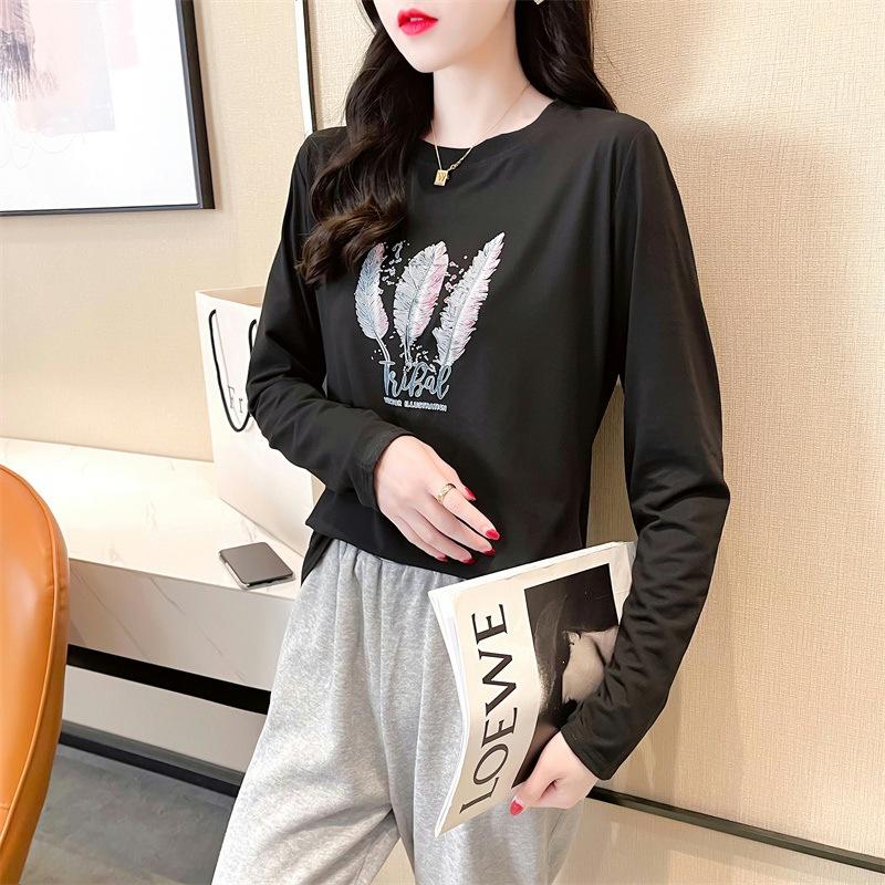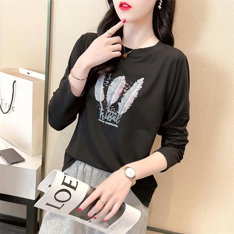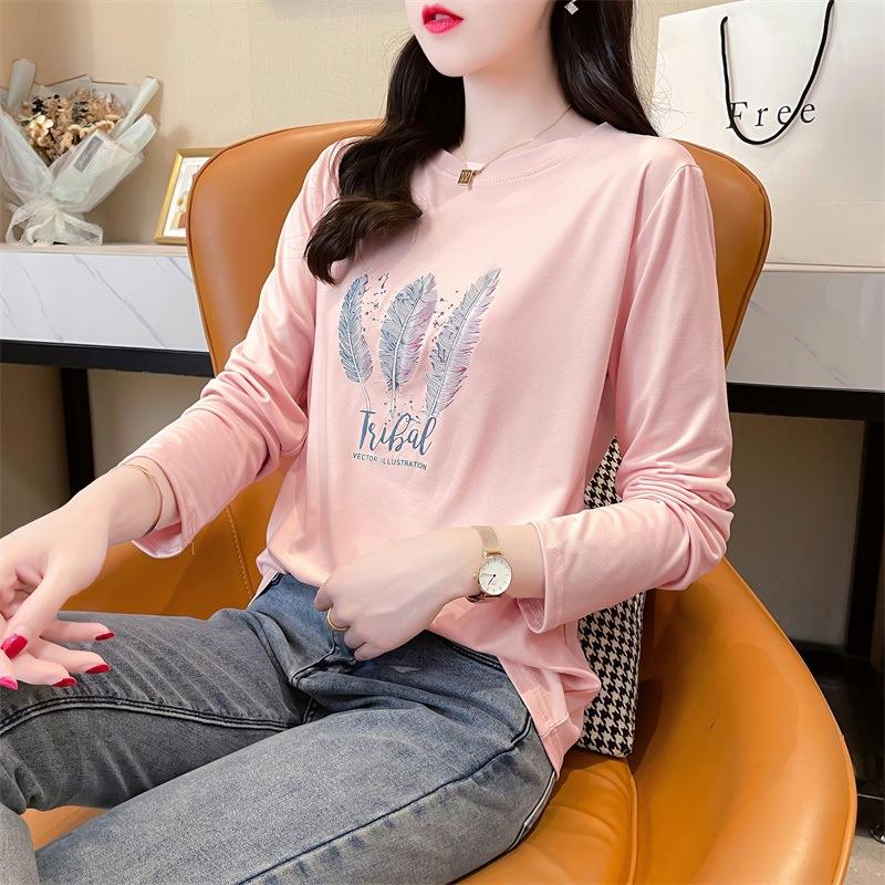 Camiseta de manga larga coreana para estudiantes de otoño e invierno de 2021, camiseta holgada con estampado de cuello redondo y manga larga para mujer