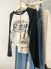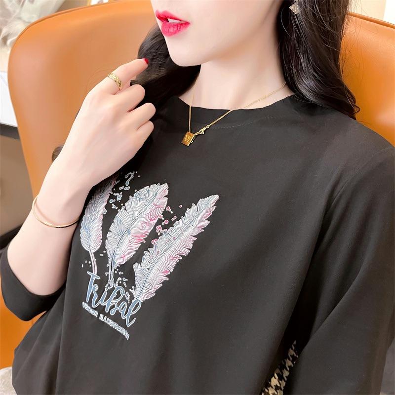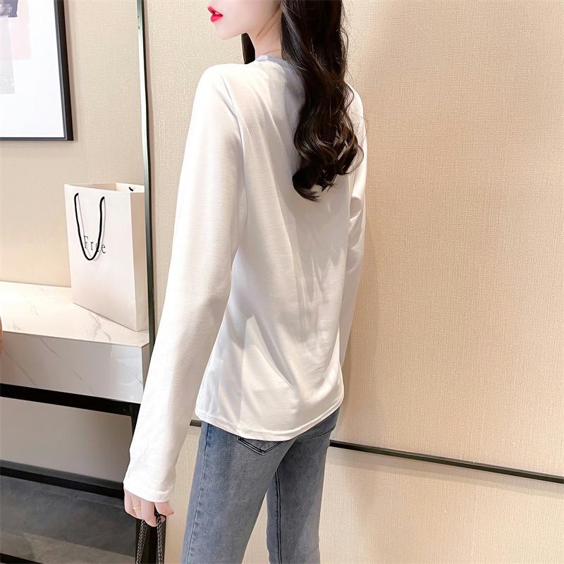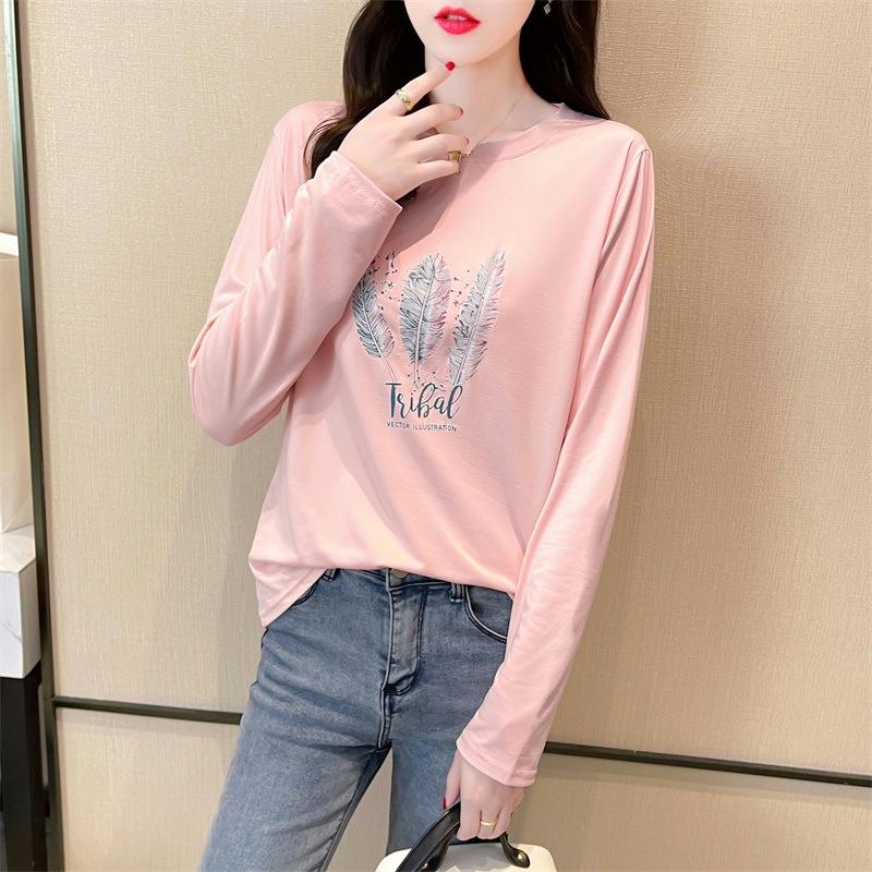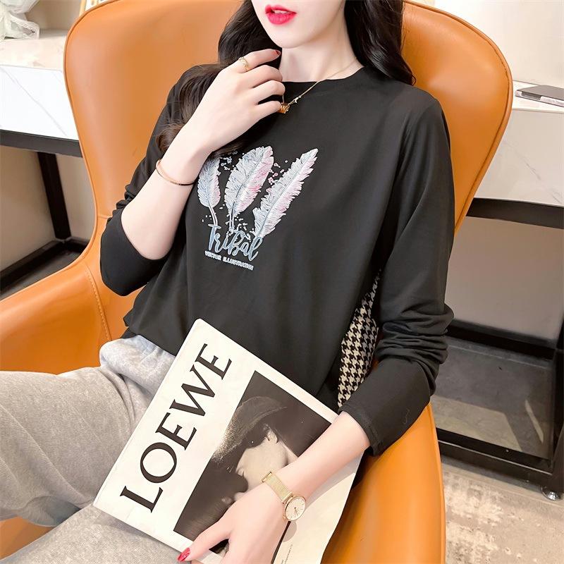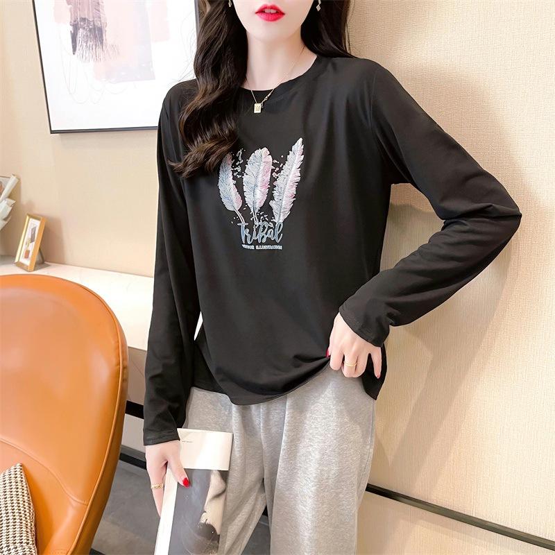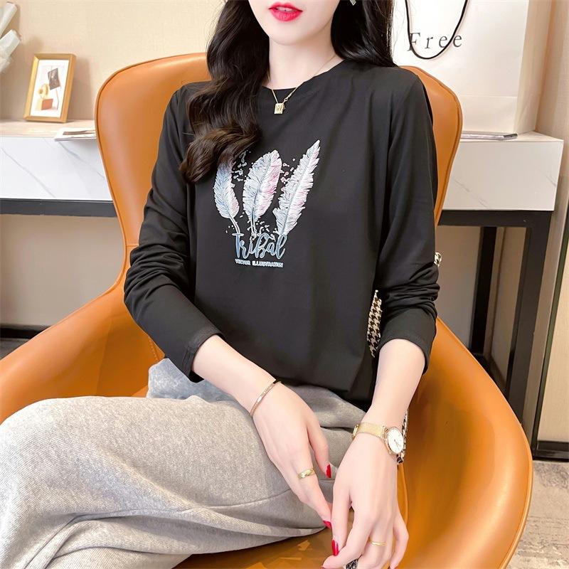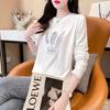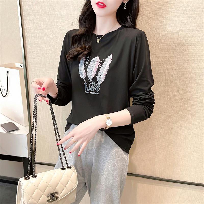 Camiseta de manga larga coreana para estudiantes de otoño e invierno de 2021, camiseta holgada con estampado de cuello redondo y manga larga para mujer