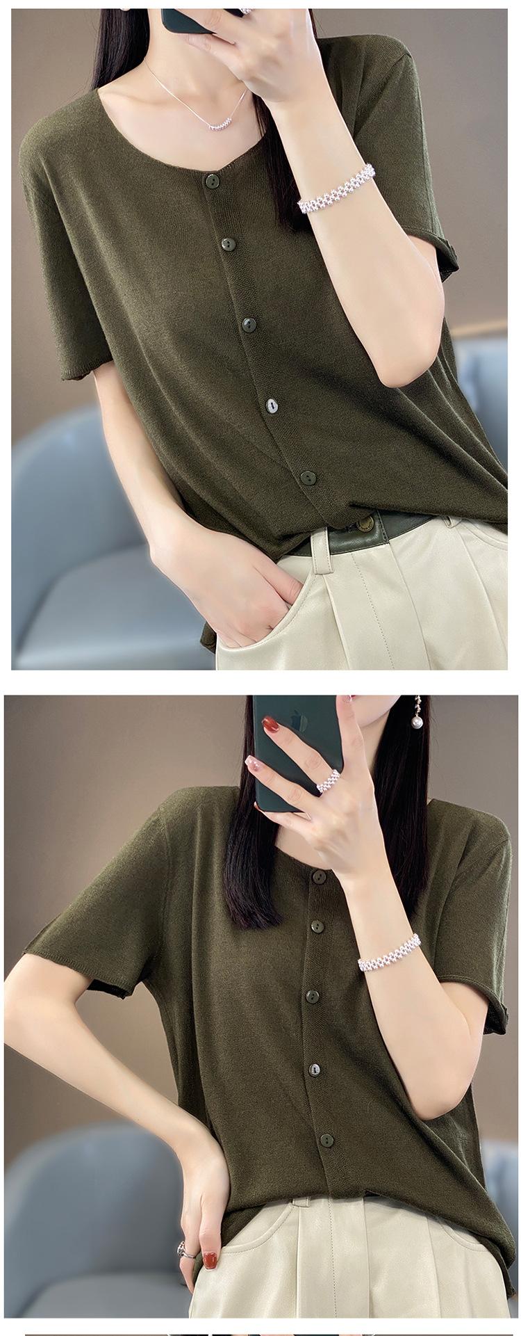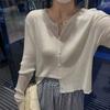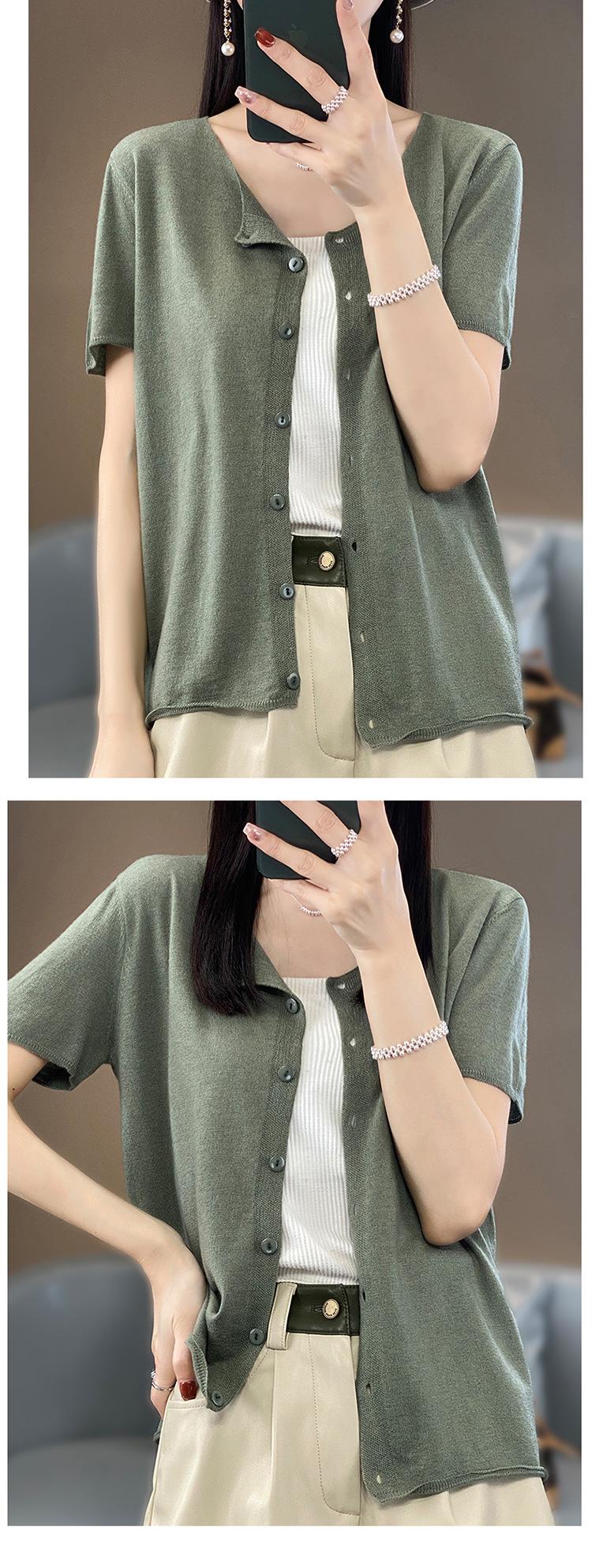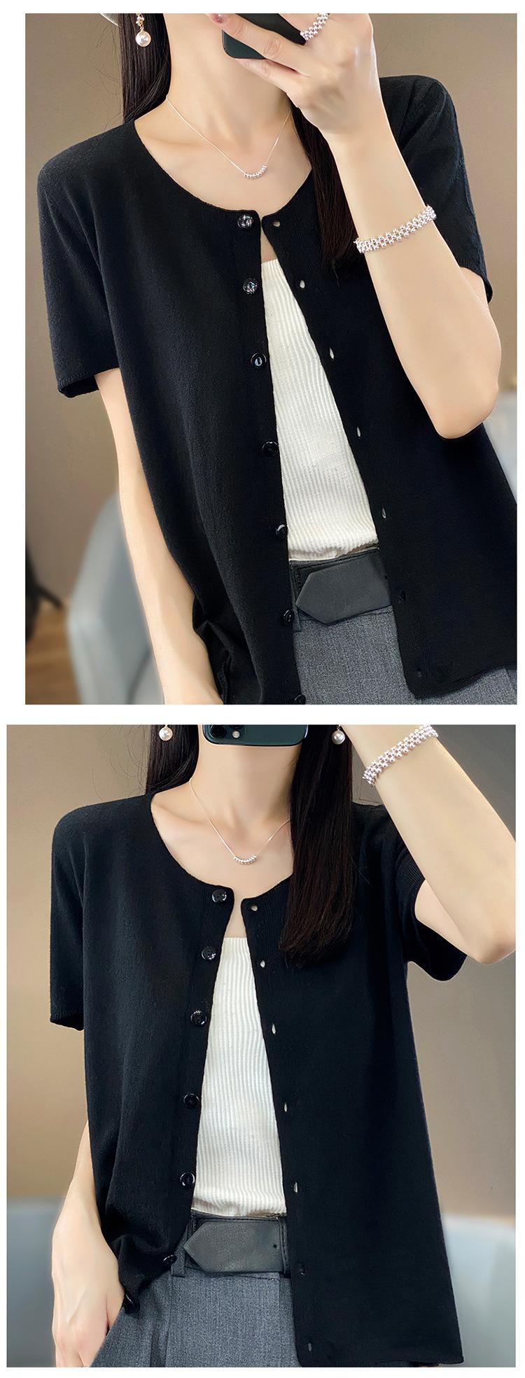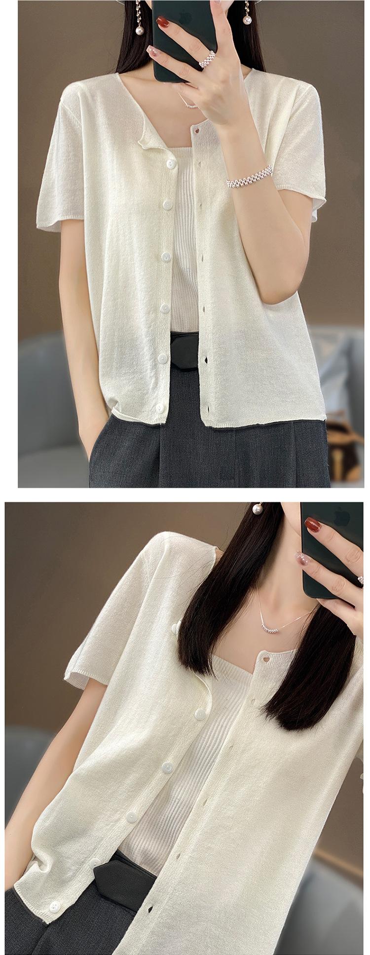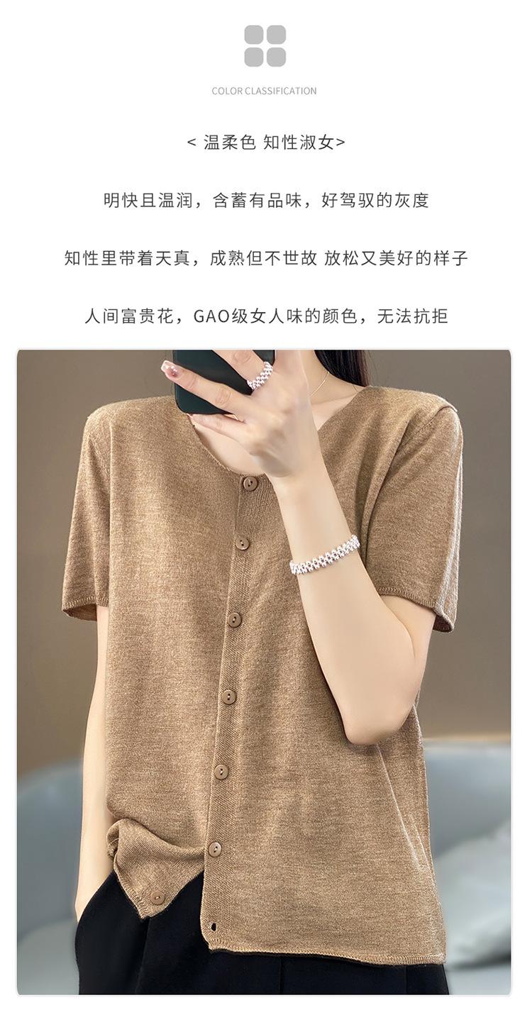 Verano Nuevo Cárdigan de Punto de Lana Fina de Manga Corta para Mujer Camisa Acondicionadora de Aire Top Suelto Chaqueta de Liocel