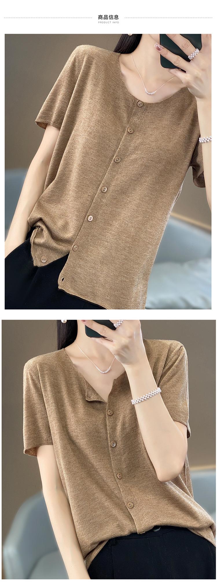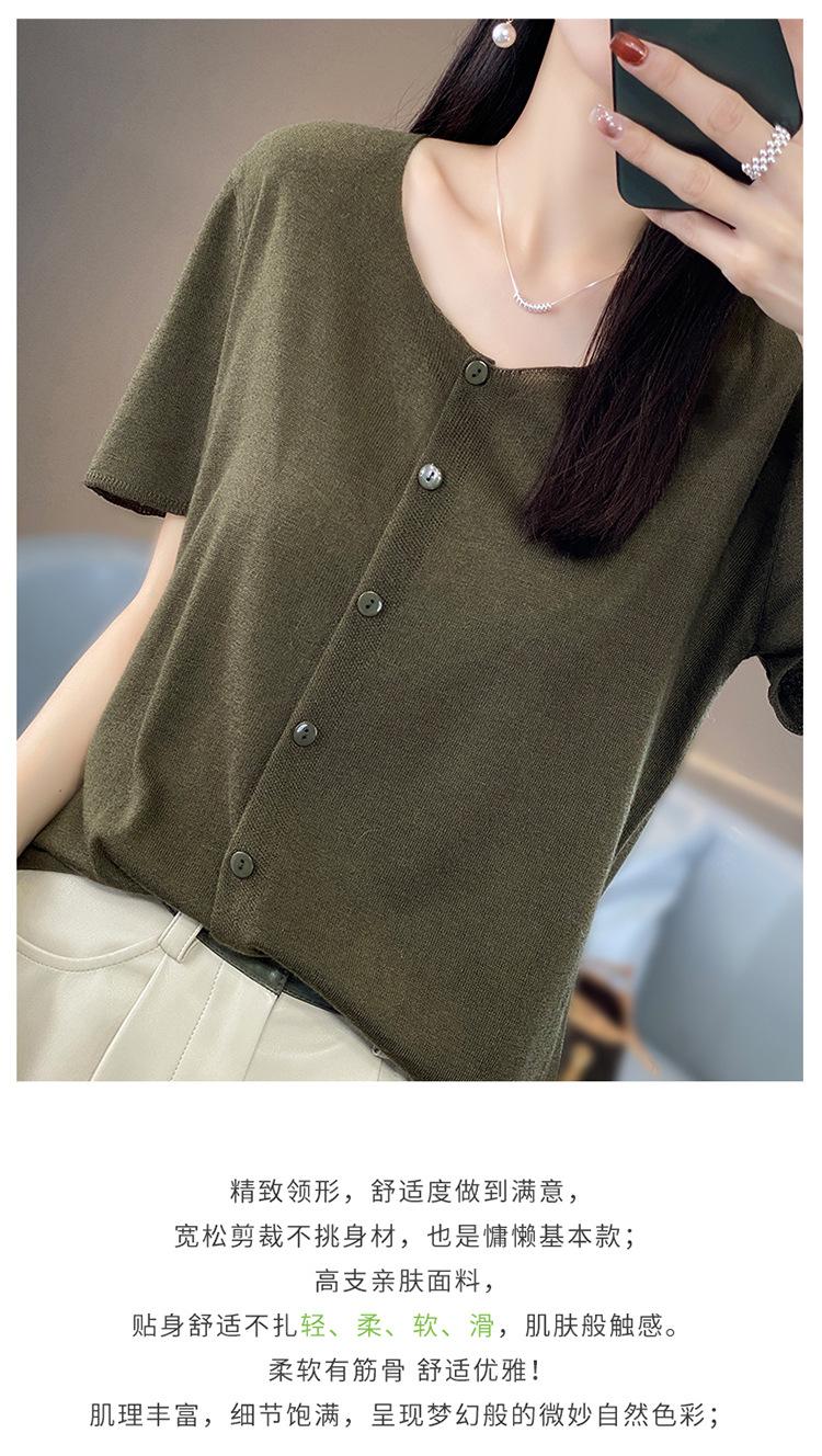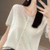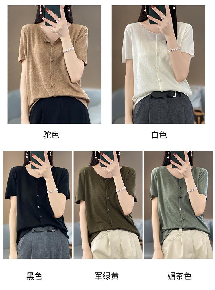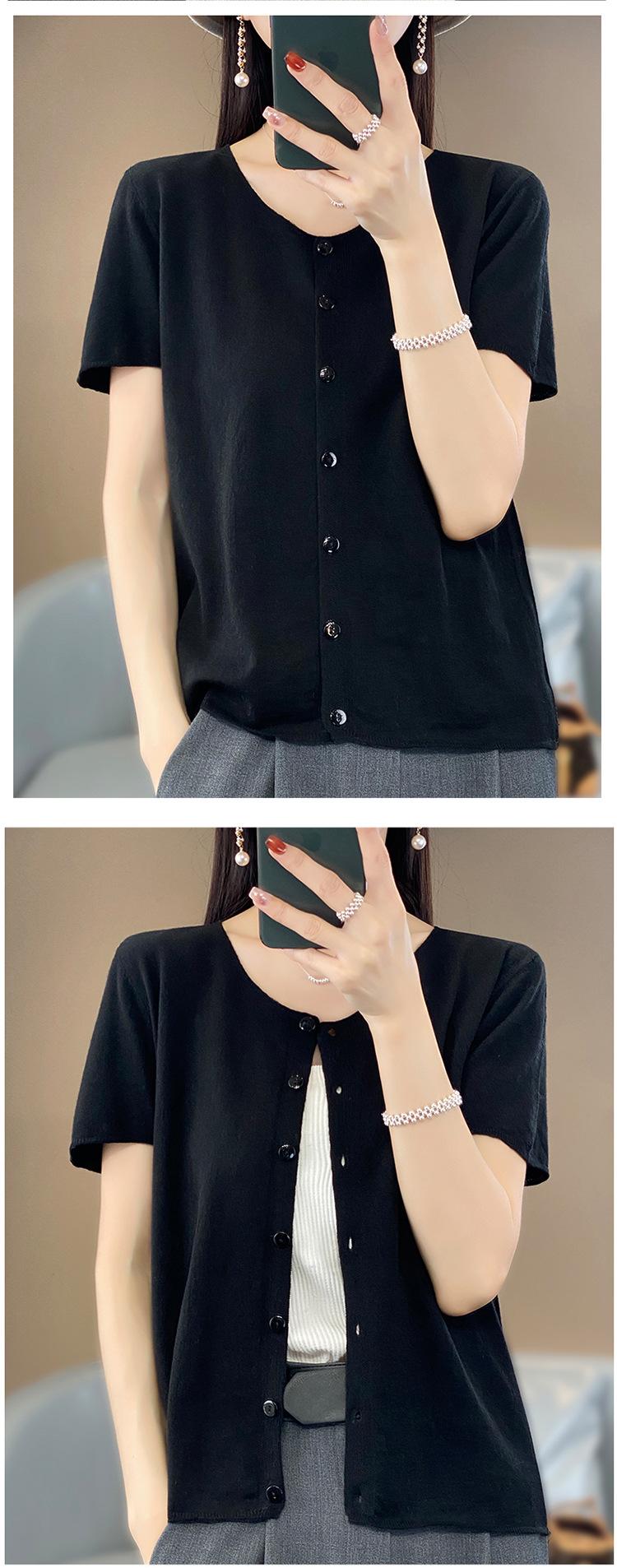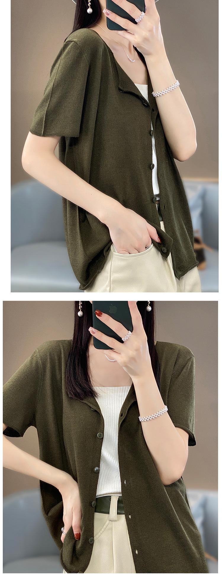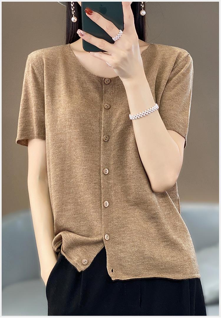Verano Nuevo Cárdigan de Punto de Lana Fina de Manga Corta para Mujer Camisa Acondicionadora de Aire Top Suelto Chaqueta de Liocel