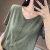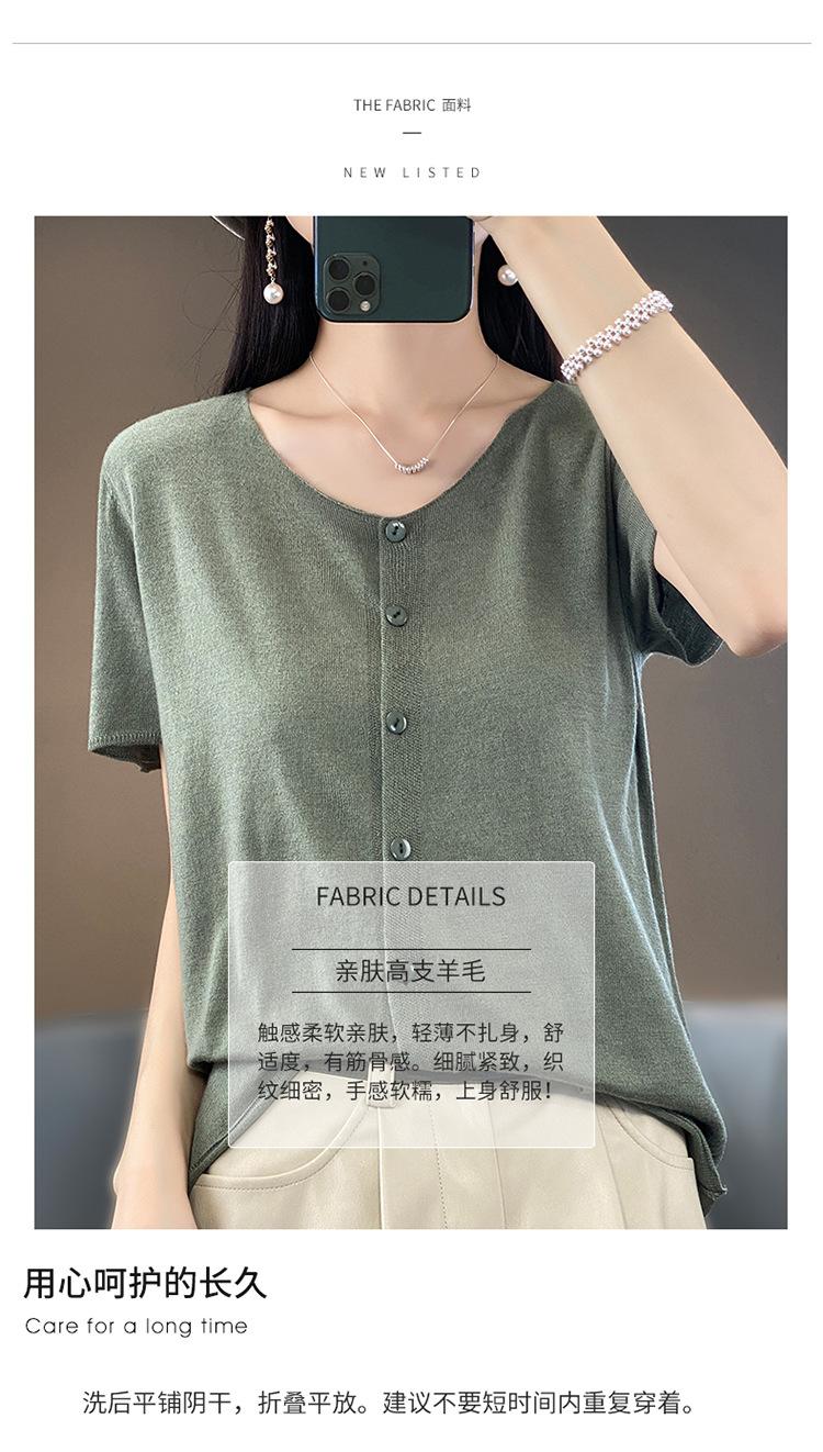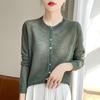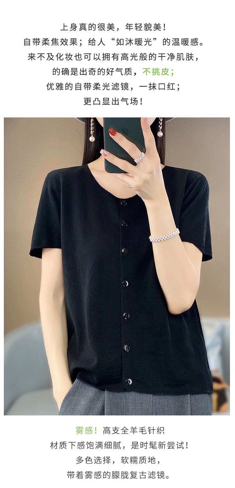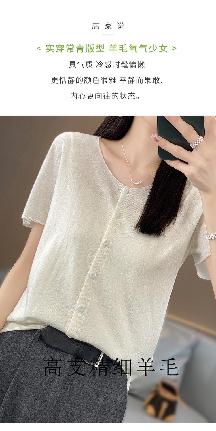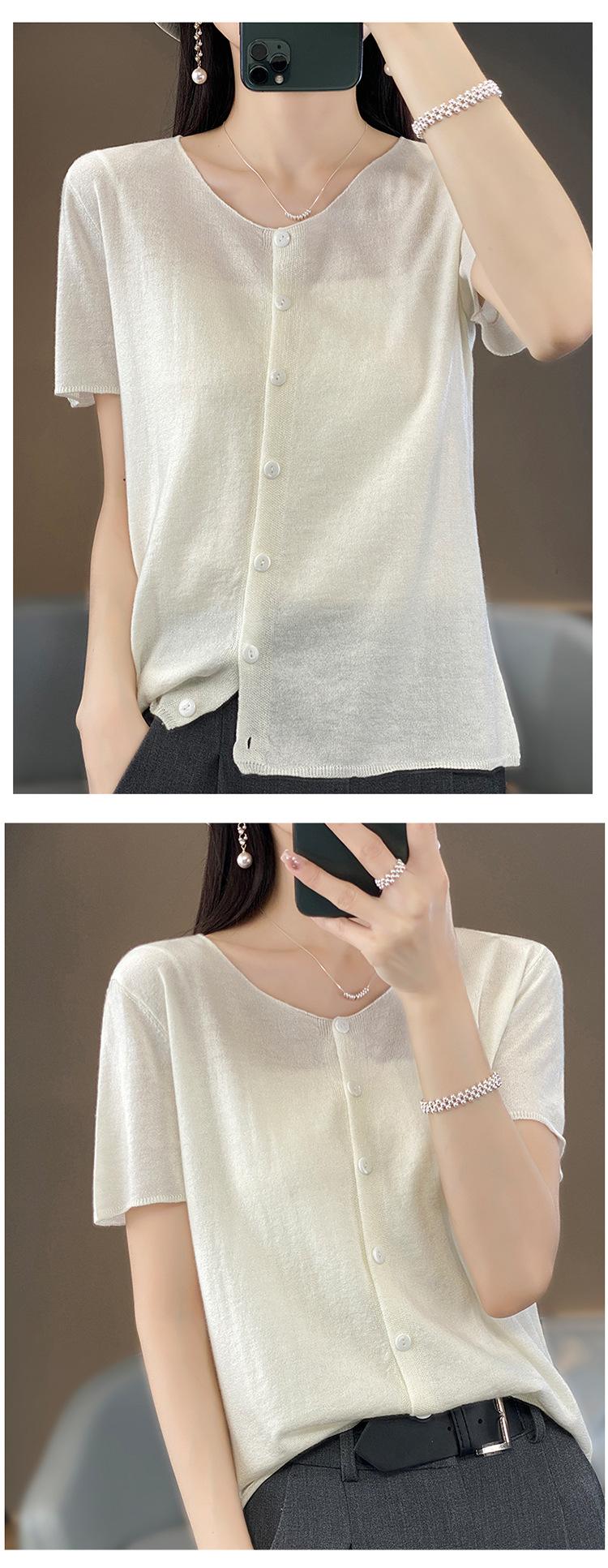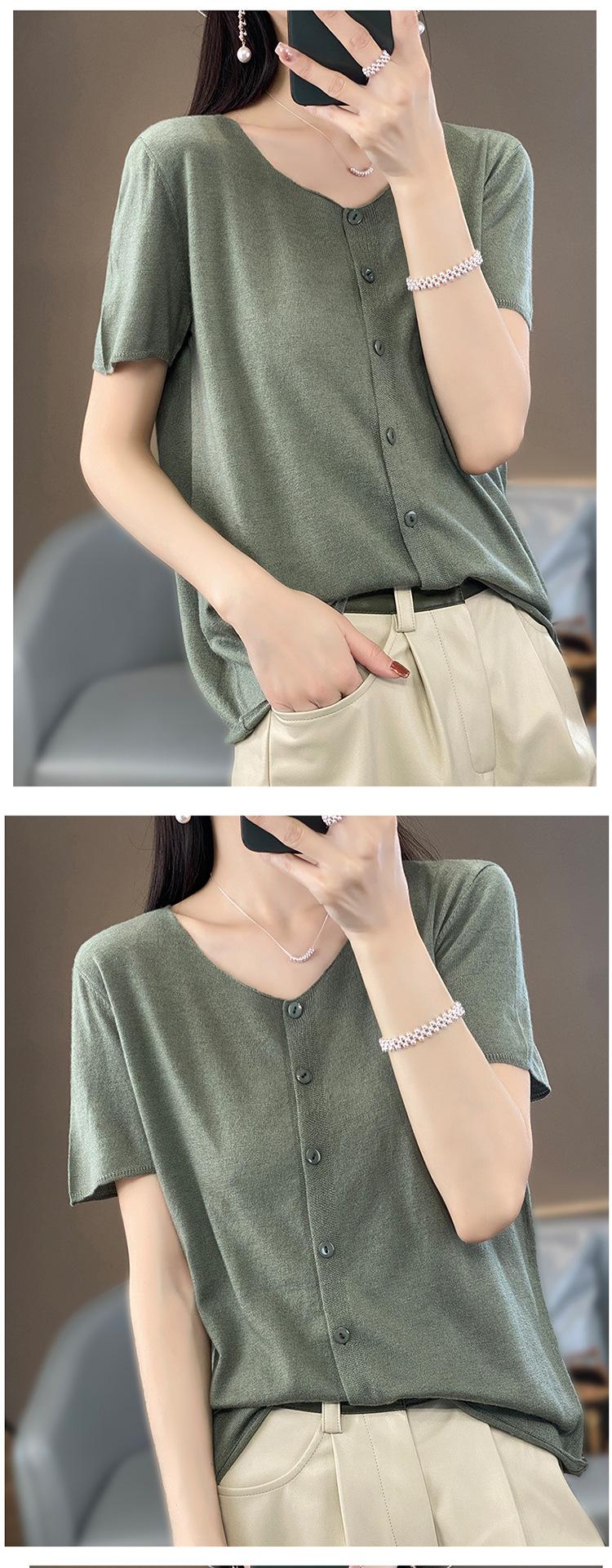 Verano Nuevo Cárdigan de Punto de Lana Fina de Manga Corta para Mujer Camisa Acondicionadora de Aire Top Suelto Chaqueta de Liocel