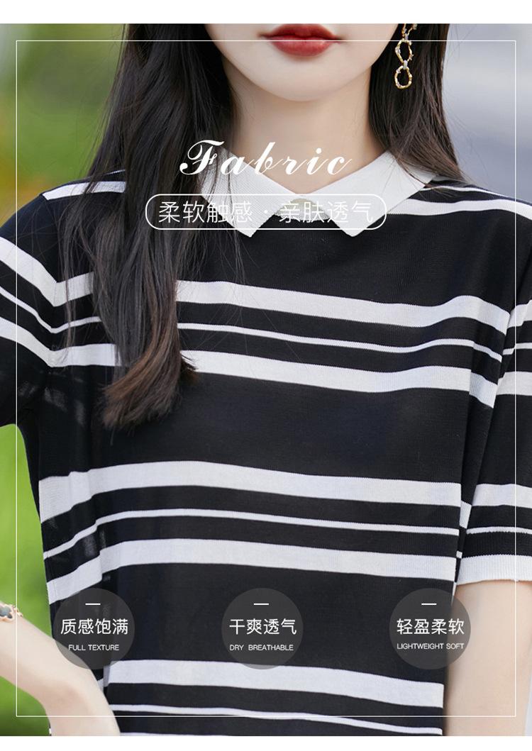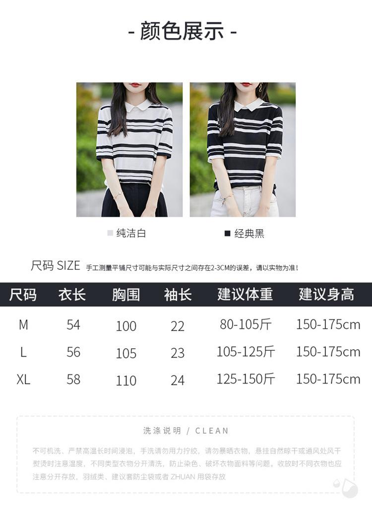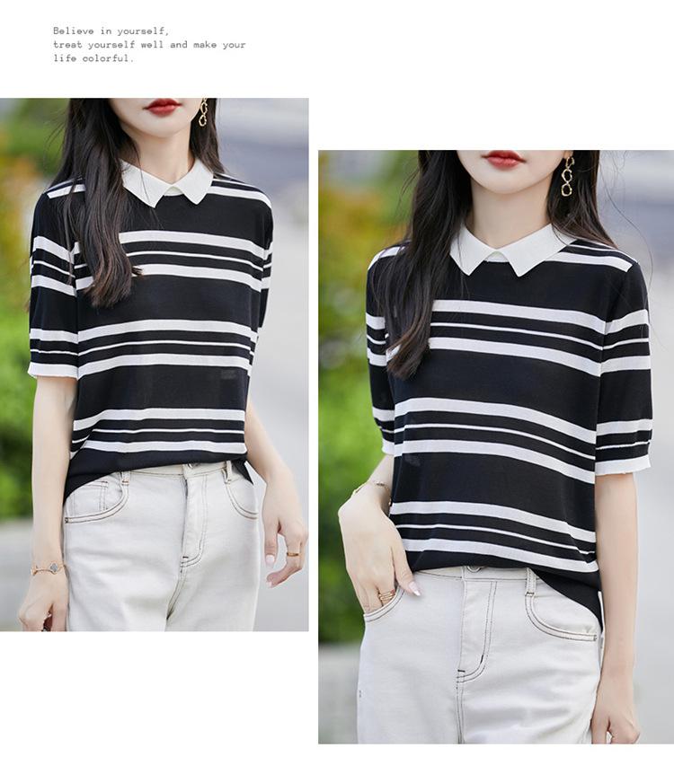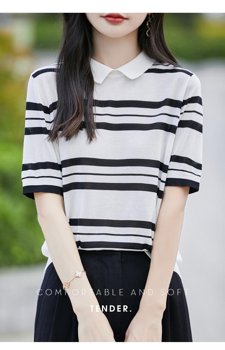 Playera de punto de manga corta para mujer 2024 verano nueva con solapa tipo polo a rayas Lyocell Tencel moda coreana
