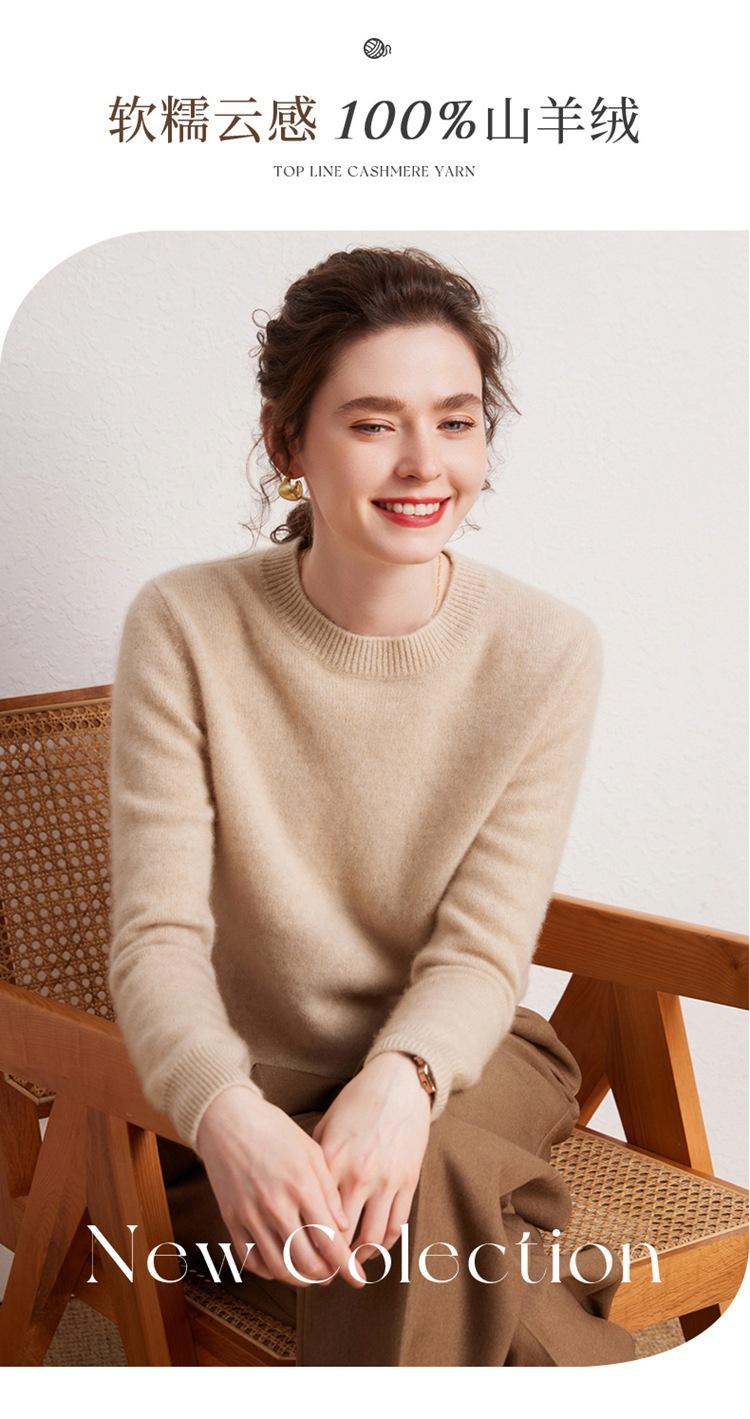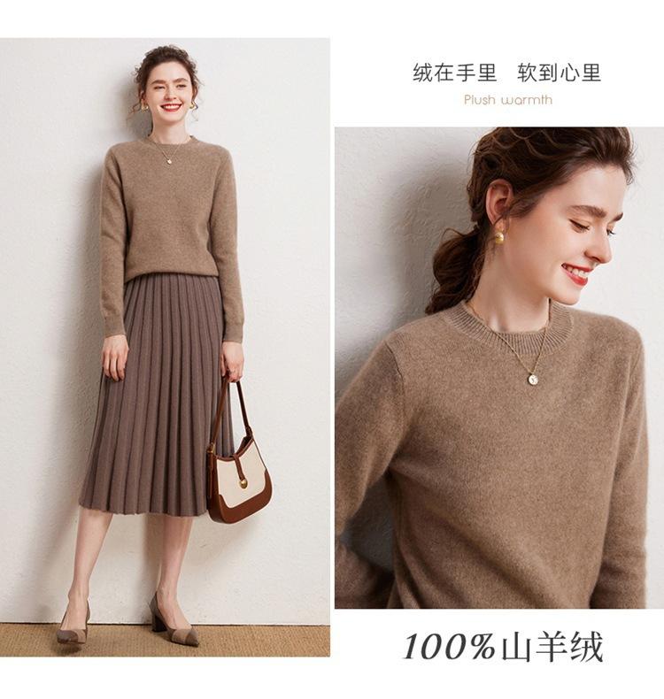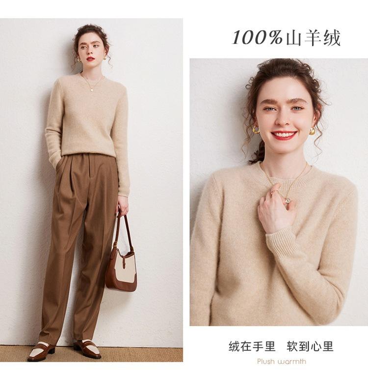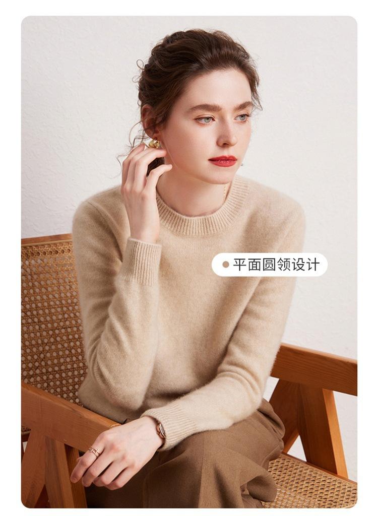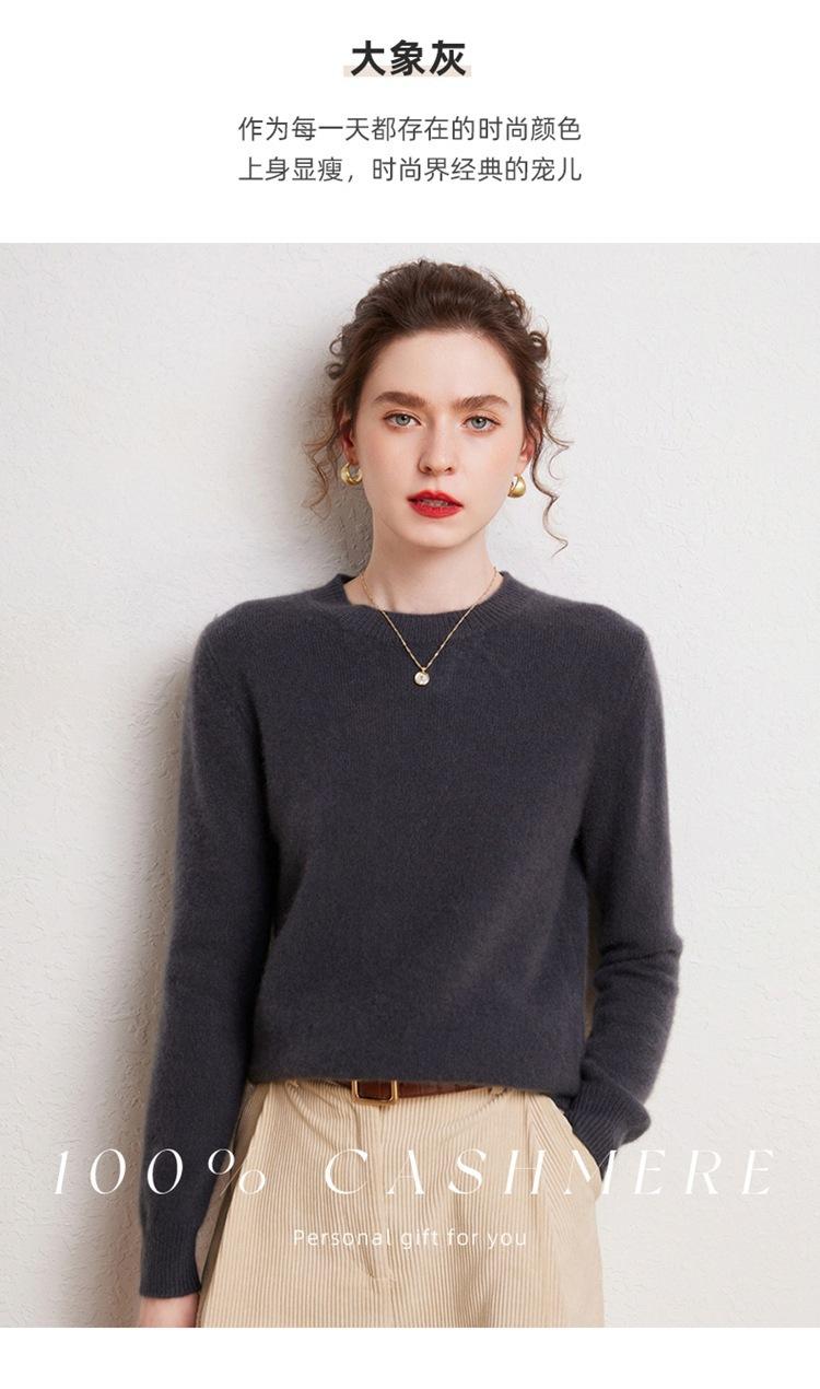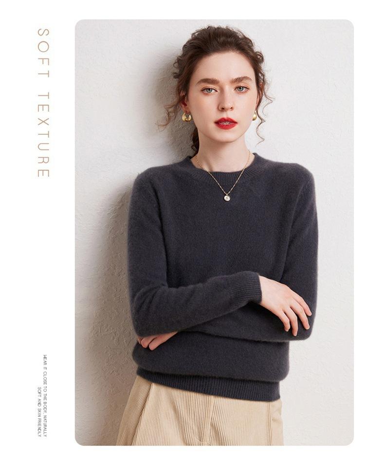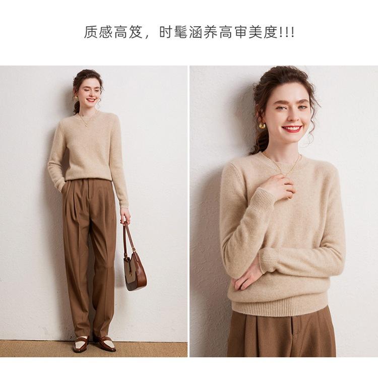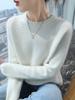 Suéter de Cachemira Pura para Mujer Simple de Color Puro Otoño e Invierno Grueso Cuello Redondo Jersey de Manga Larga Holgado Casual Versátil Tejido