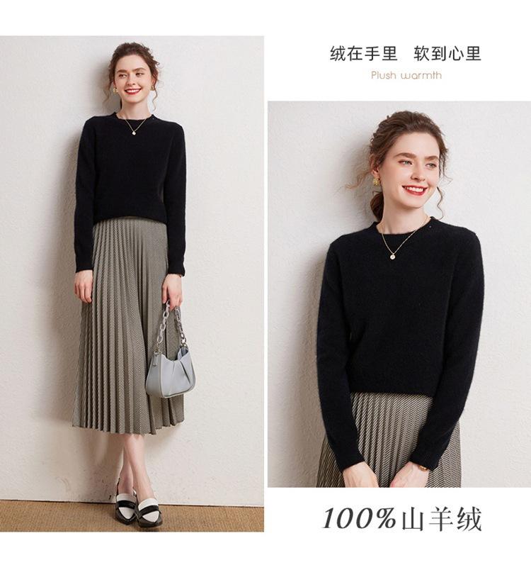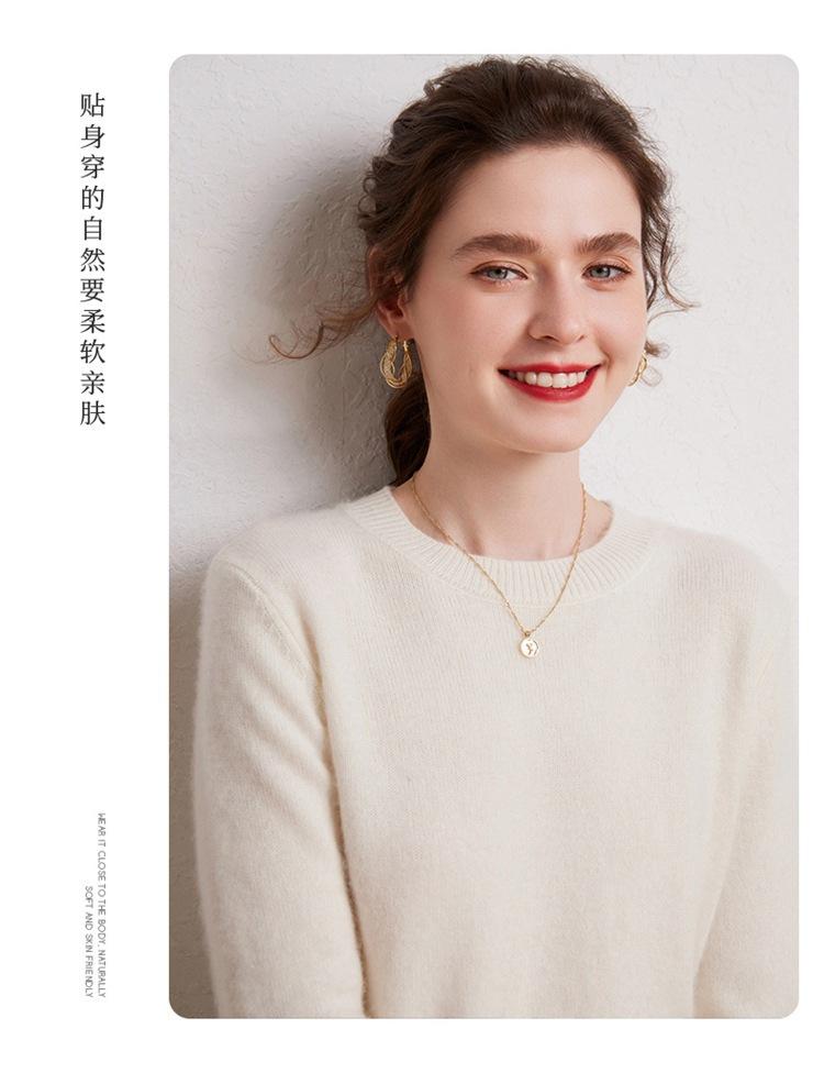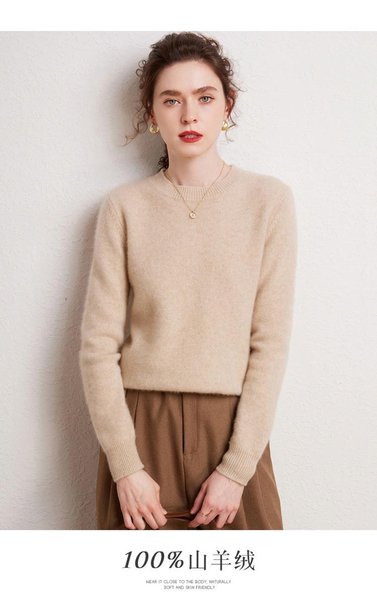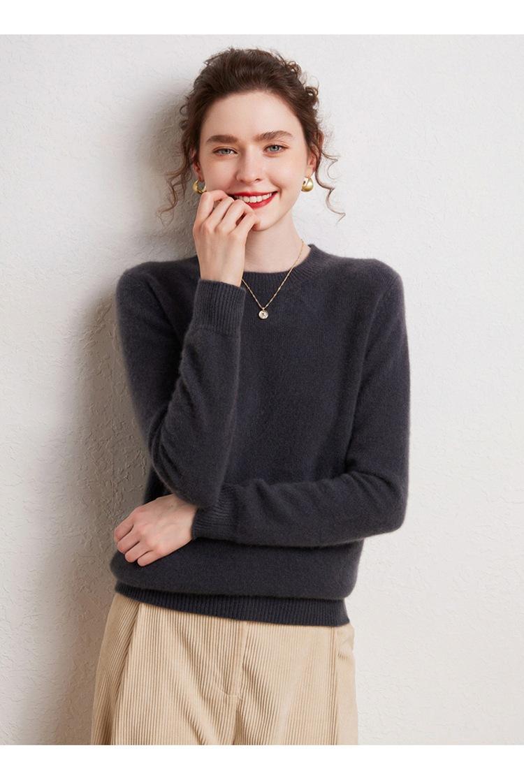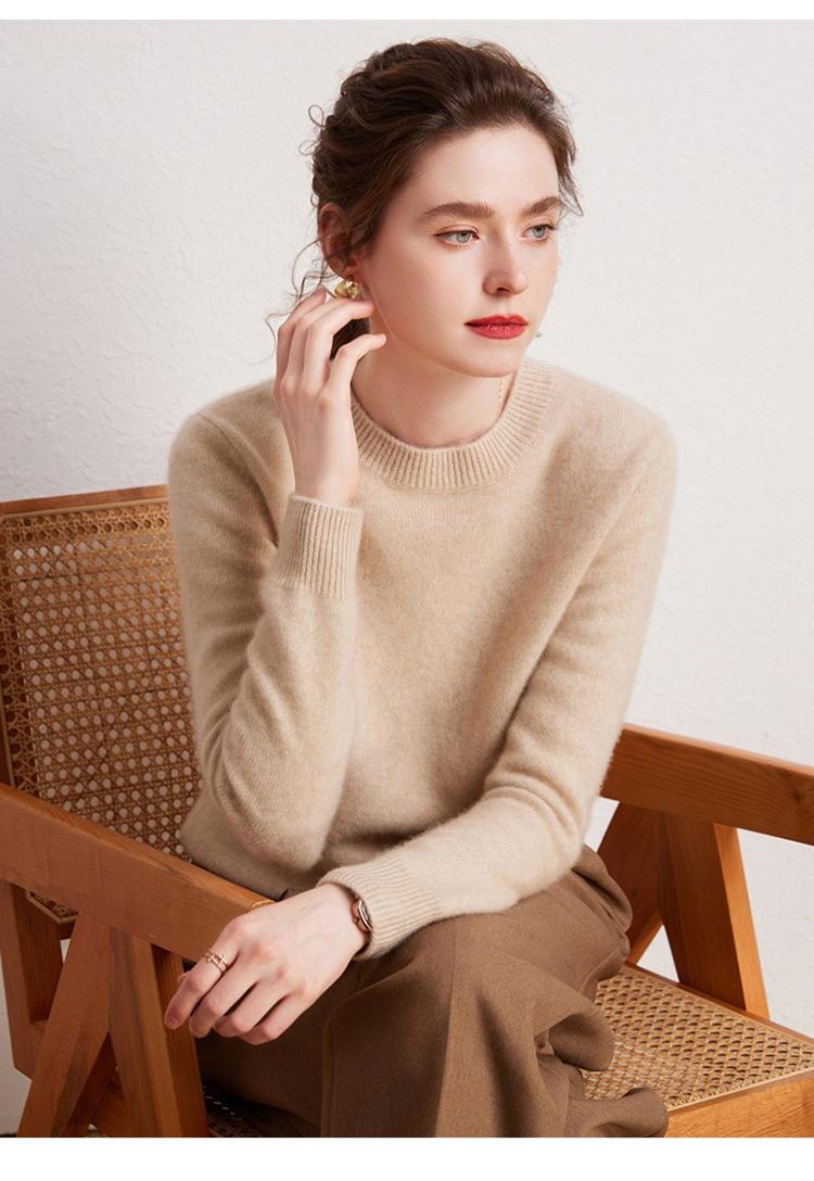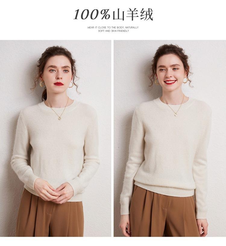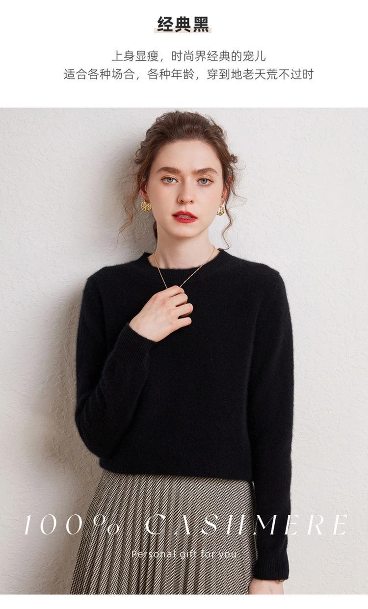 Suéter de Cachemira Pura para Mujer Simple de Color Puro Otoño e Invierno Grueso Cuello Redondo Jersey de Manga Larga Holgado Casual Versátil Tejido
