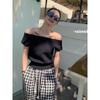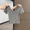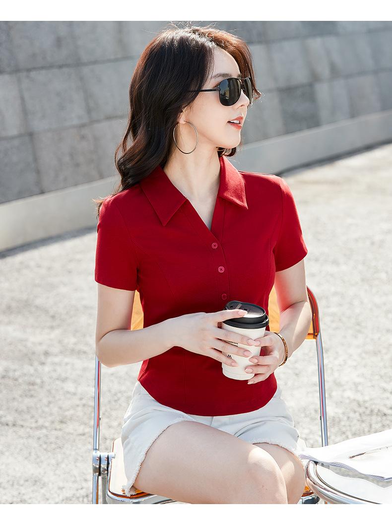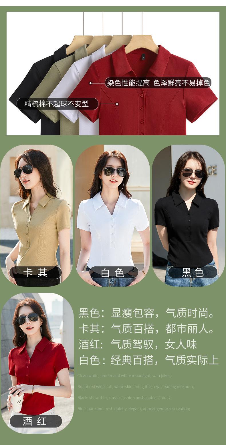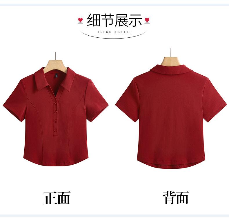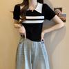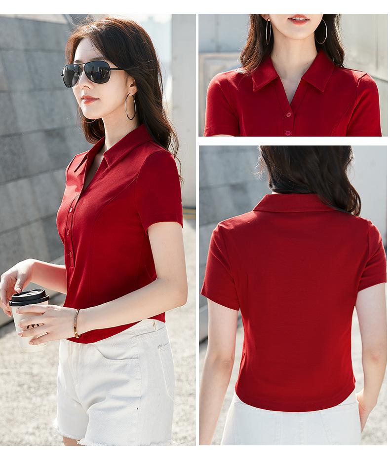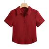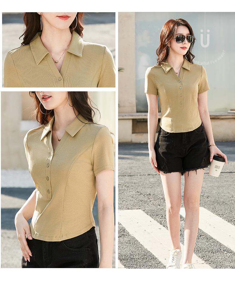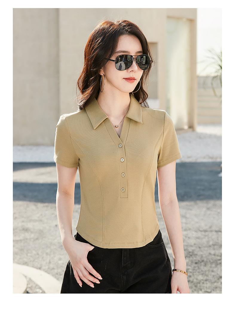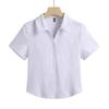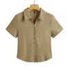 Camiseta de manga corta con solapa y botones, estilo coreano, elegante, sencilla, corta, de cintura alta y aspecto ajustado, para verano