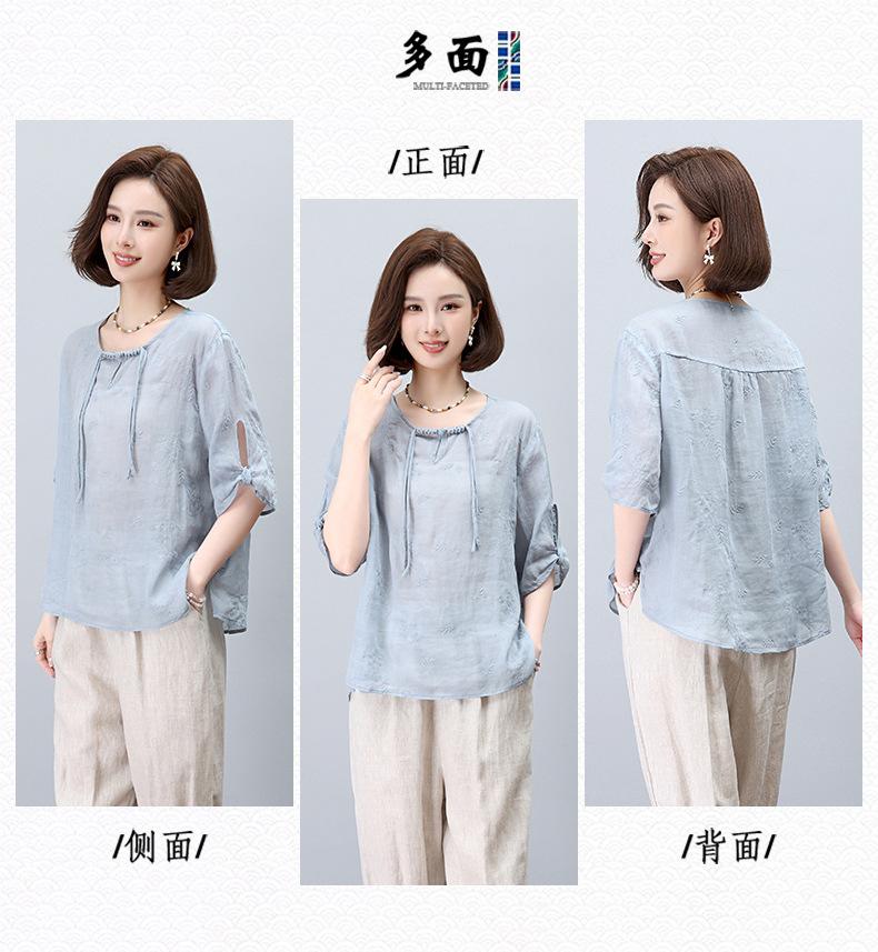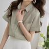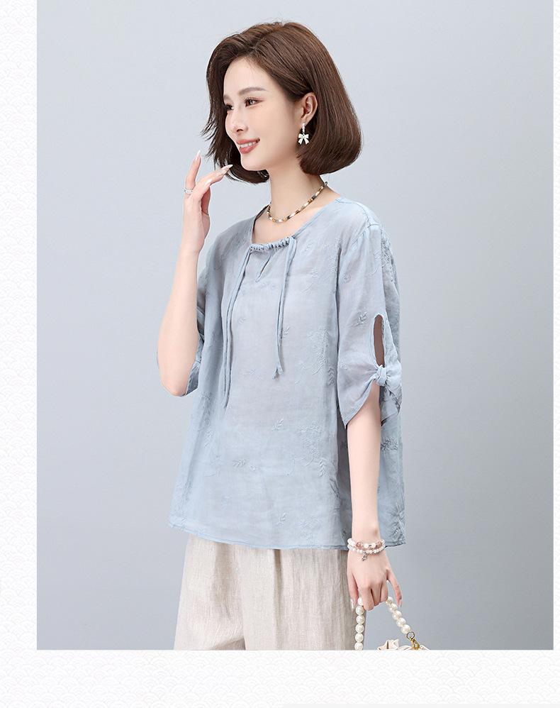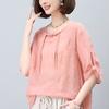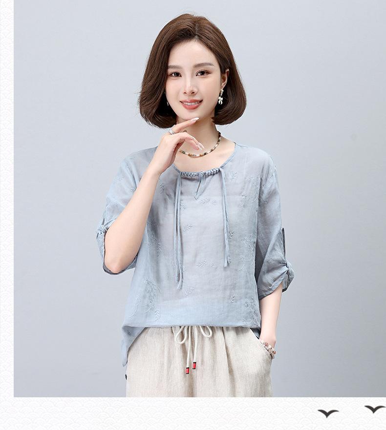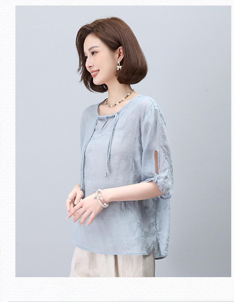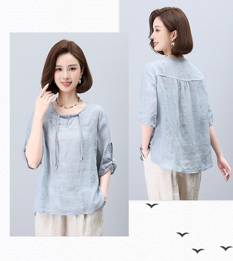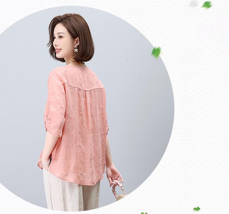 Camisa de Manga Corta para Mujer Verano 2024 Nueva Moda Elegante Adelgazante Pequeña Madre Casual Reductora de Edad Camisa de Ramio