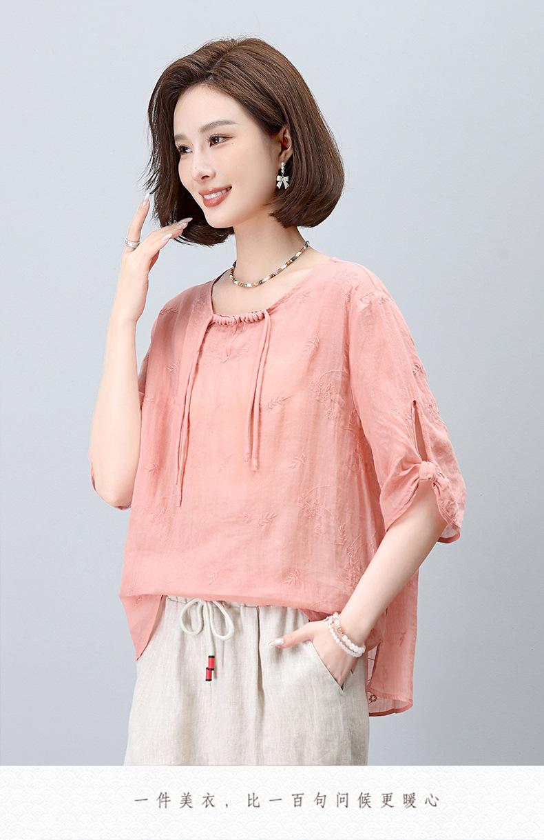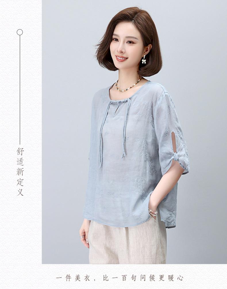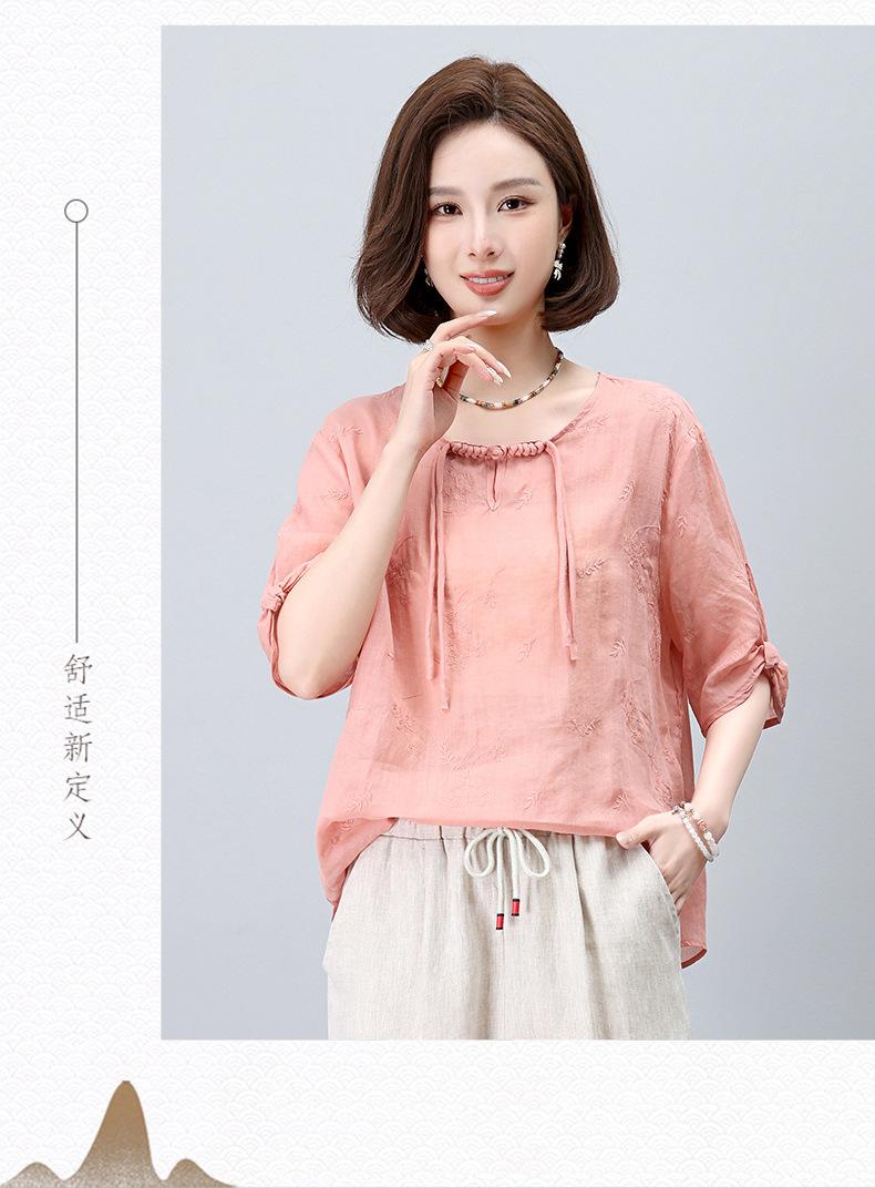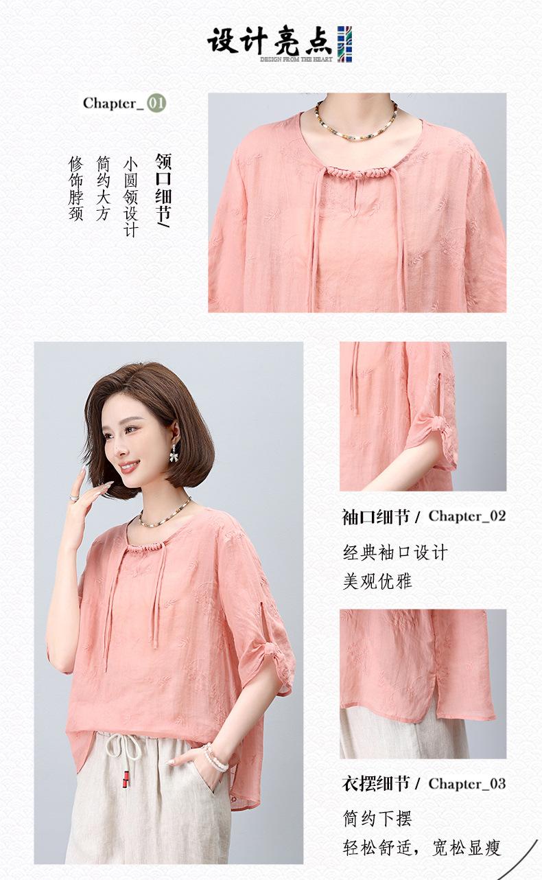Camisa de Manga Corta para Mujer Verano 2024 Nueva Moda Elegante Adelgazante Pequeña Madre Casual Reductora de Edad Camisa de Ramio