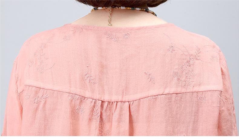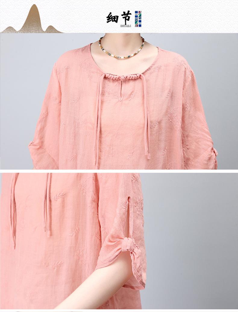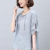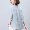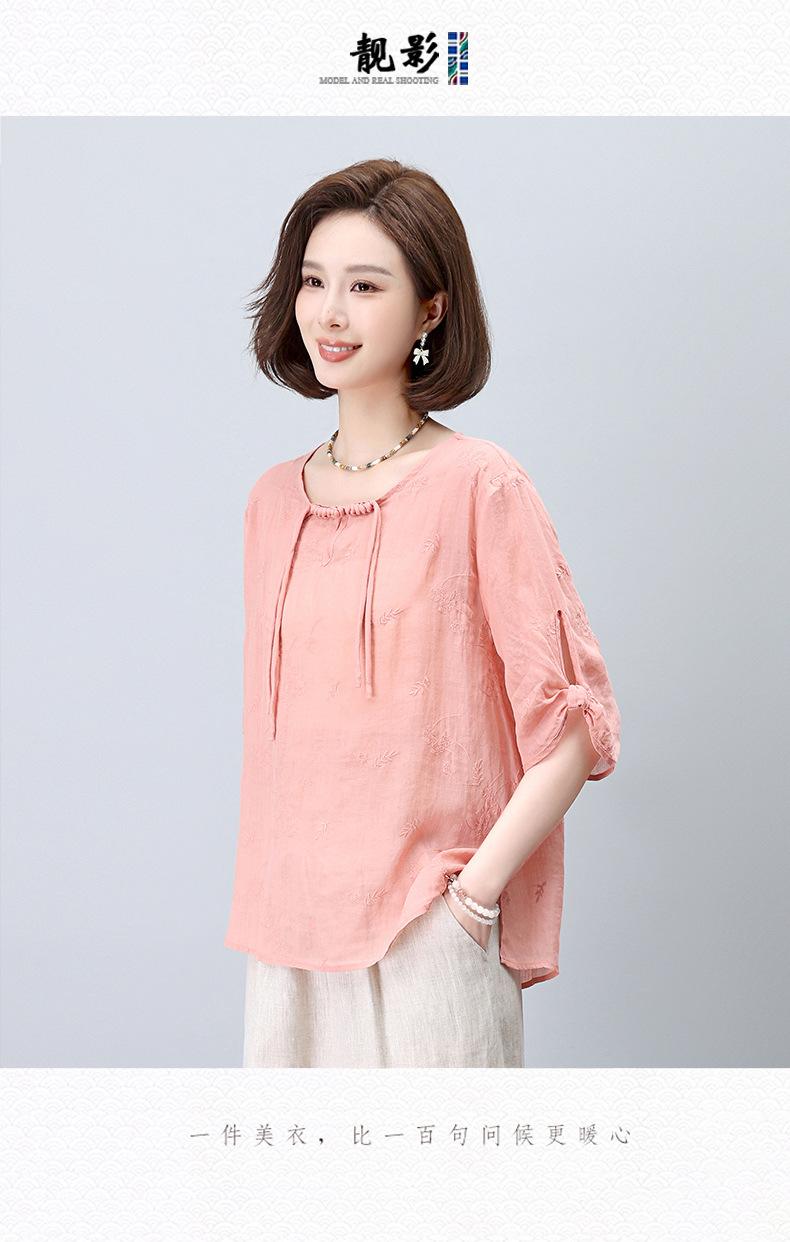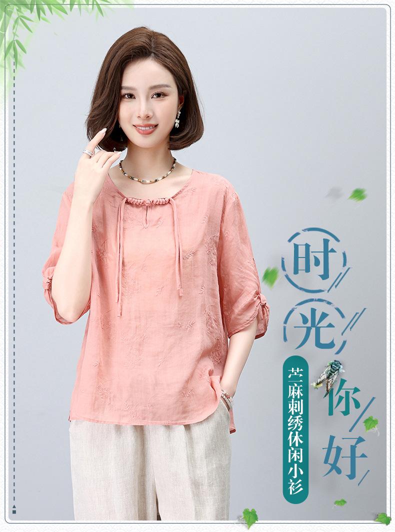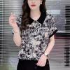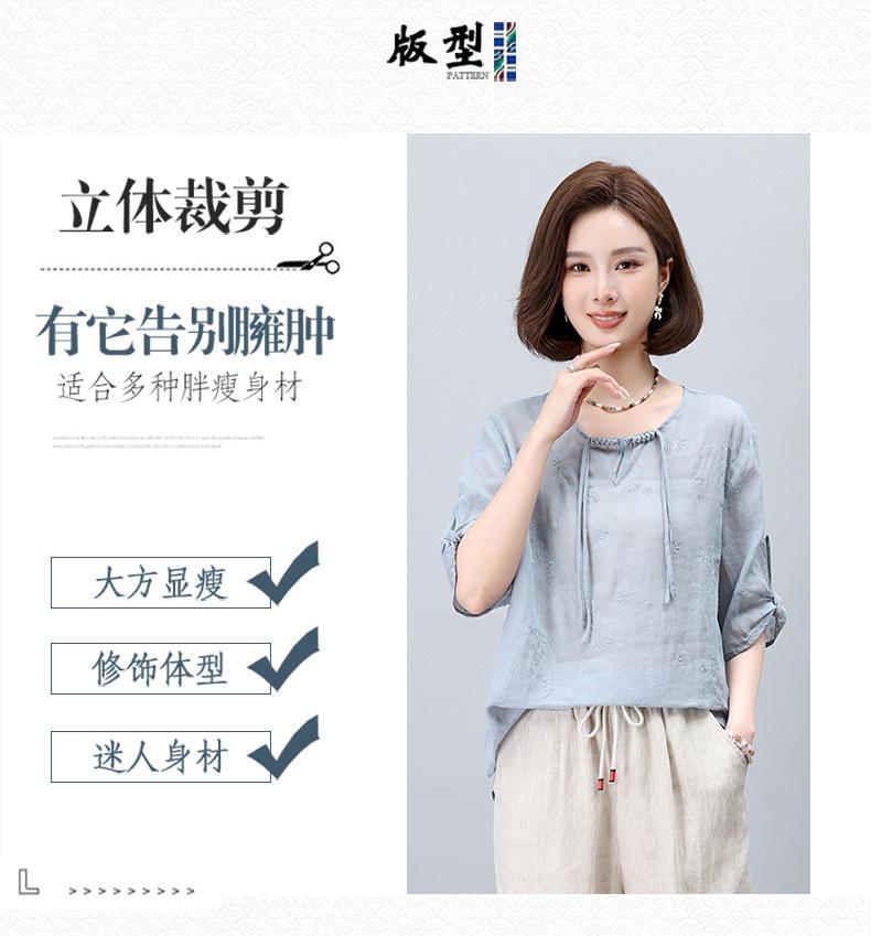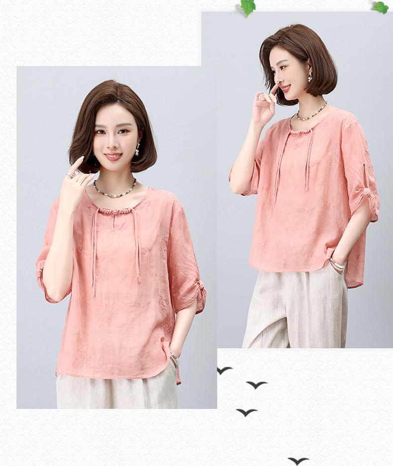 Camisa de Manga Corta para Mujer Verano 2024 Nueva Moda Elegante Adelgazante Pequeña Madre Casual Reductora de Edad Camisa de Ramio