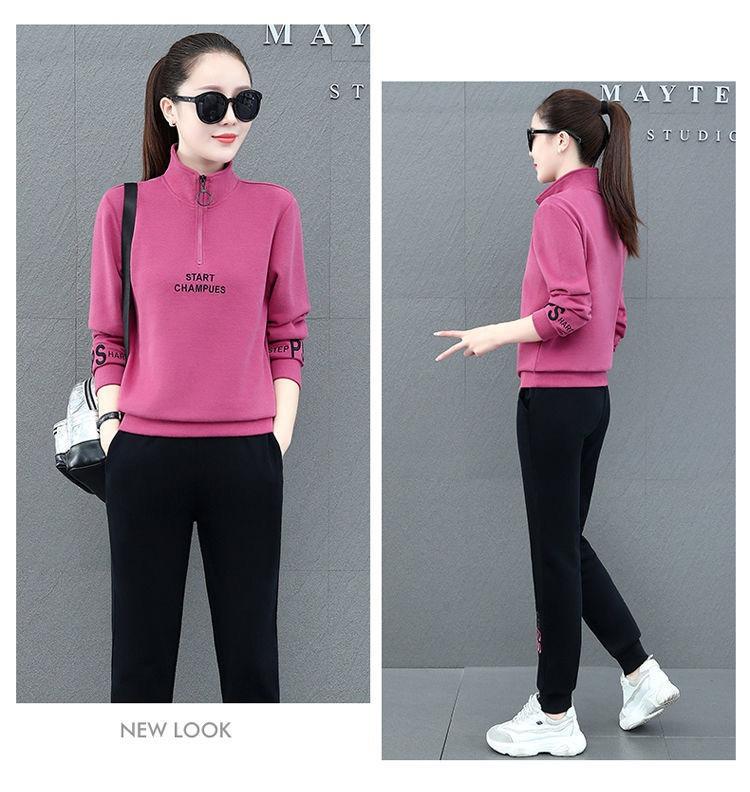 Traje deportivo de ocio para mujer, primavera y otoño 2022, nueva moda, suéter de cuello holgado de dos piezas, traje informal
