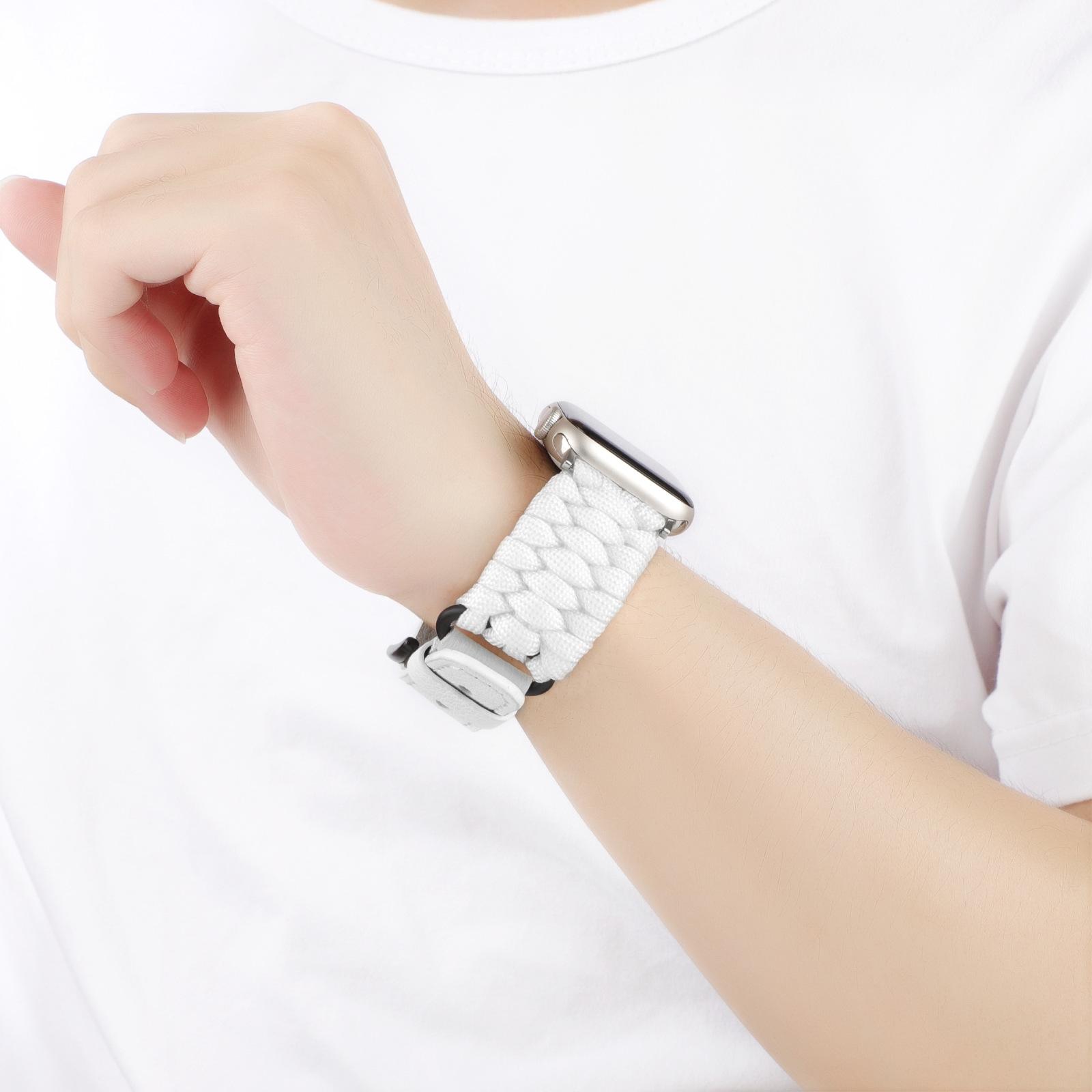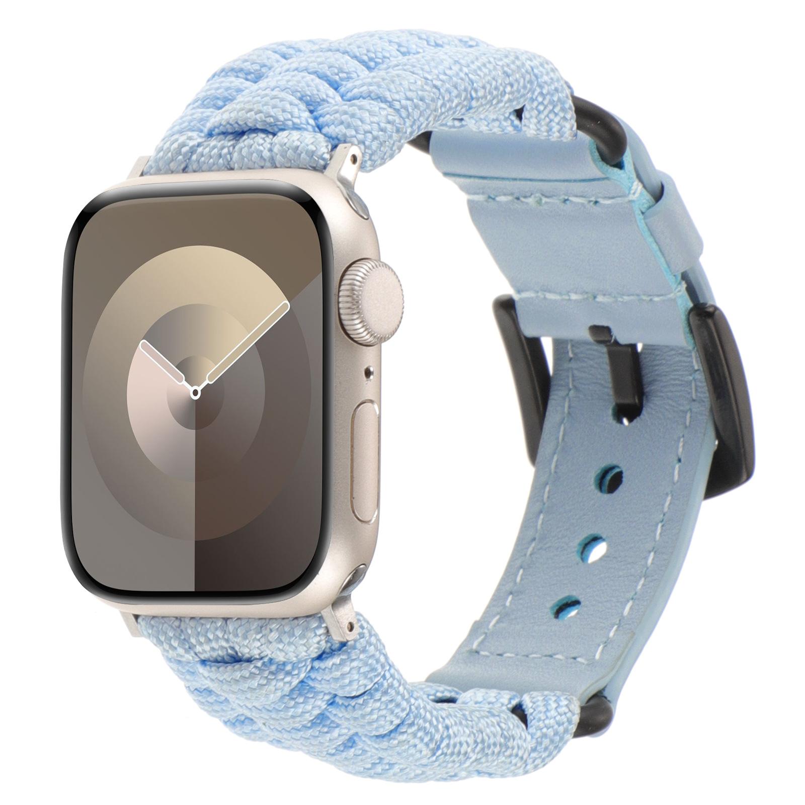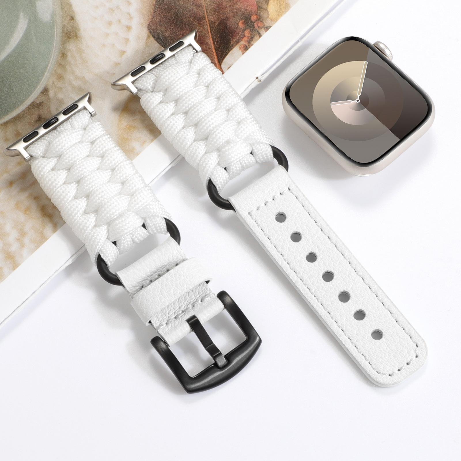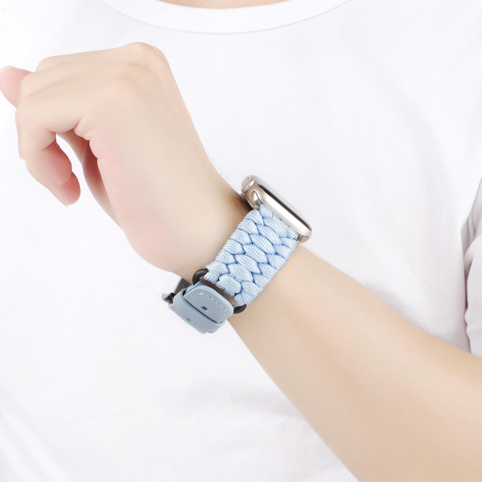 Adecuado para correa de Apple Watch Iwatch9-1, correa de cuero con cuerda de paraguas lisa, correa tejida de nailon iwatch8