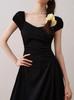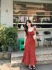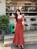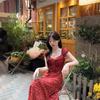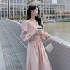 Real Shot 2024 Verano Nuevo Estilo Francés Elegante Estilo Puro Dulce y Picante Manga Floral Falda Vestido de Cintura Alta Falda Larga