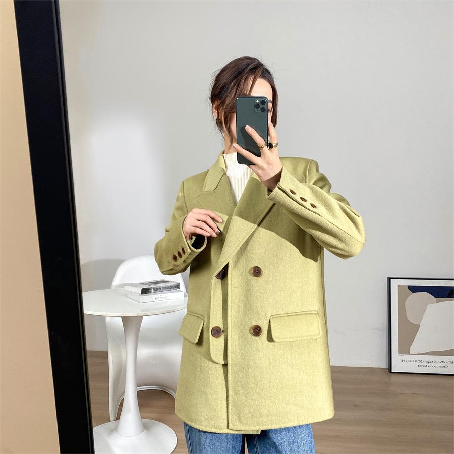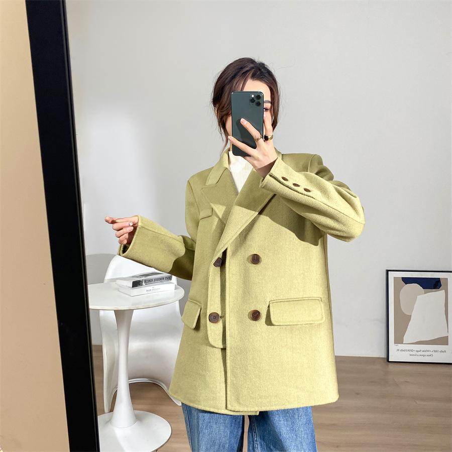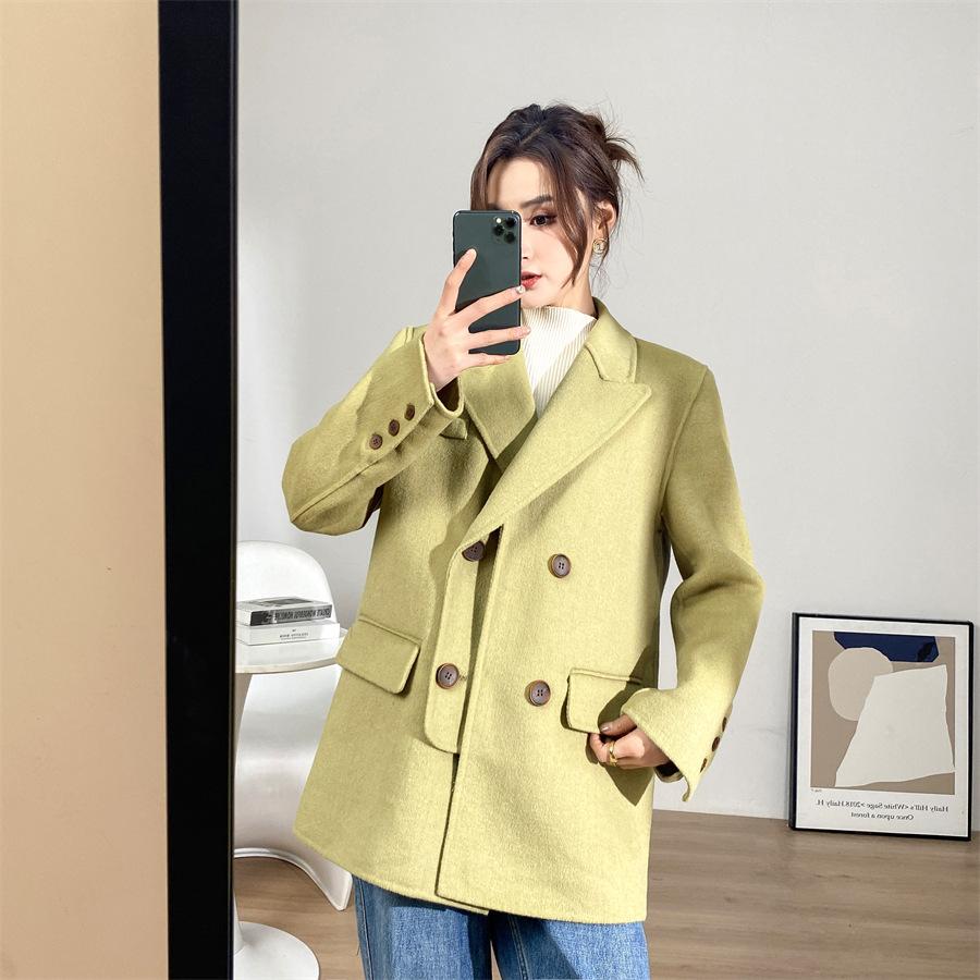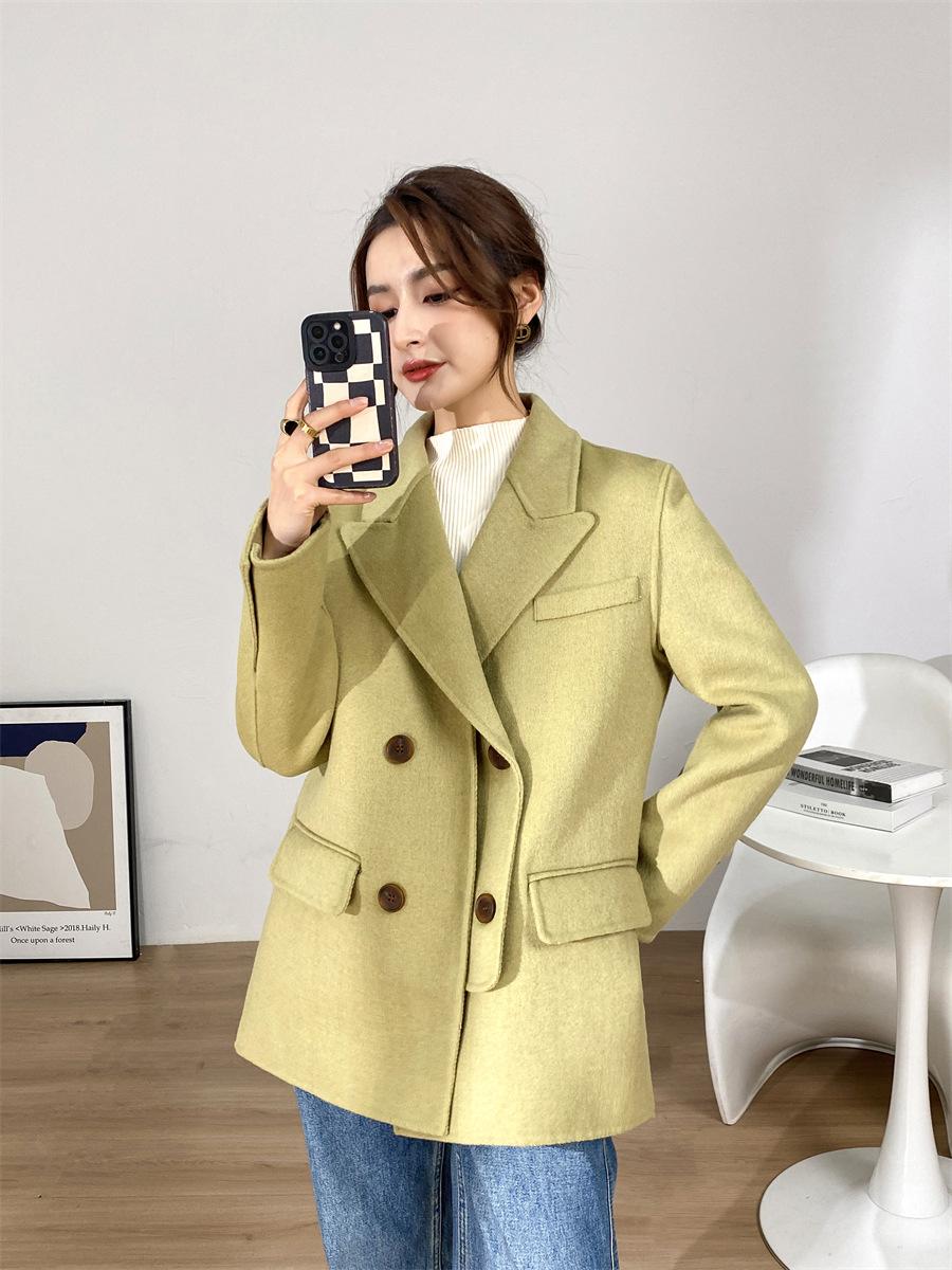 Abrigo de cachemira de doble cara para mujer, estilo traje de otoño e invierno, abrigo de diseño 100% lana, abrigo de lana de doble cara para mujer