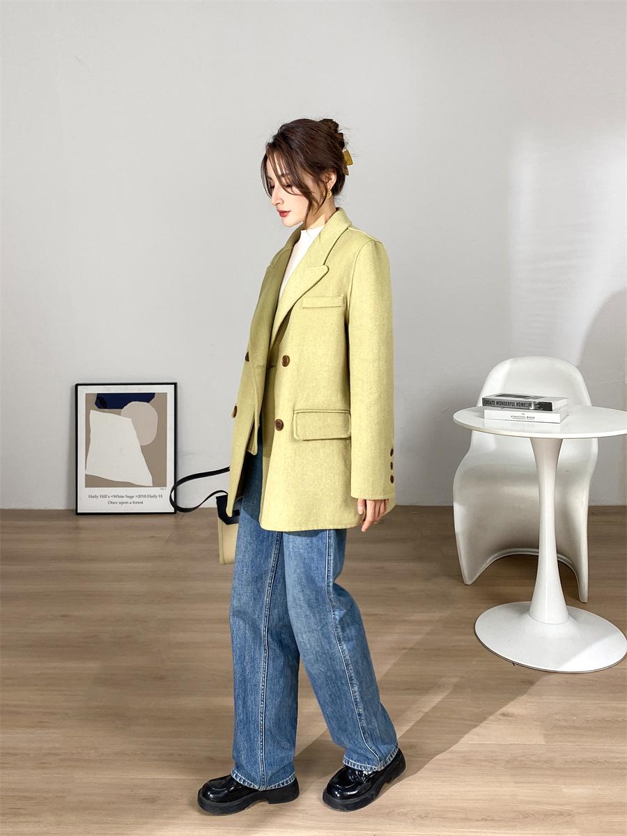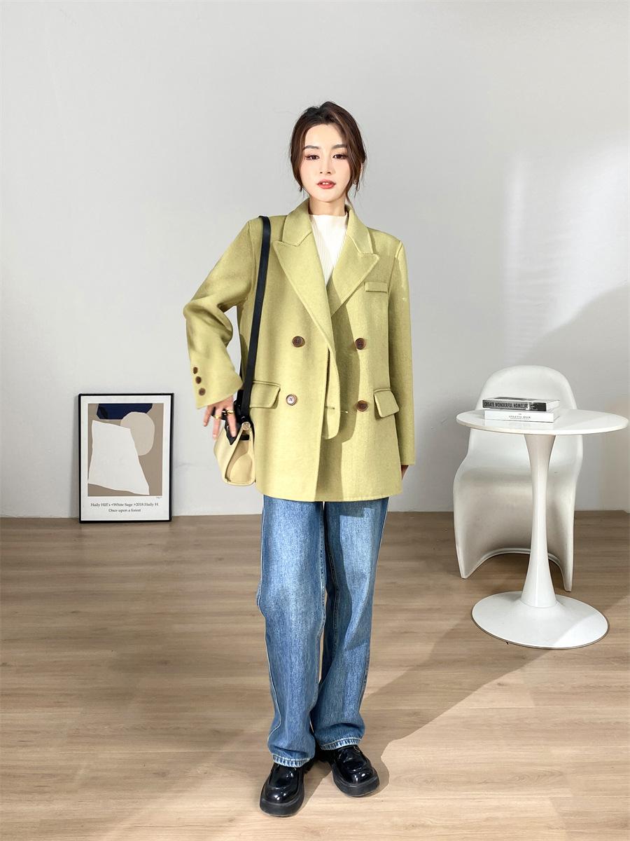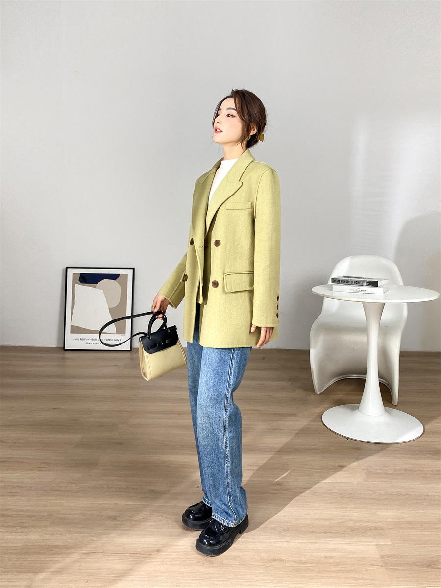 Abrigo de cachemira de doble cara para mujer, estilo traje de otoño e invierno, abrigo de diseño 100% lana, abrigo de lana de doble cara para mujer