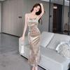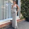 Nuevo vestido elegante de primavera de estilo europeo y americano sin tirantes, de color liso, largo, ajustado, sin espalda, para mujer.