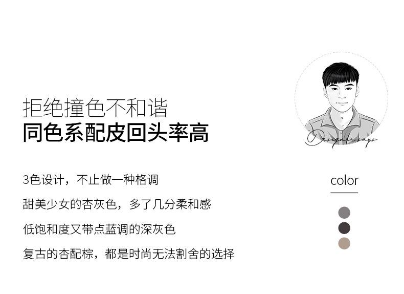Black, Dark gray, Apricot Gray, Apricot with Brown, Dark green